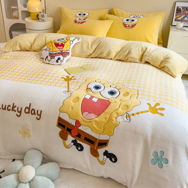 • 스폰지밥 네모바지-패치 자수 [정품 IP 인증, 더 부드럽고 따뜻한 양면 헤비웨이트]