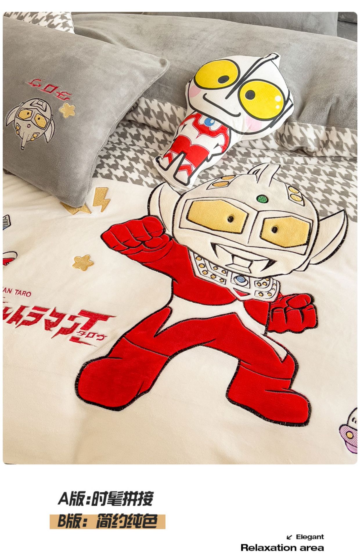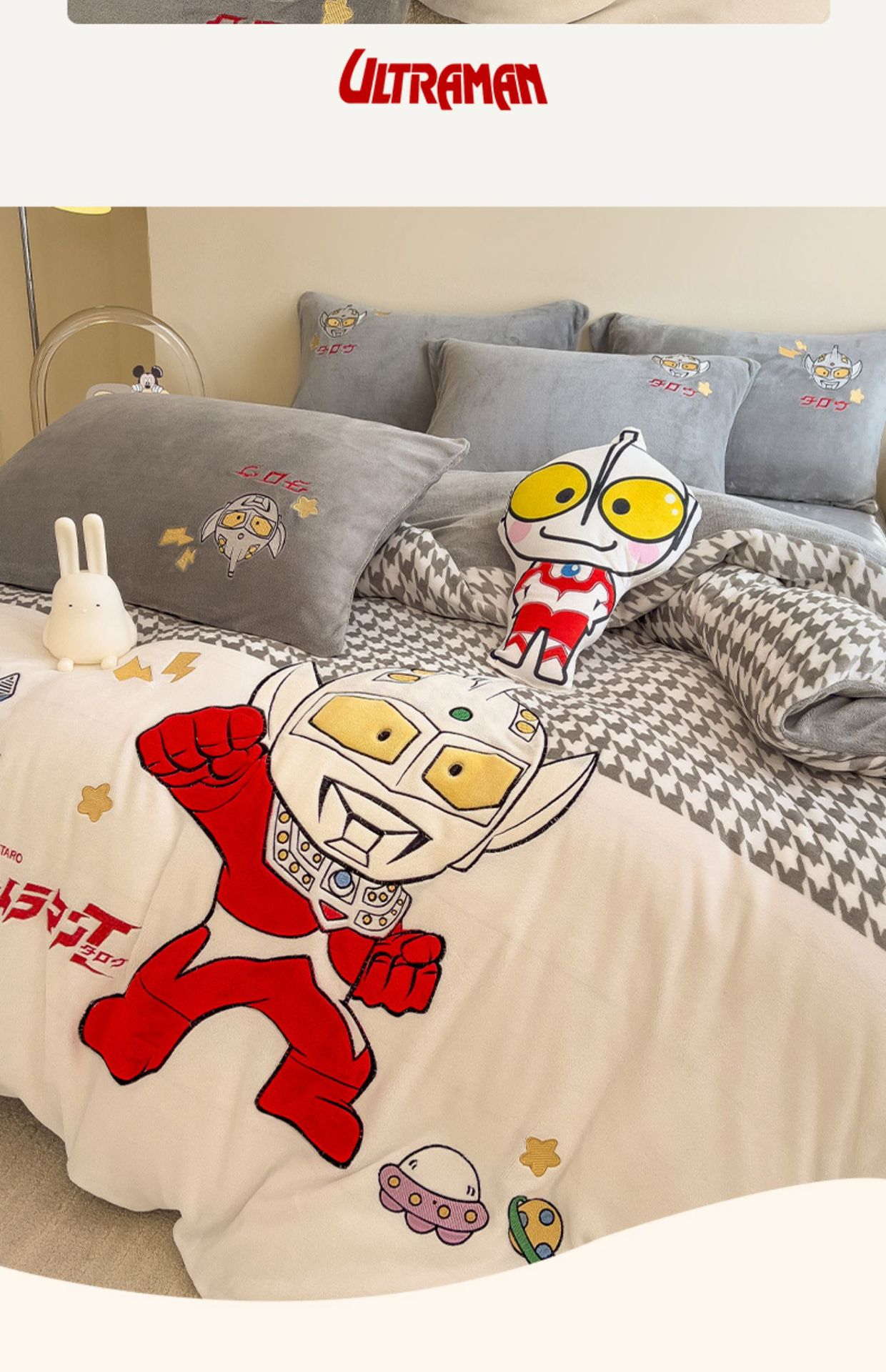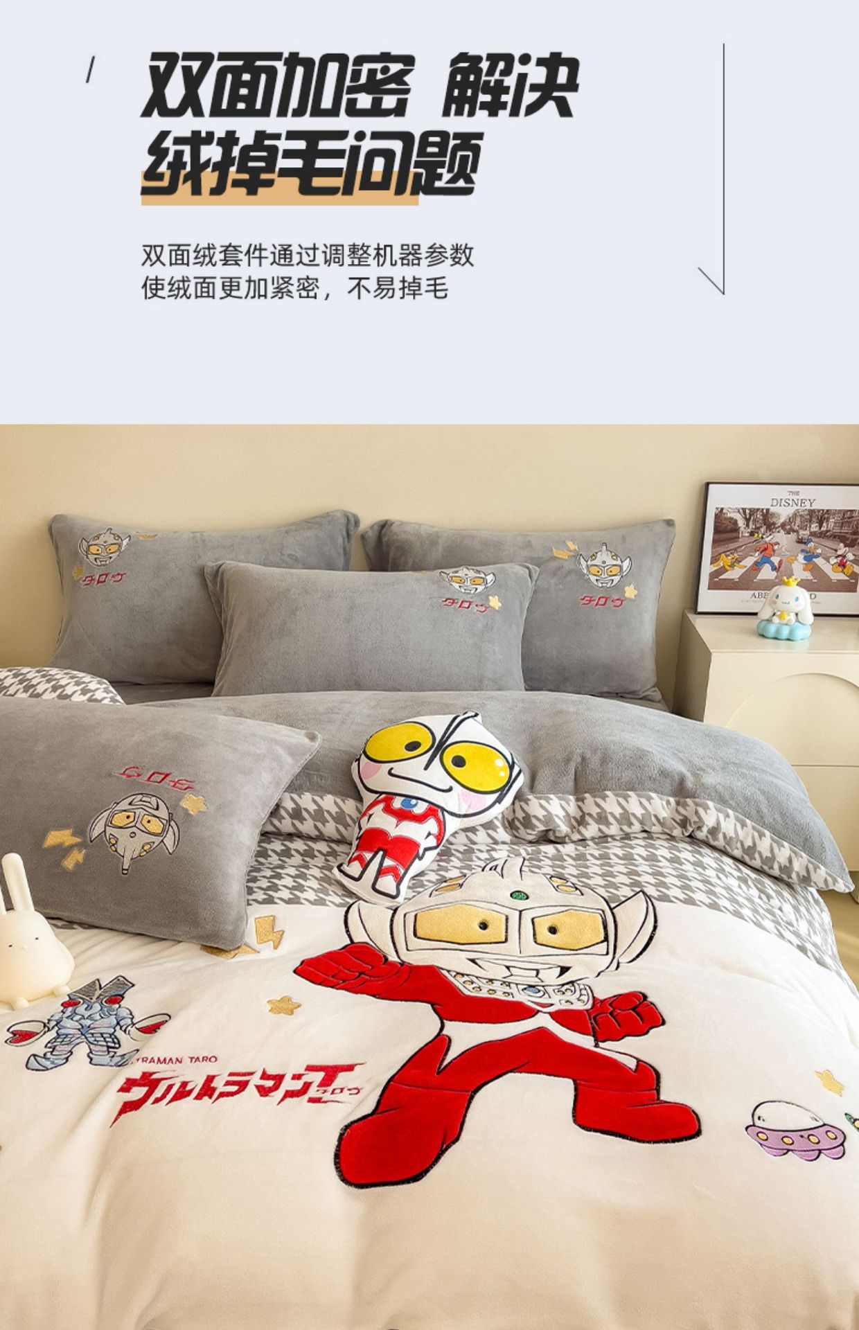 울트라 맨 양면 두꺼운 우유 벨벳 침대 4 조각 세트 어린이 산호 플란넬 침구 퀼트 커버 침대 시트