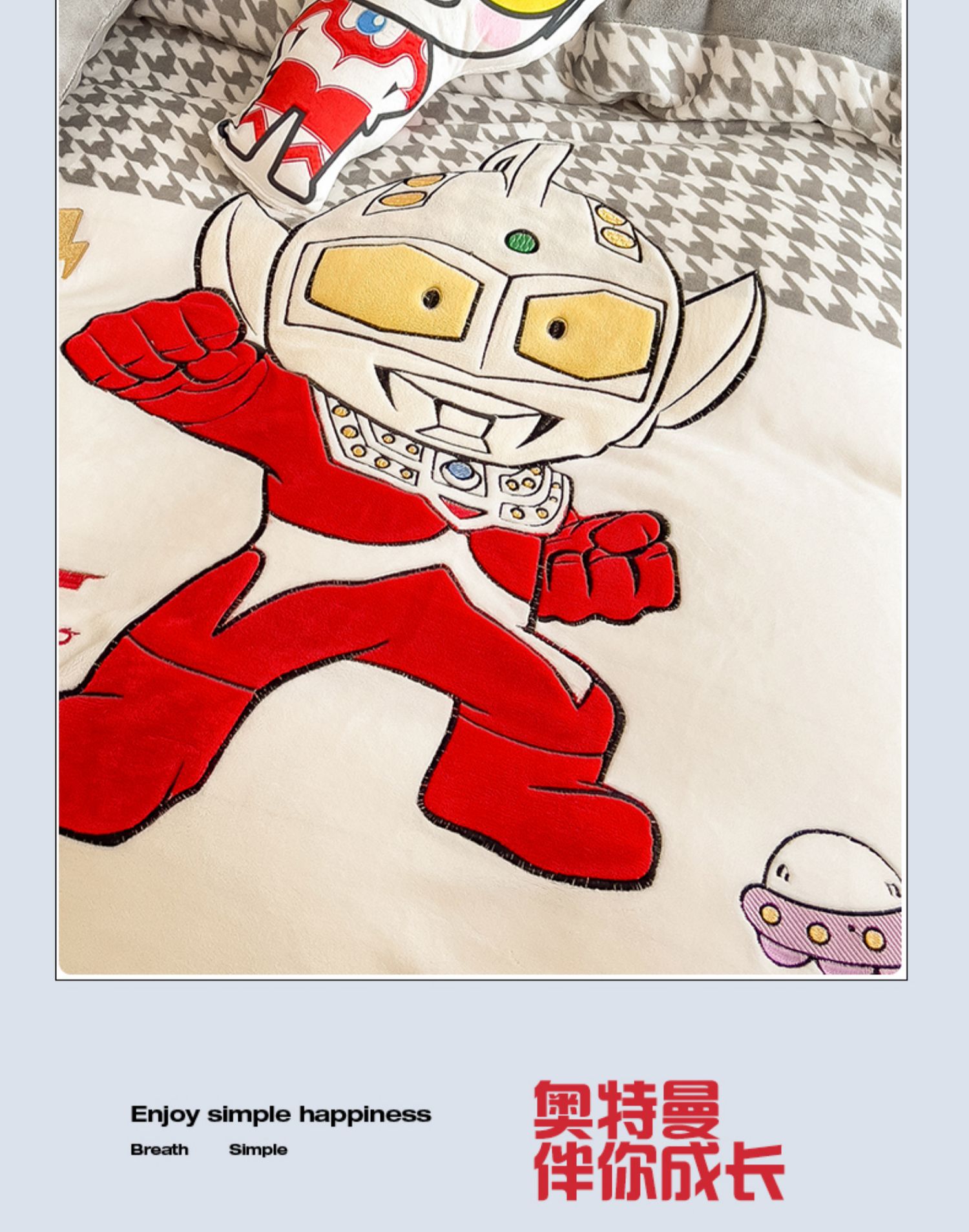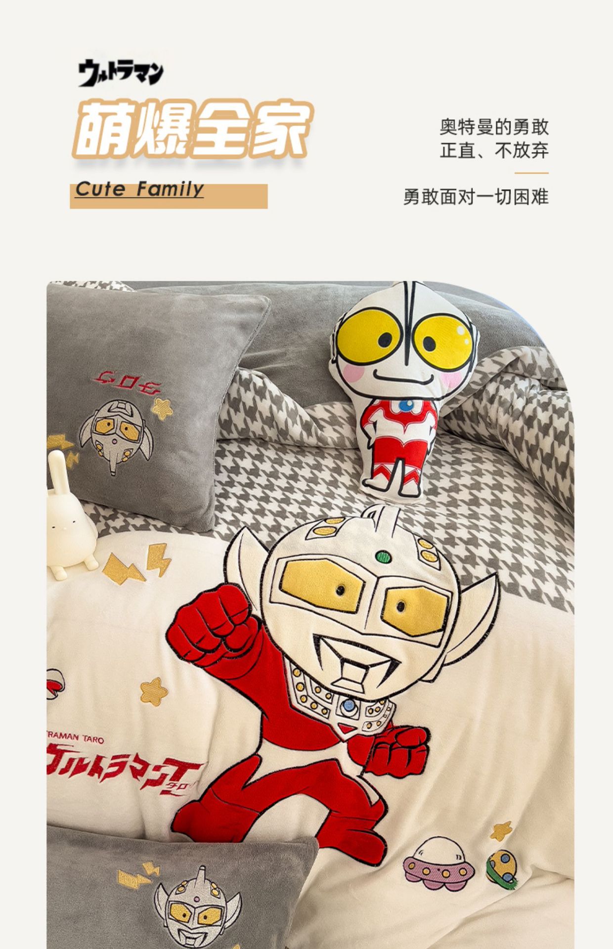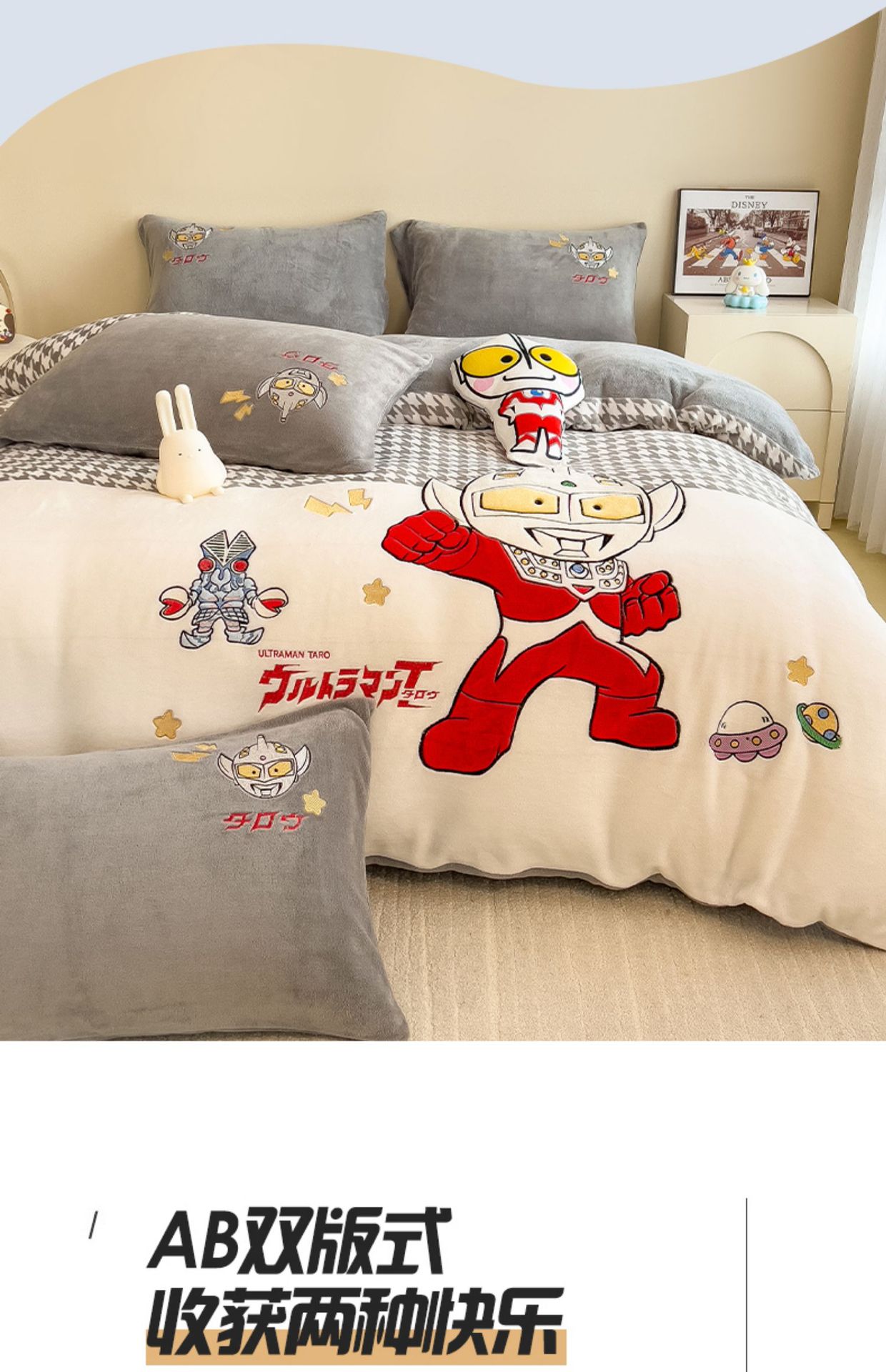 울트라 맨 양면 두꺼운 우유 벨벳 침대 4 조각 세트 어린이 산호 플란넬 침구 퀼트 커버 침대 시트
