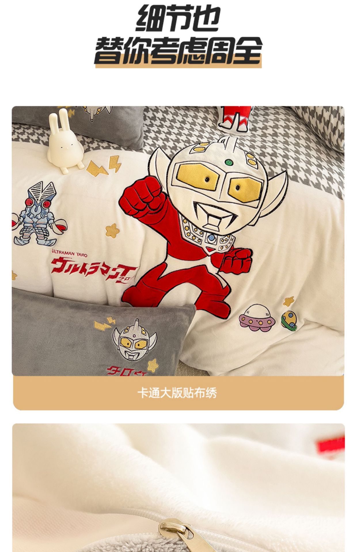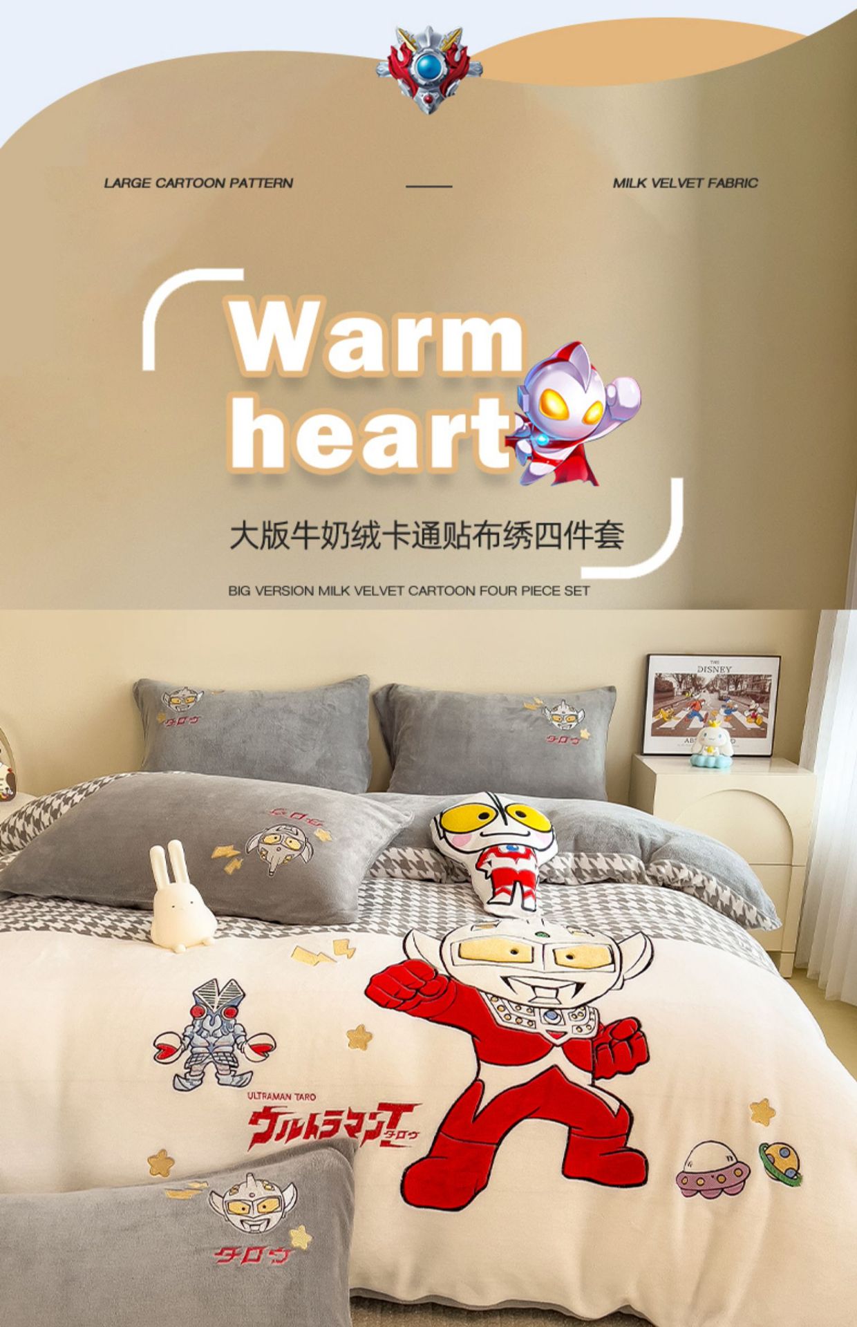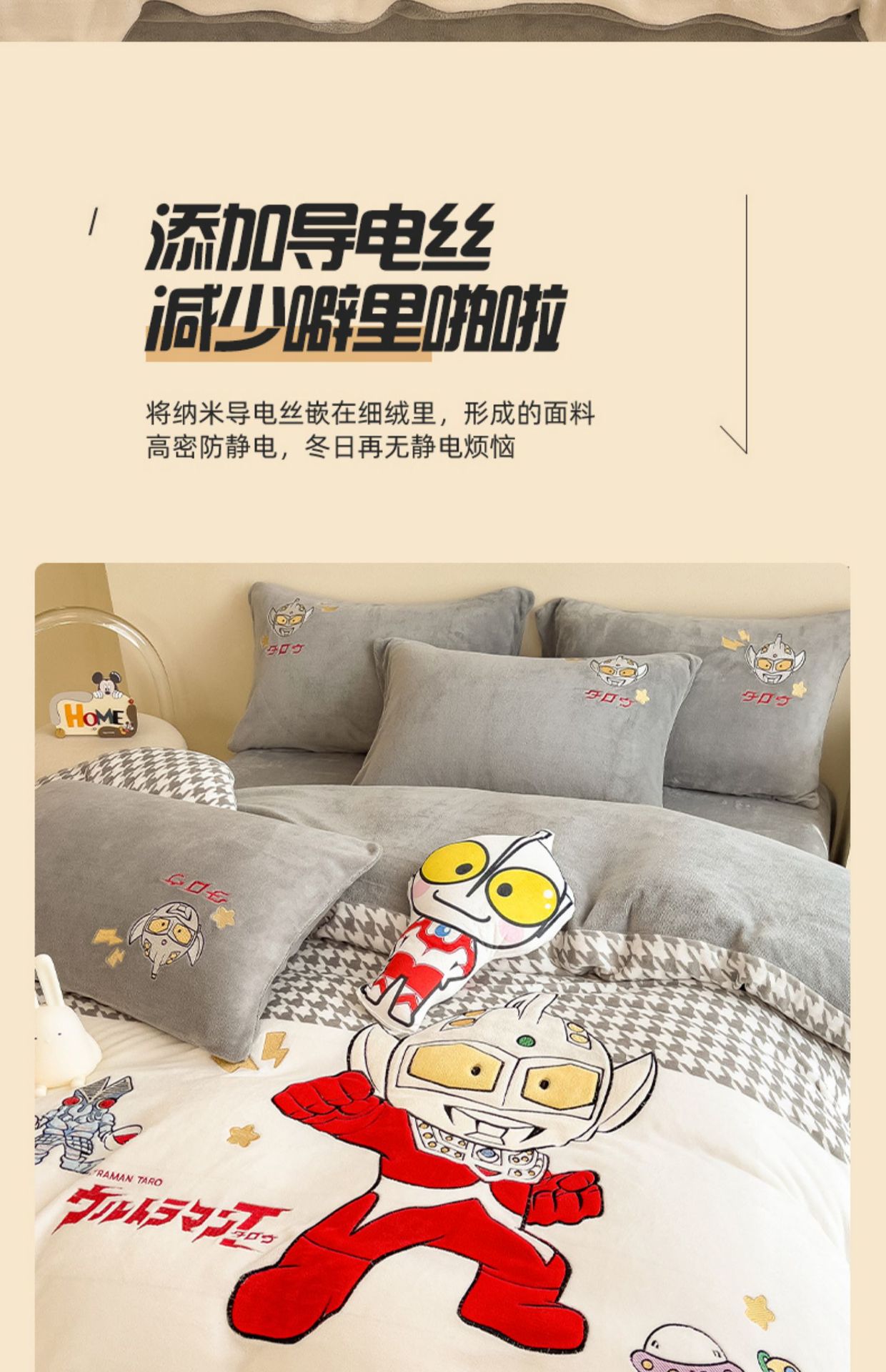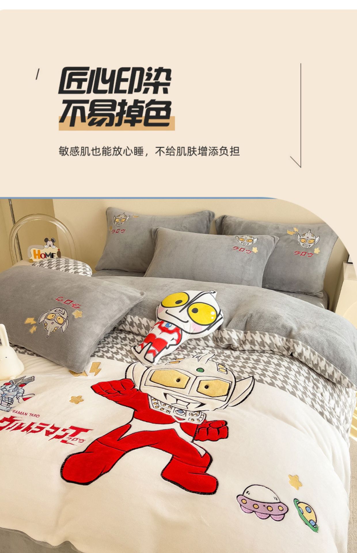 울트라 맨 양면 두꺼운 우유 벨벳 침대 4 조각 세트 어린이 산호 플란넬 침구 퀼트 커버 침대 시트스토어 가기