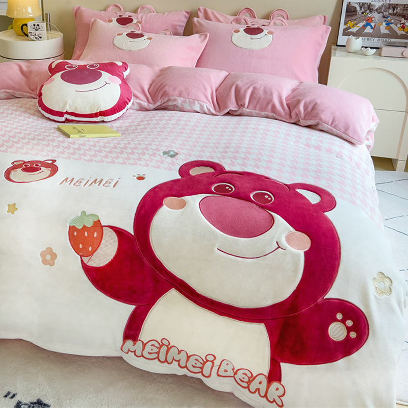 • Happy Strawberry Bear-패치 자수 [정품 IP 인증, 더 부드럽고 따뜻한 양면 헤비웨이트 벨벳]
