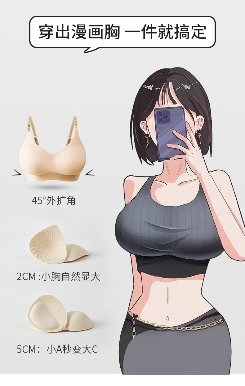 확장 된 만화 가슴 작은 가슴 초대형 편안한 추적없는 속옷 여성의 두꺼운 코스터 통기성 무자비한 모임 브래지어스토어 가기