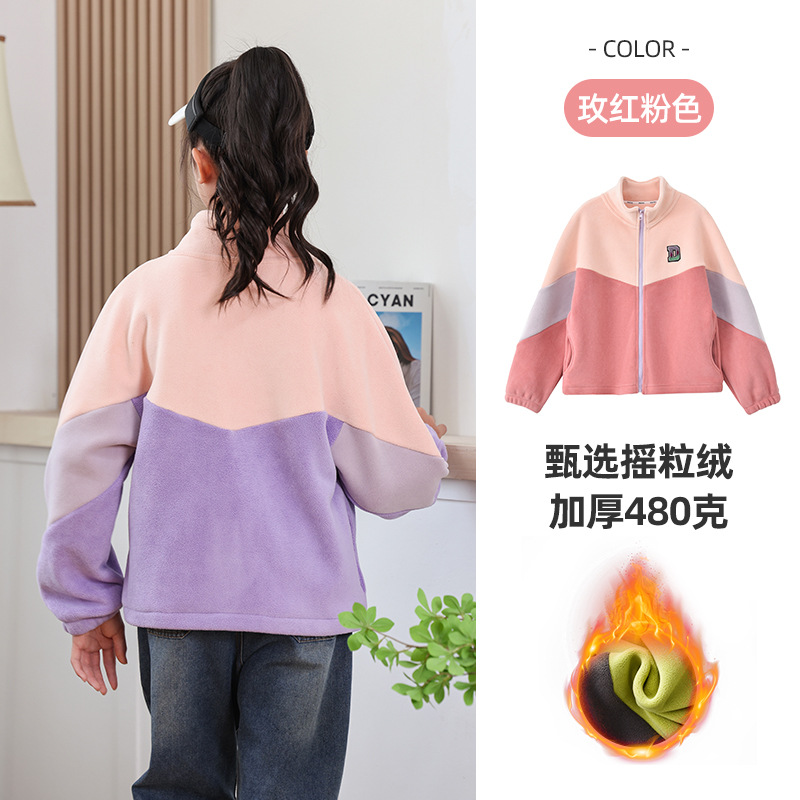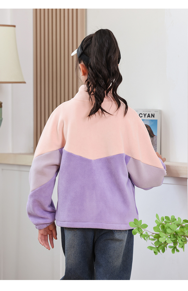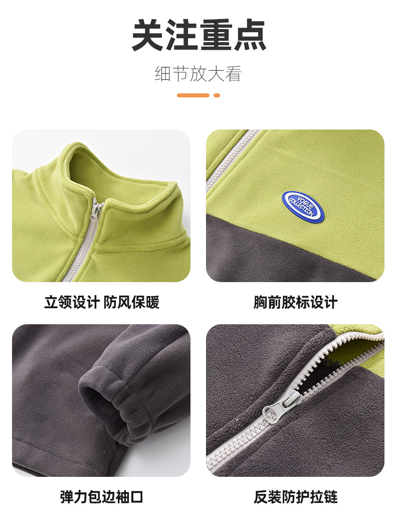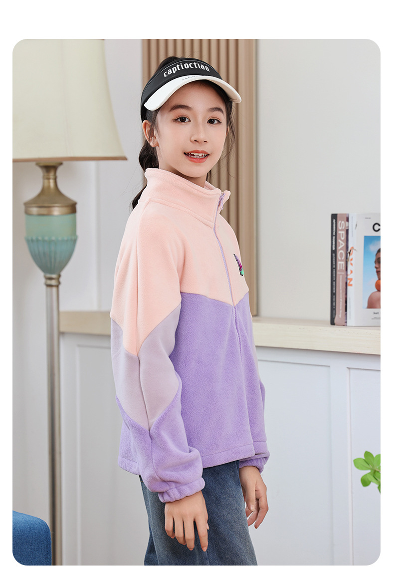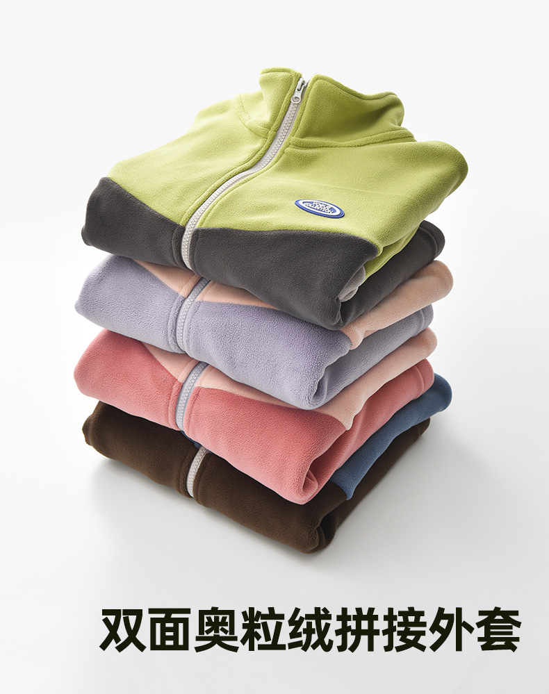 남아용 폴라 플리스 재킷 가을 겨울 스탠드 칼라 지퍼 셔츠 아동복 플리스 의류 배색 폴라 플리스 여아용 상의