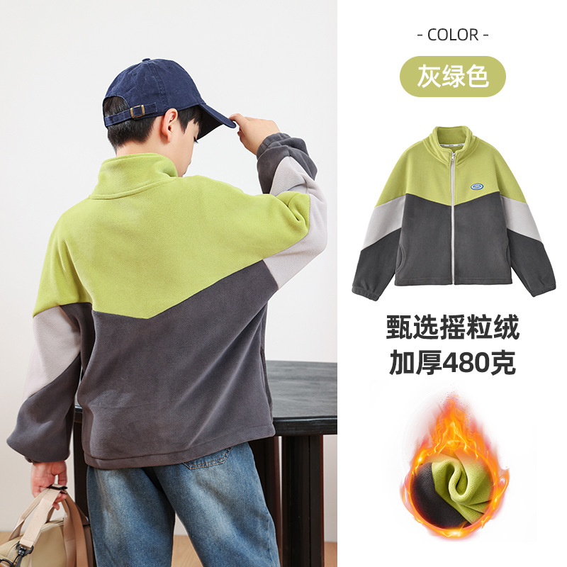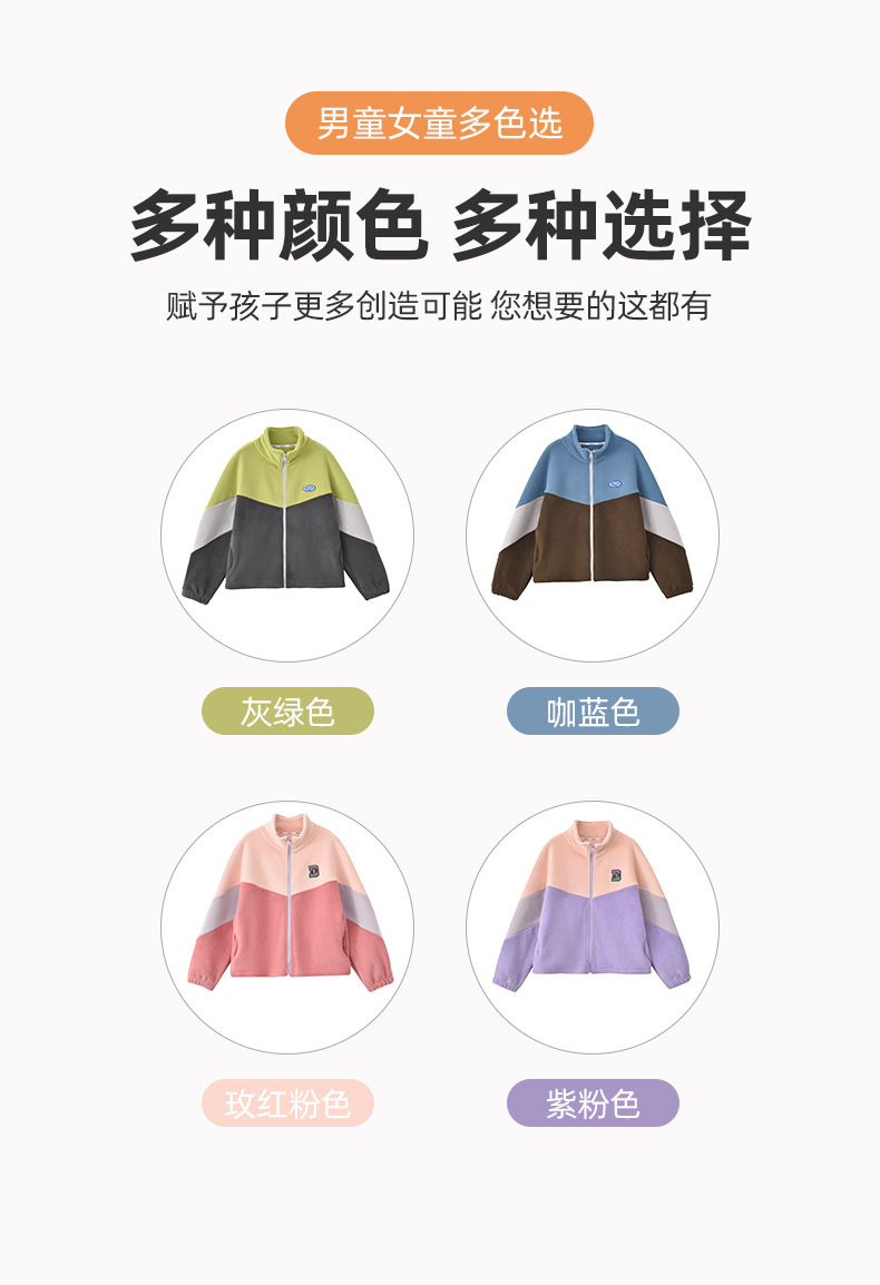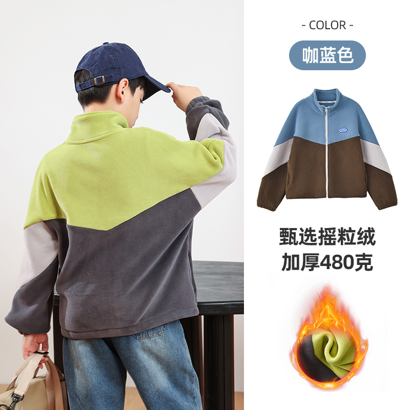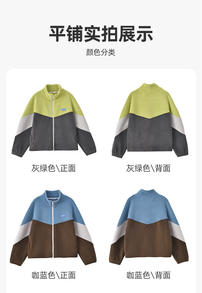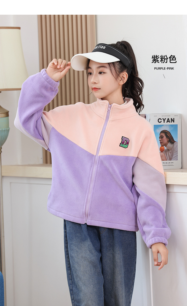 남아용 폴라 플리스 재킷 가을 겨울 스탠드 칼라 지퍼 셔츠 아동복 플리스 의류 배색 폴라 플리스 여아용 상의