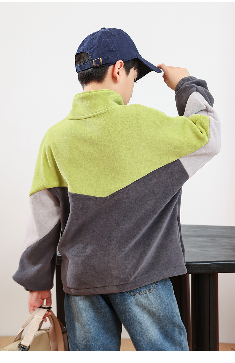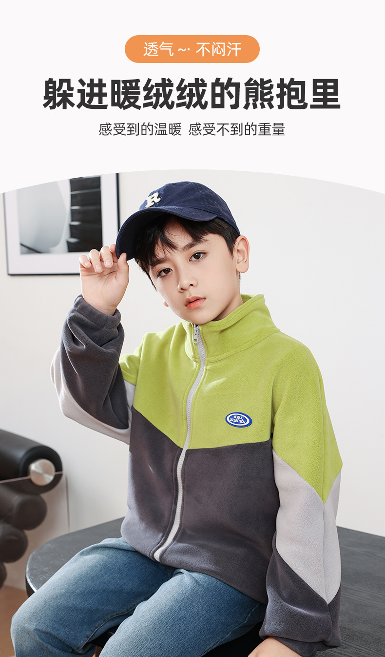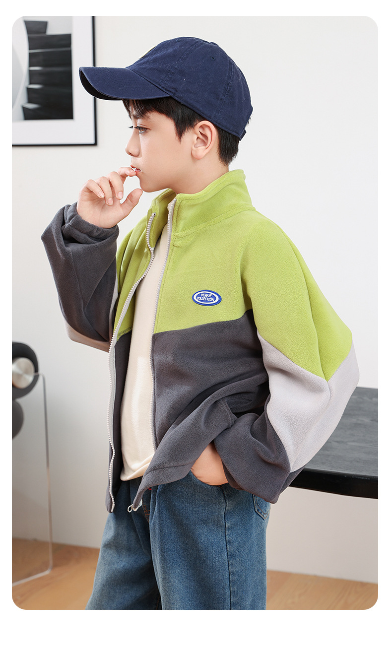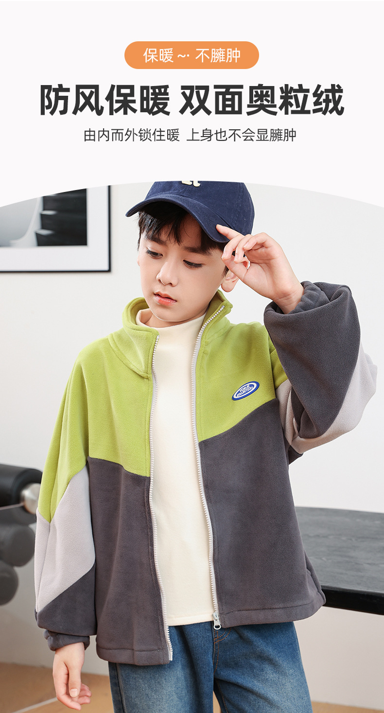 남아용 폴라 플리스 재킷 가을 겨울 스탠드 칼라 지퍼 셔츠 아동복 플리스 의류 배색 폴라 플리스 여아용 상의스토어 가기