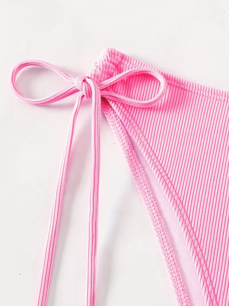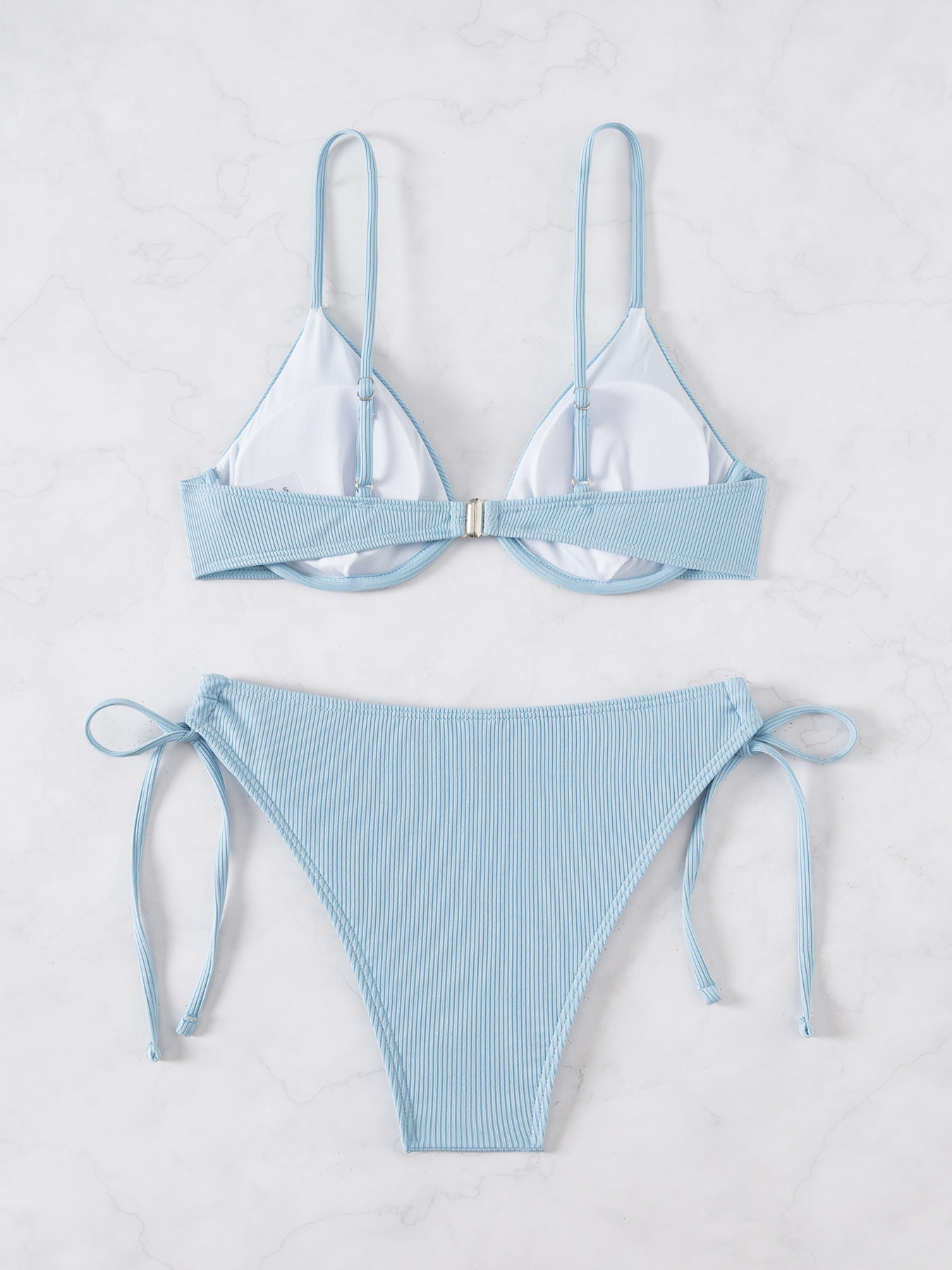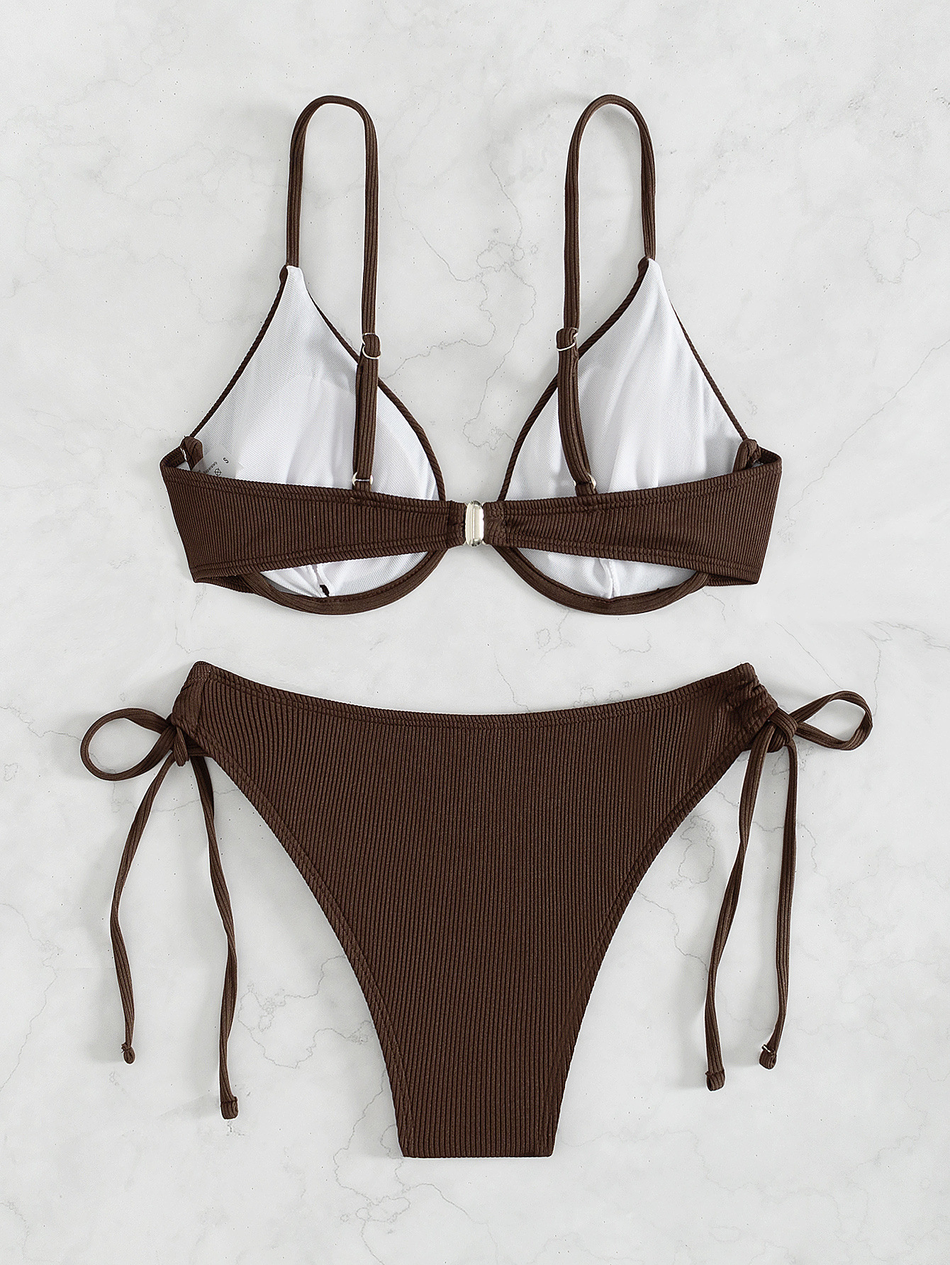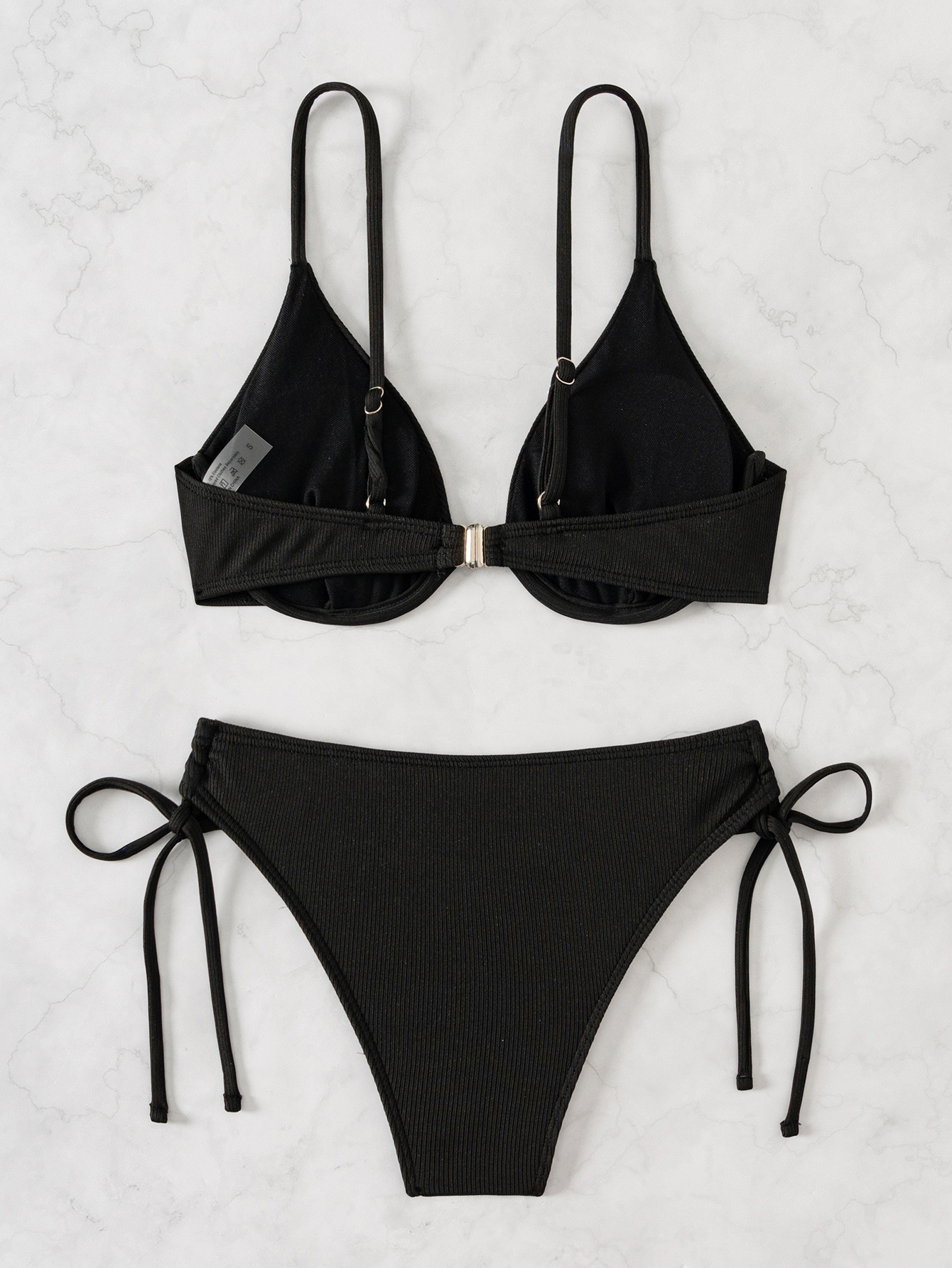 십억 수영 핫 세일 새로운 스타일 2024 분할 스틸 트레이서 섹시 게더 백리스 유럽과 미국 수영복 솔리드 컬러 레이스 업 비키니 여성