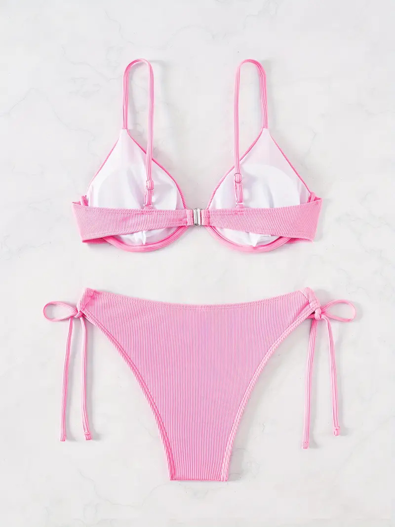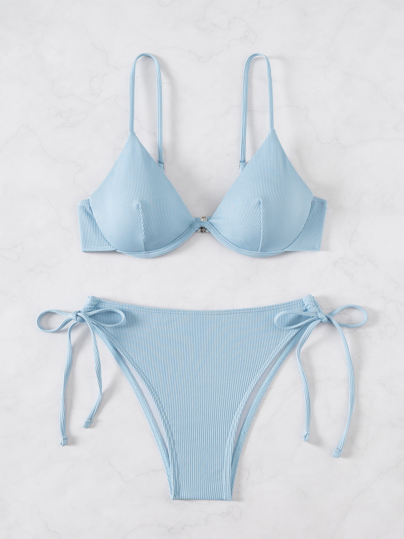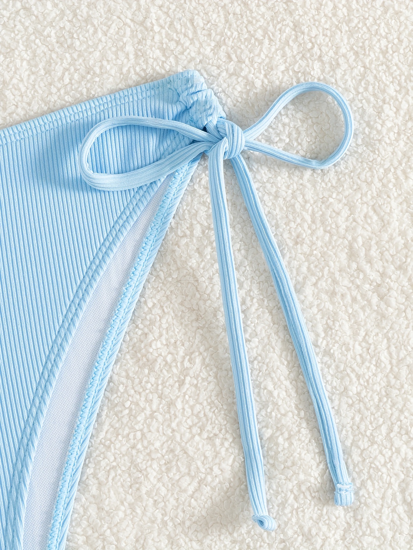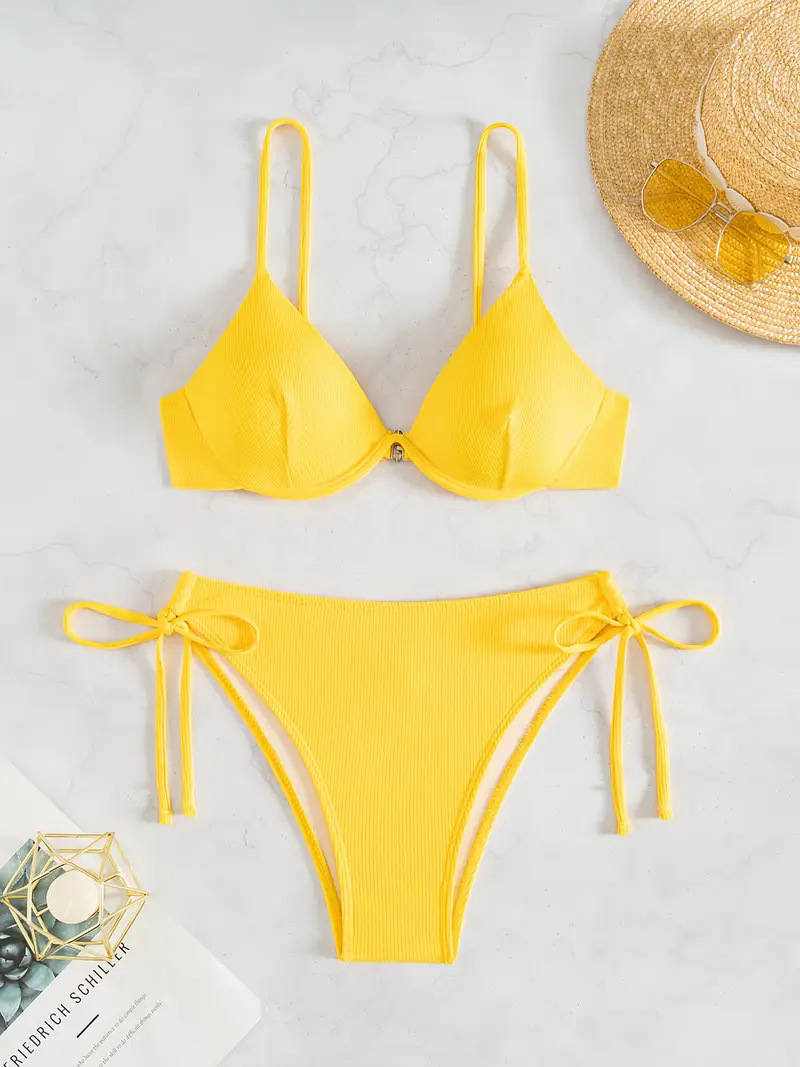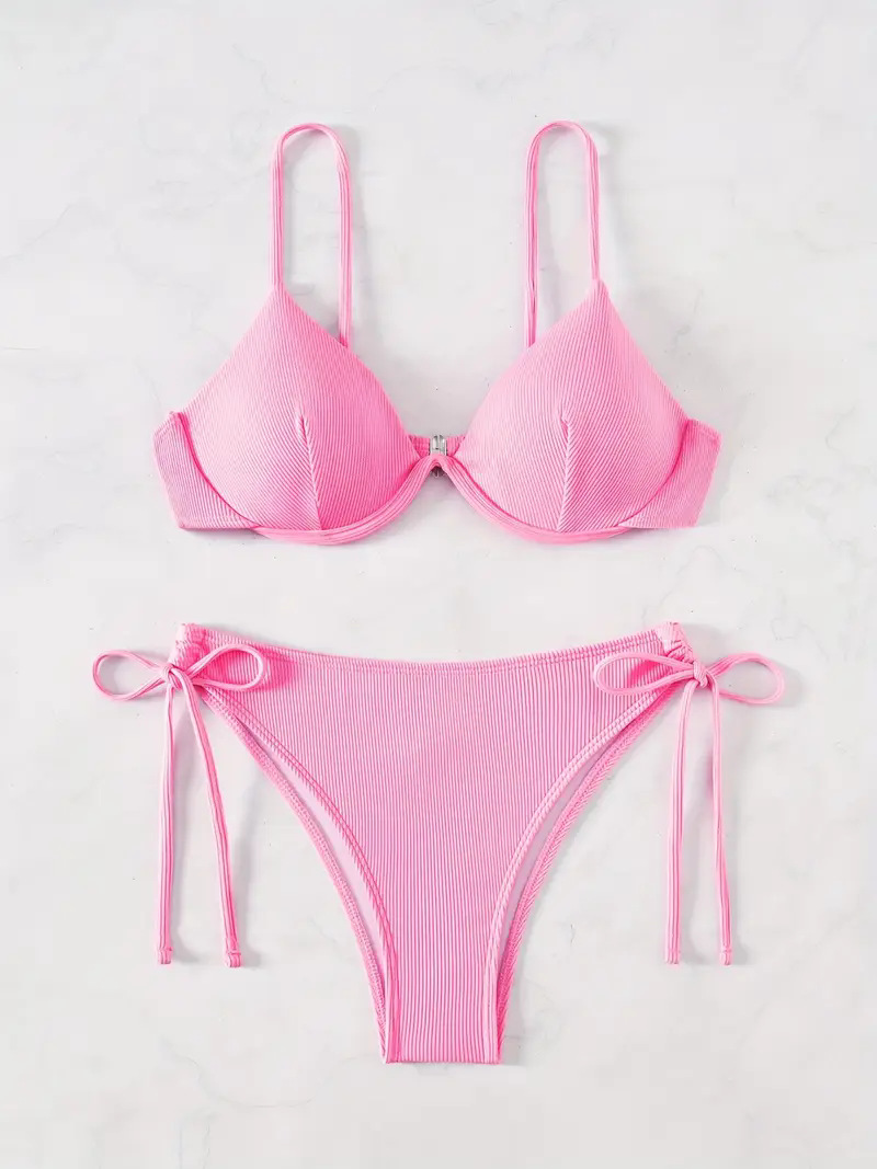 십억 수영 핫 세일 새로운 스타일 2024 분할 스틸 트레이서 섹시 게더 백리스 유럽과 미국 수영복 솔리드 컬러 레이스 업 비키니 여성