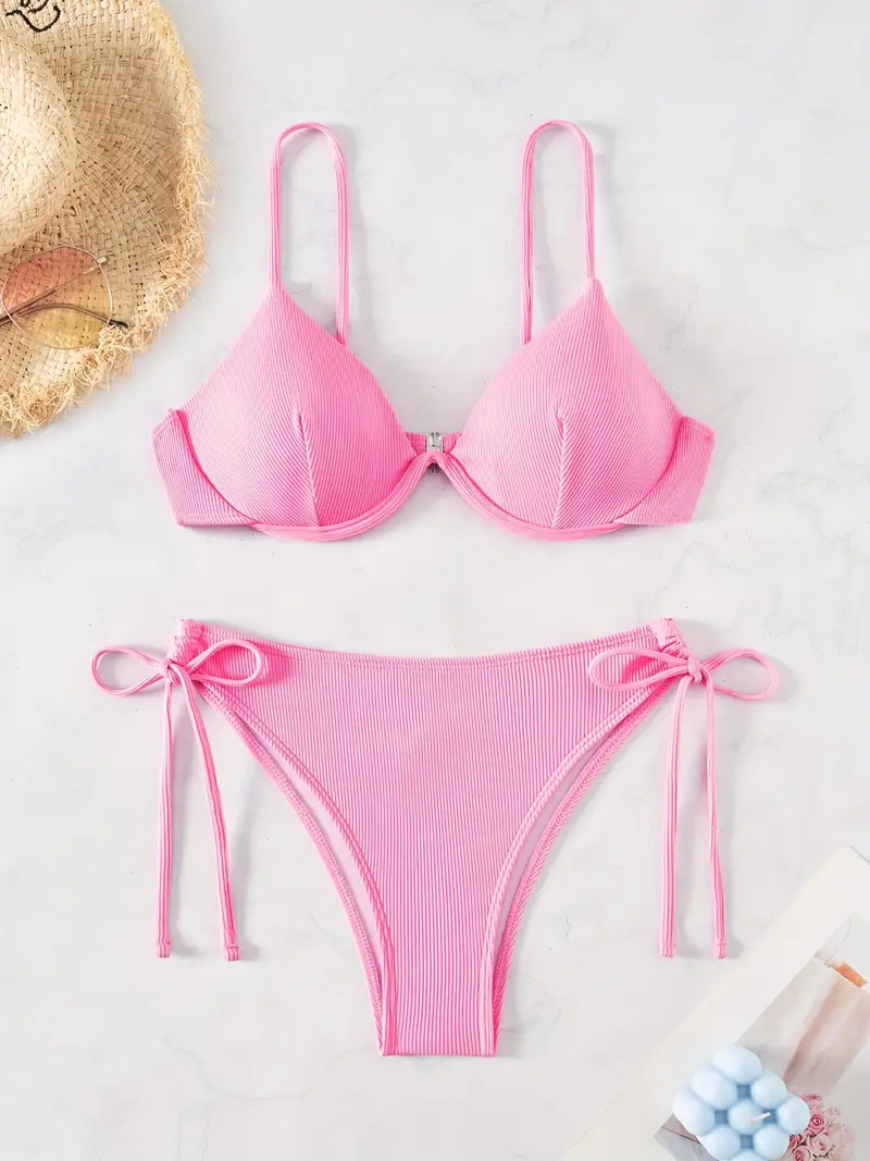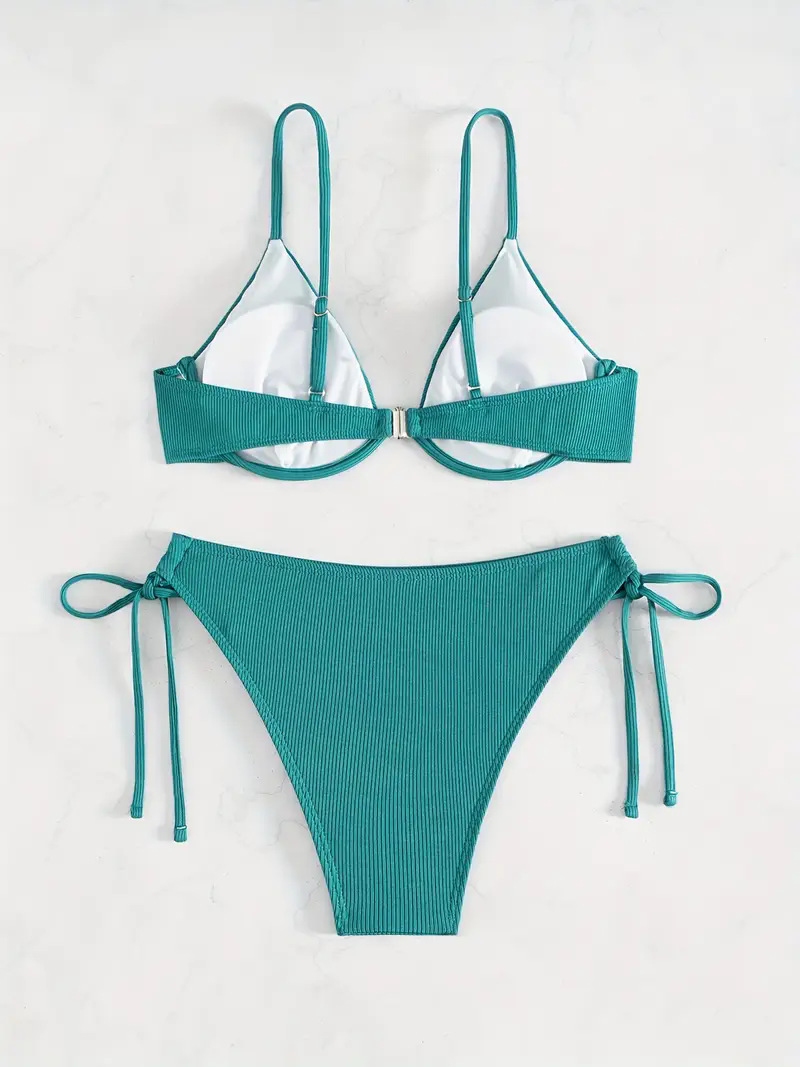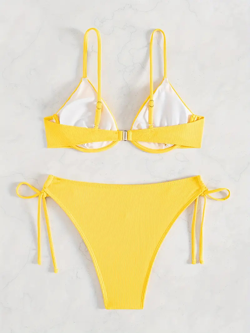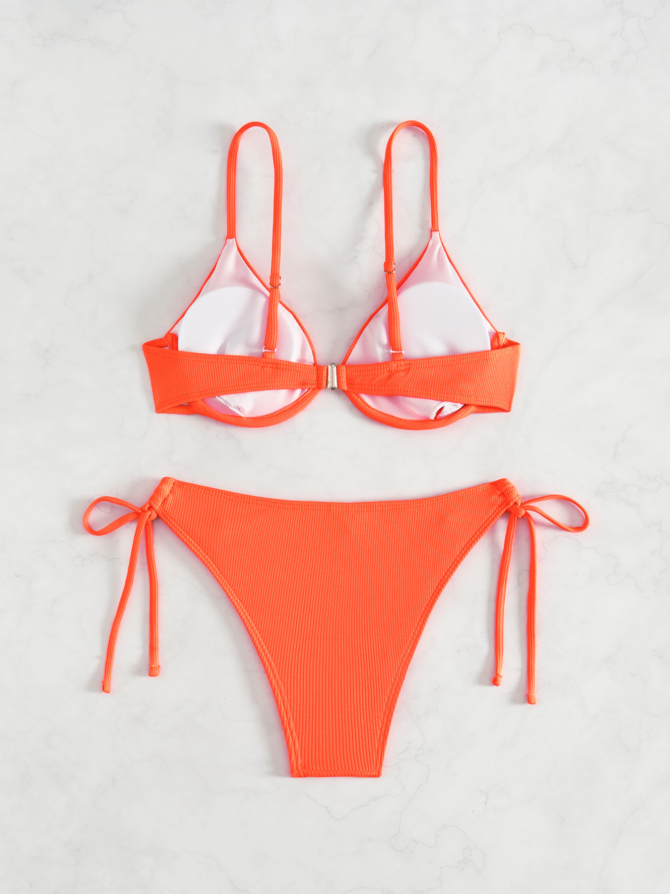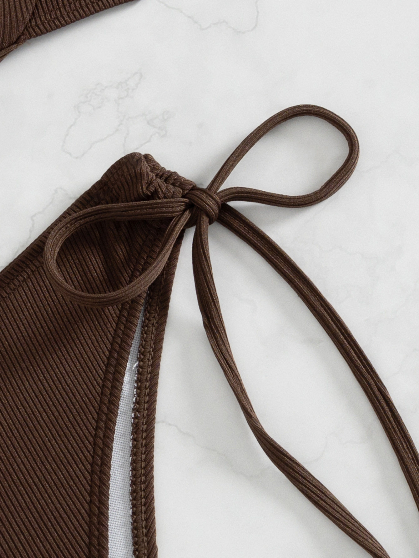 십억 수영 핫 세일 새로운 스타일 2024 분할 스틸 트레이서 섹시 게더 백리스 유럽과 미국 수영복 솔리드 컬러 레이스 업 비키니 여성