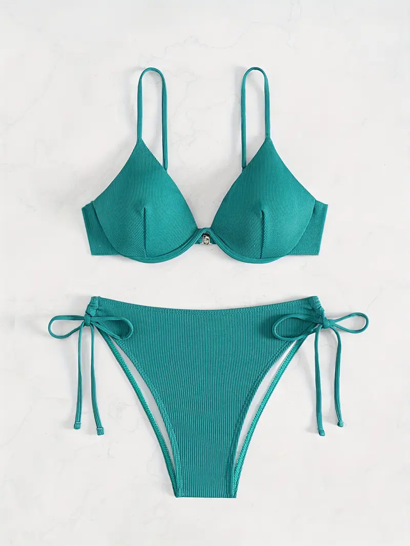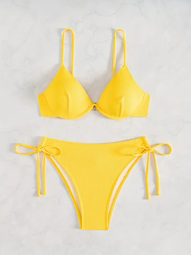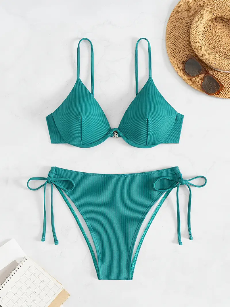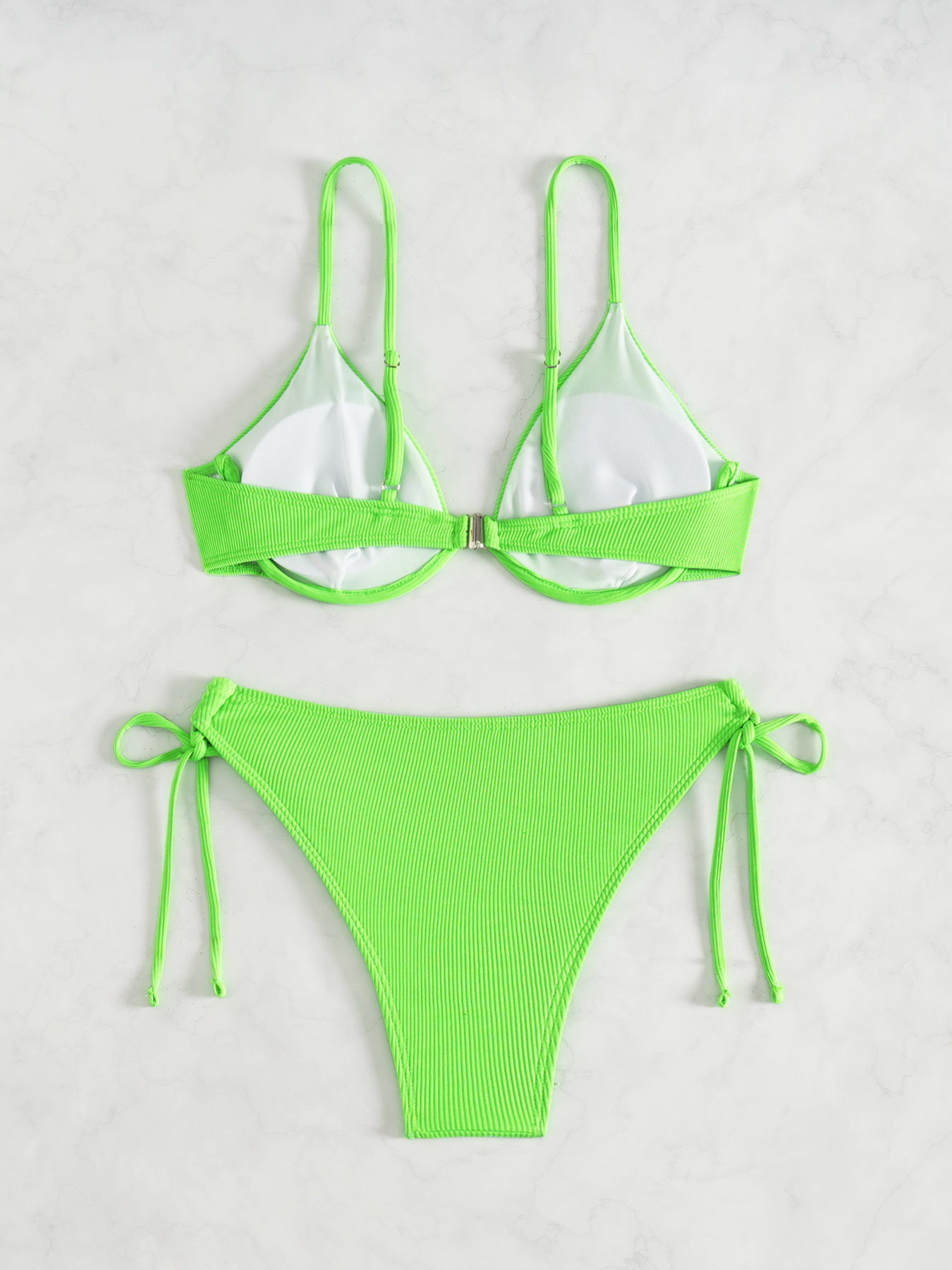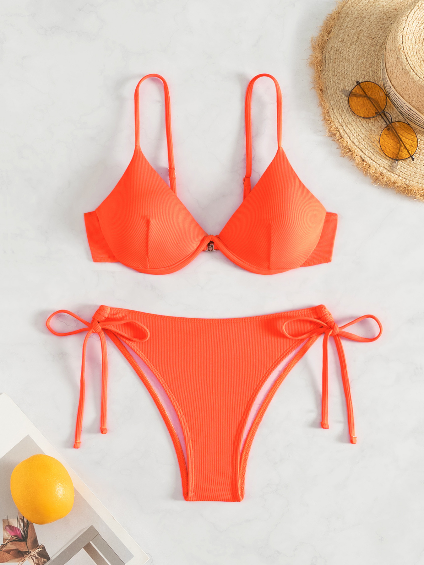 십억 수영 핫 세일 새로운 스타일 2024 분할 스틸 트레이서 섹시 게더 백리스 유럽과 미국 수영복 솔리드 컬러 레이스 업 비키니 여성