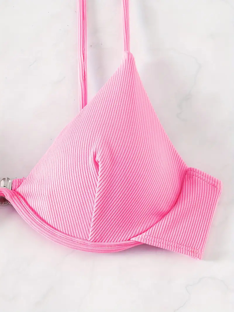 십억 수영 핫 세일 새로운 스타일 2024 분할 스틸 트레이서 섹시 게더 백리스 유럽과 미국 수영복 솔리드 컬러 레이스 업 비키니 여성스토어 가기