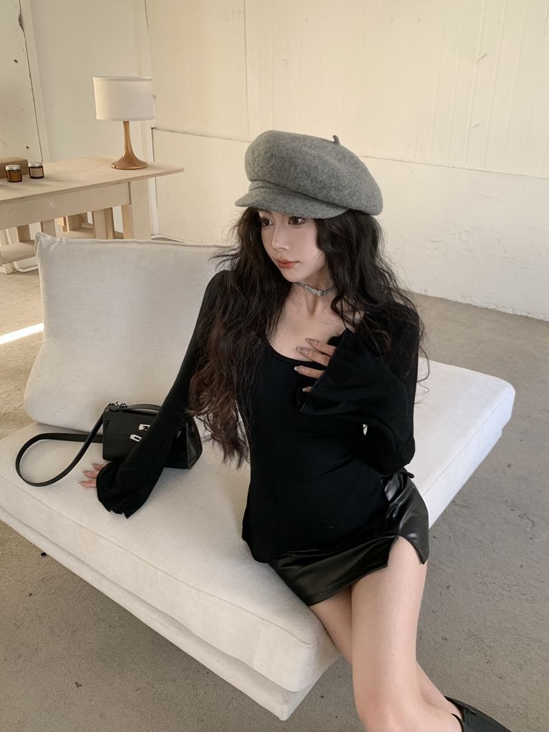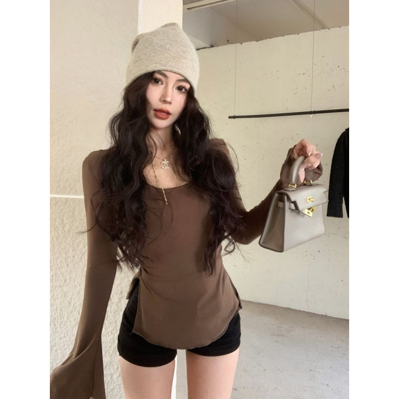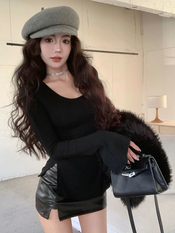여성의 봄과 가을 불규칙한 중간 길이 슬림 핏 슬리밍 스플릿 스파이스 걸 탑