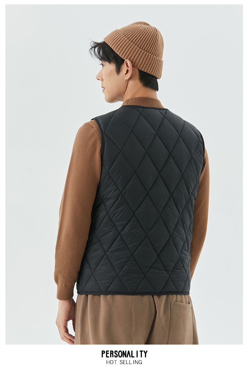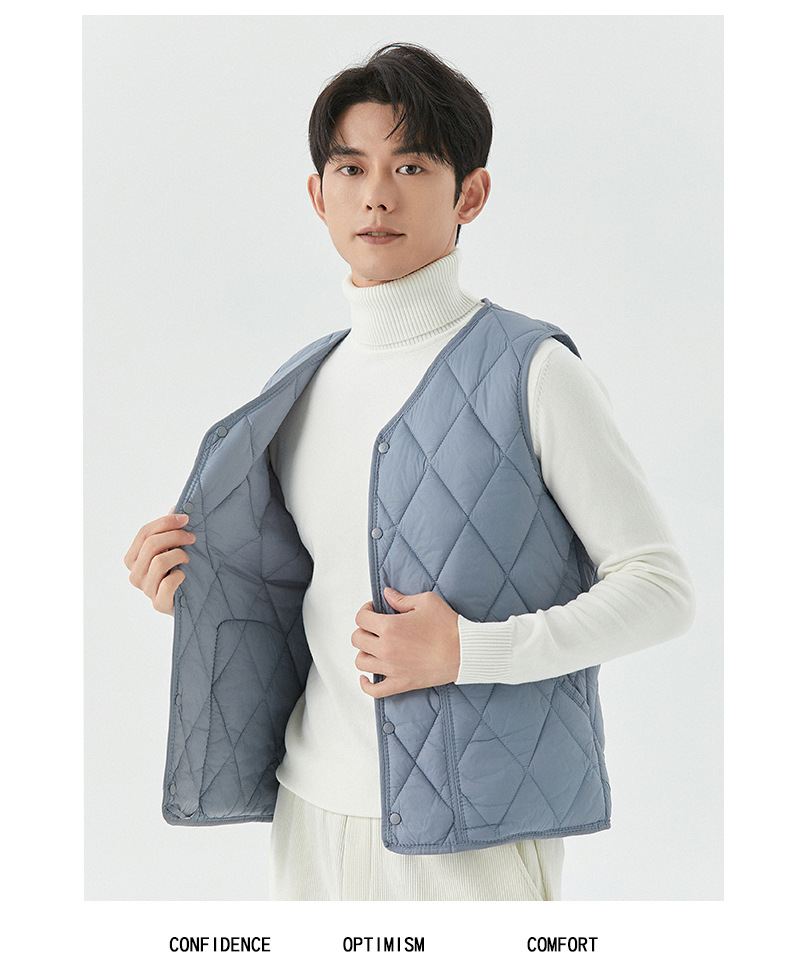 남자 가을 겨울 기모 따뜻한 중년 조끼 내부 포켓 남자 다이아몬드 짧은 버튼 조끼 2161
