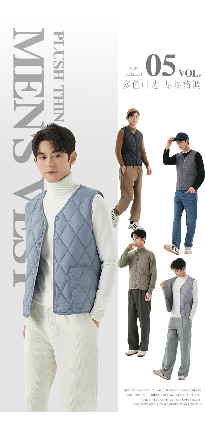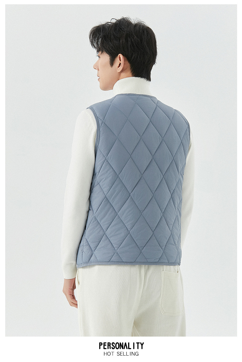 남자 가을 겨울 기모 따뜻한 중년 조끼 내부 포켓 남자 다이아몬드 짧은 버튼 조끼 2161스토어 가기