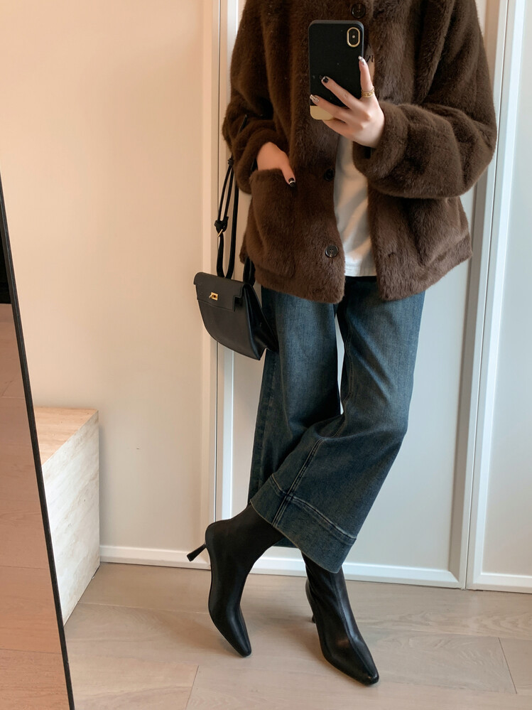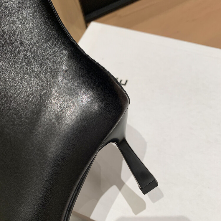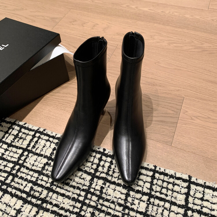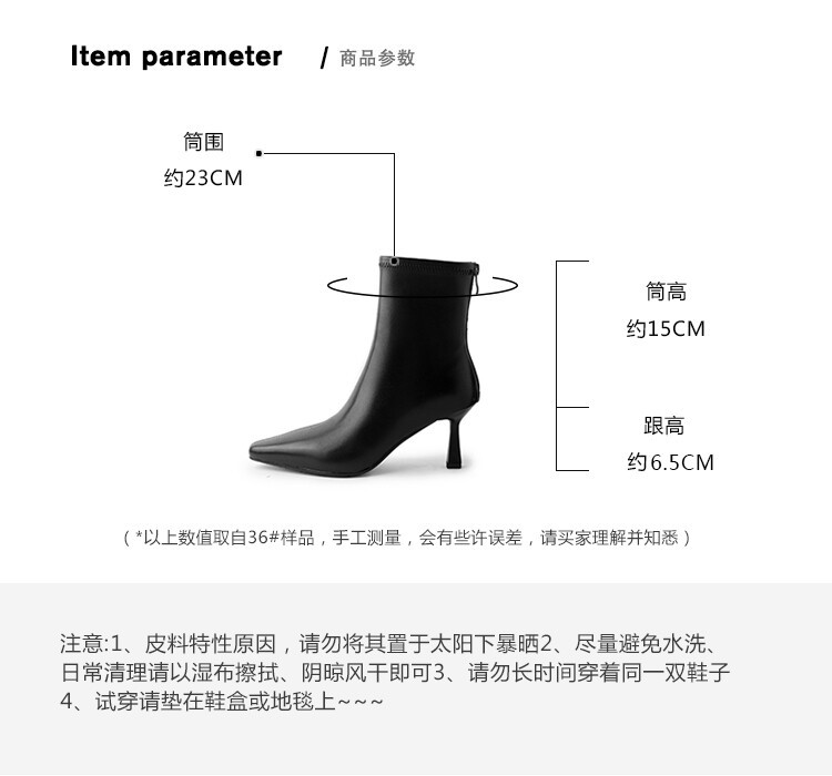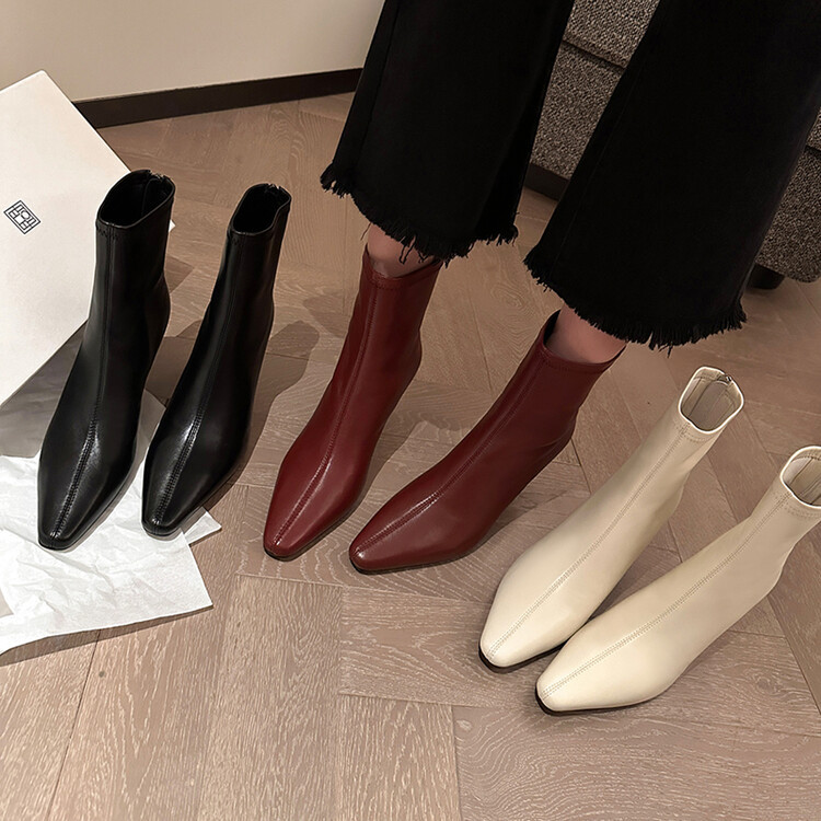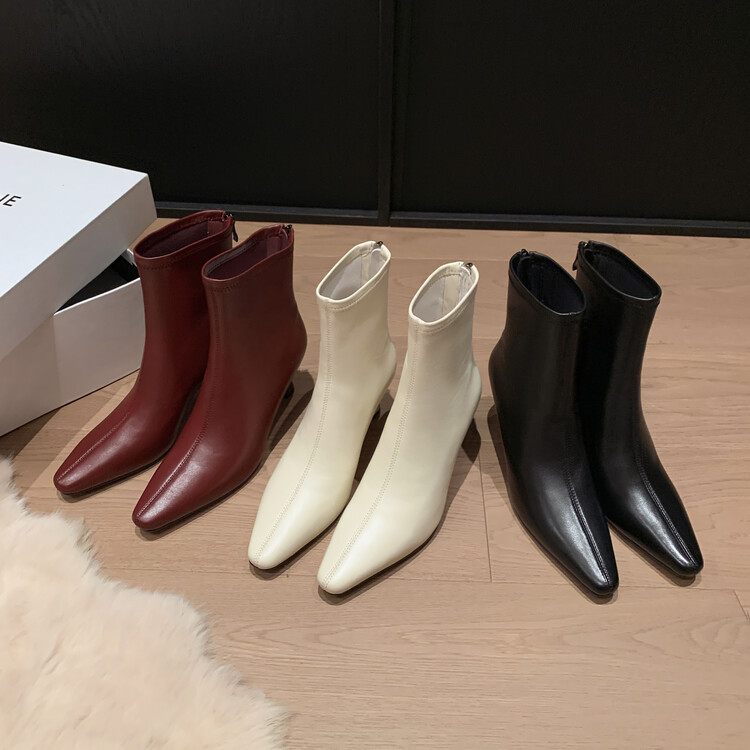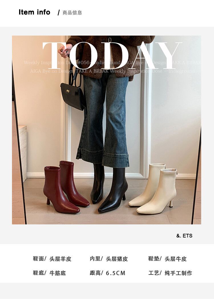양가죽 작은 발목 부츠 여성용 하이힐 싱글 부츠 가을 및 겨울 뉴 스퀘어 헤드 리어 지퍼 얇은 힐 여성용 발목 부츠 소프트 가죽 발목 부츠스토어 가기