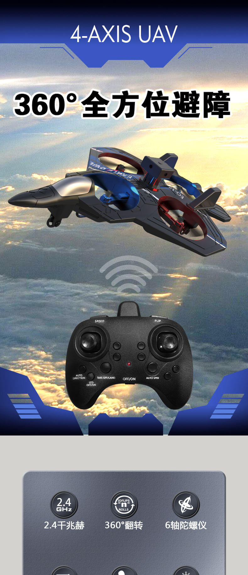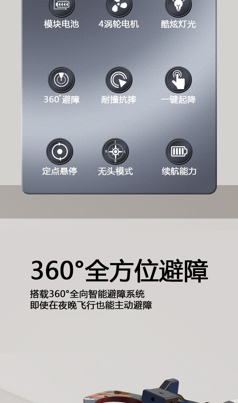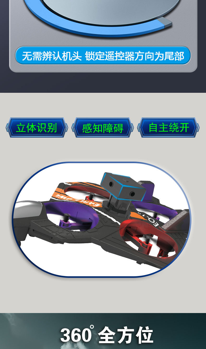 • 검정색과 파란색의 멋진 원격 제어 항공기 [자동 장애물 회피 + 조명 + 속도 전환]