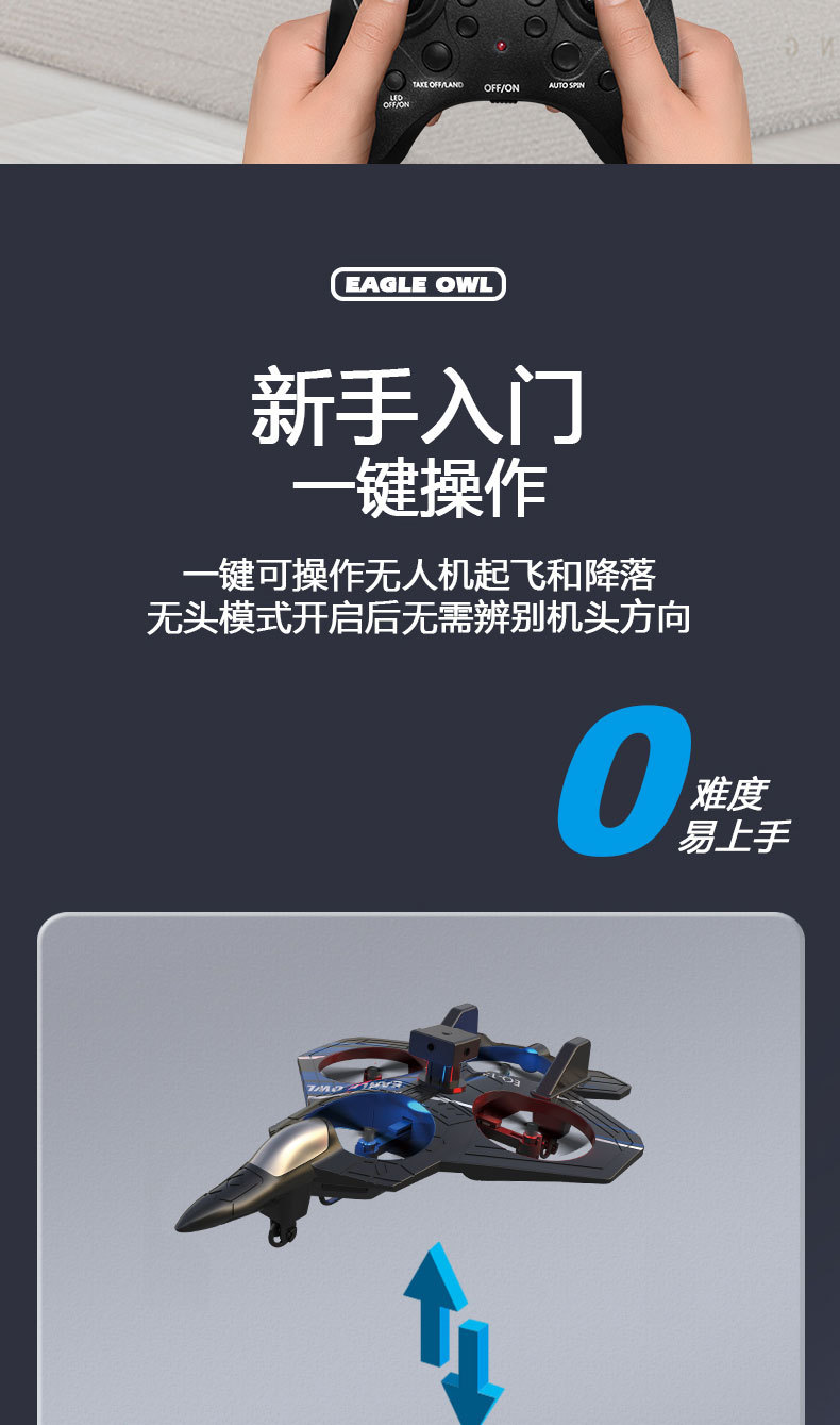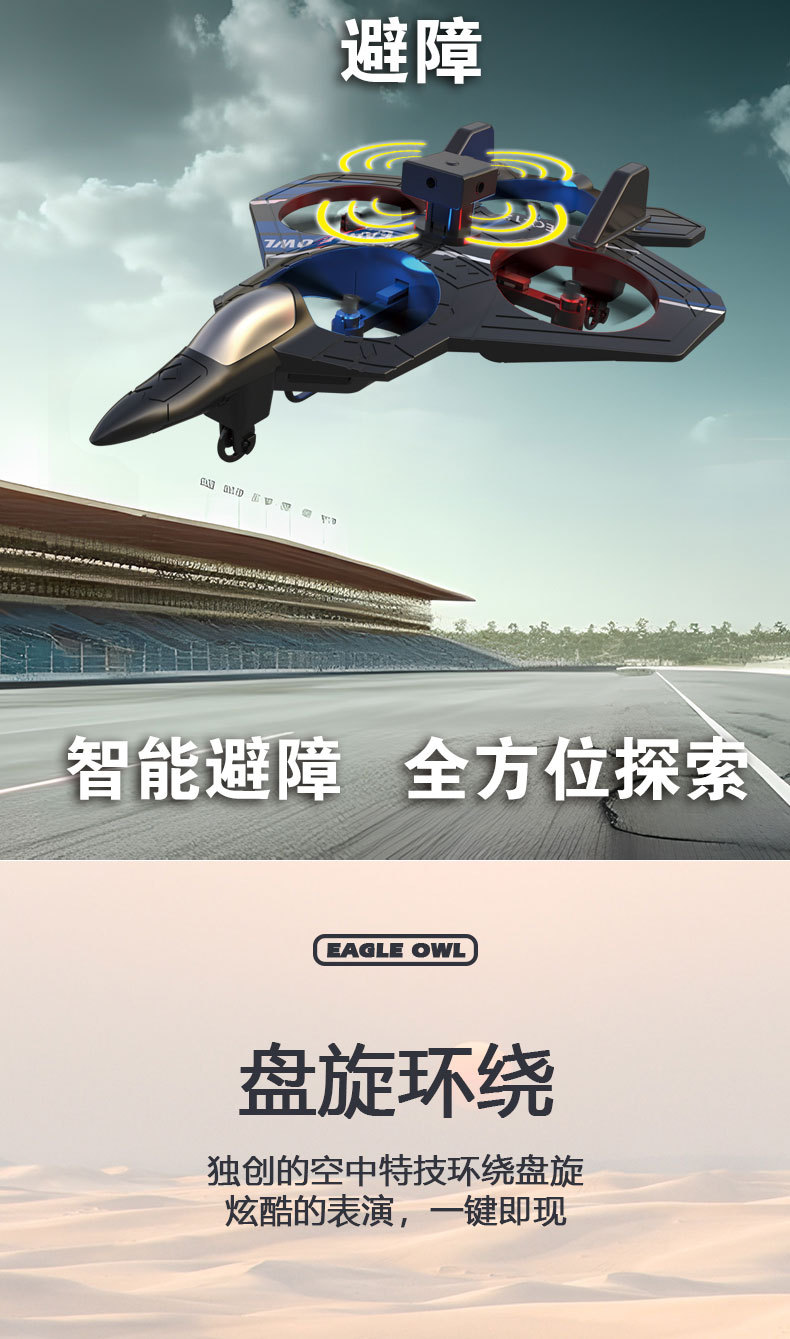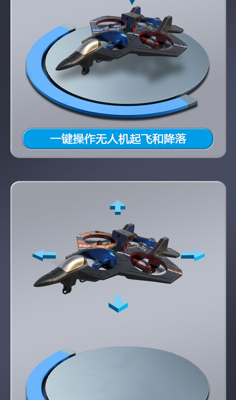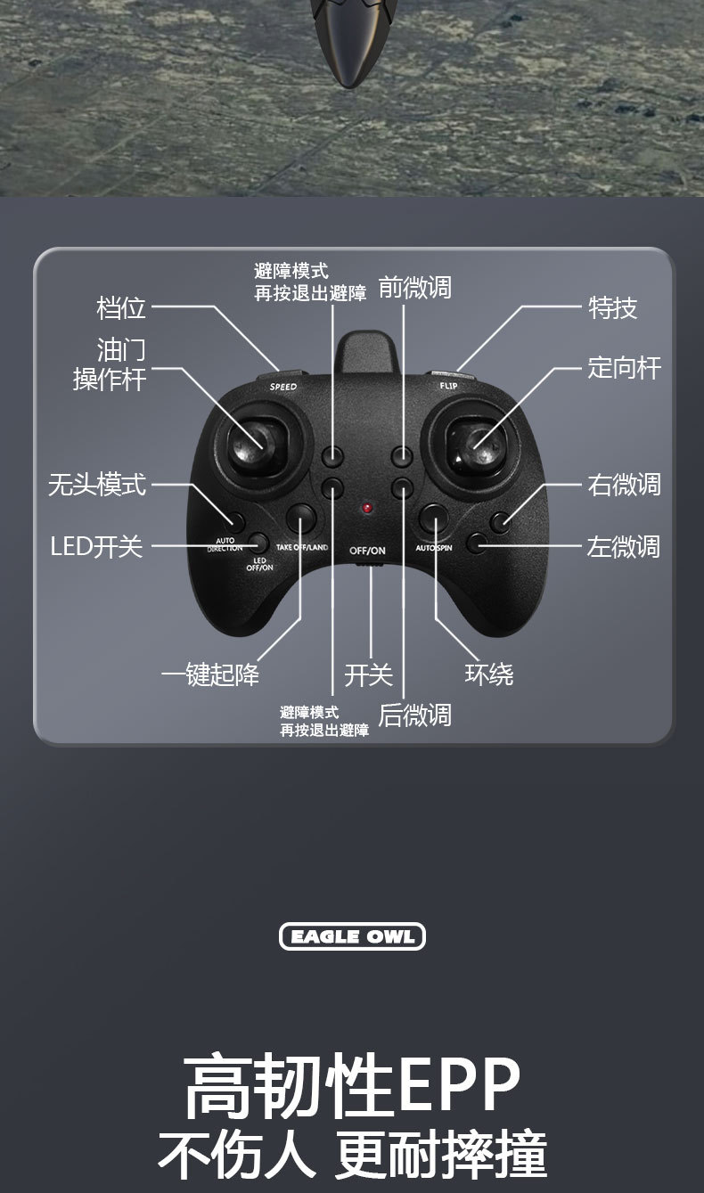 • 검정색과 파란색의 멋진 원격 제어 항공기 [자동 장애물 회피 + 조명 + 속도 전환]