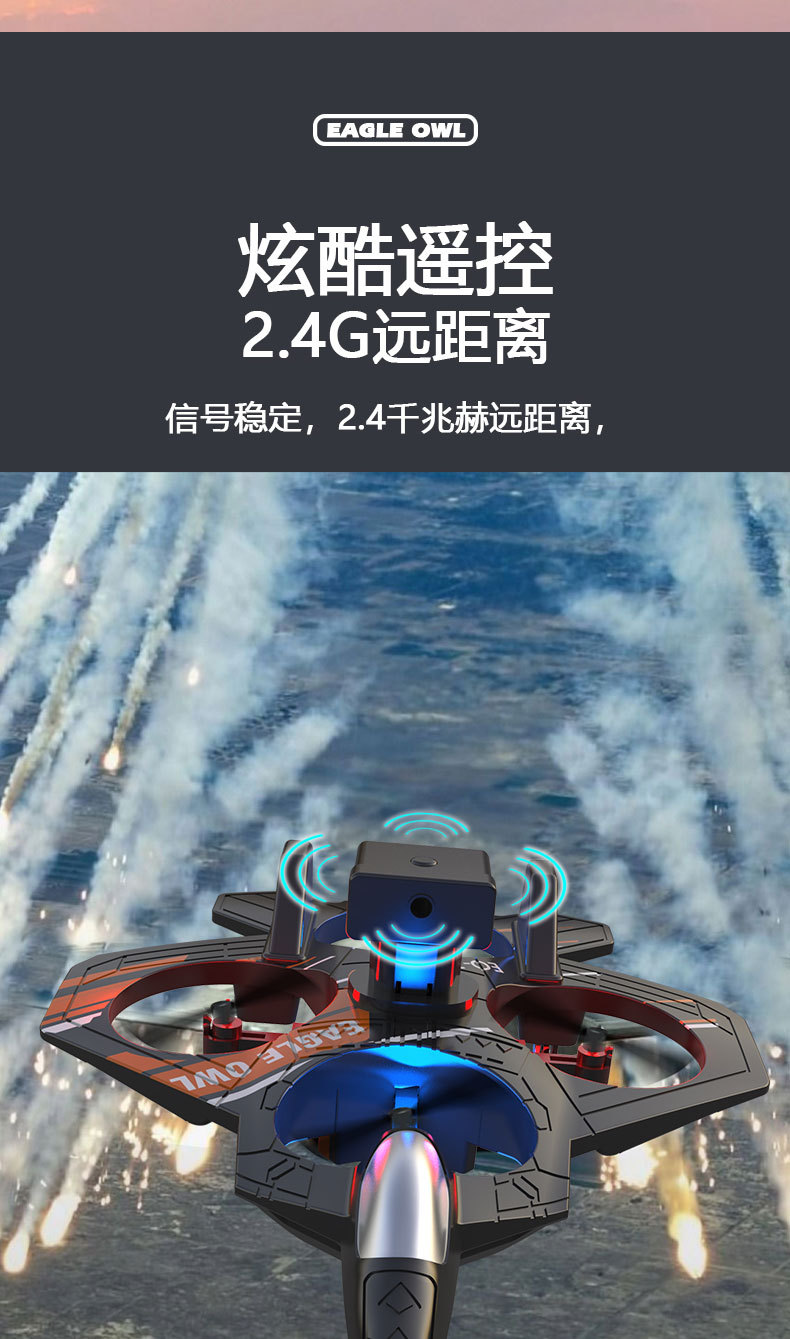 • 검정색과 주황색의 멋진 원격 제어 항공기 [자동 장애물 회피 + 조명 + 속도 전환]