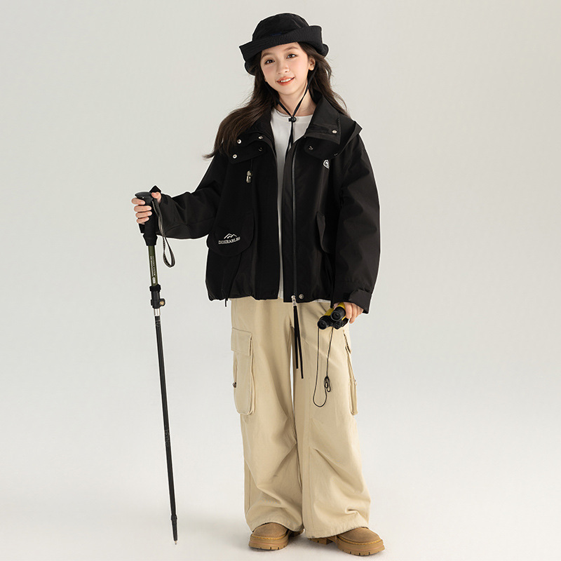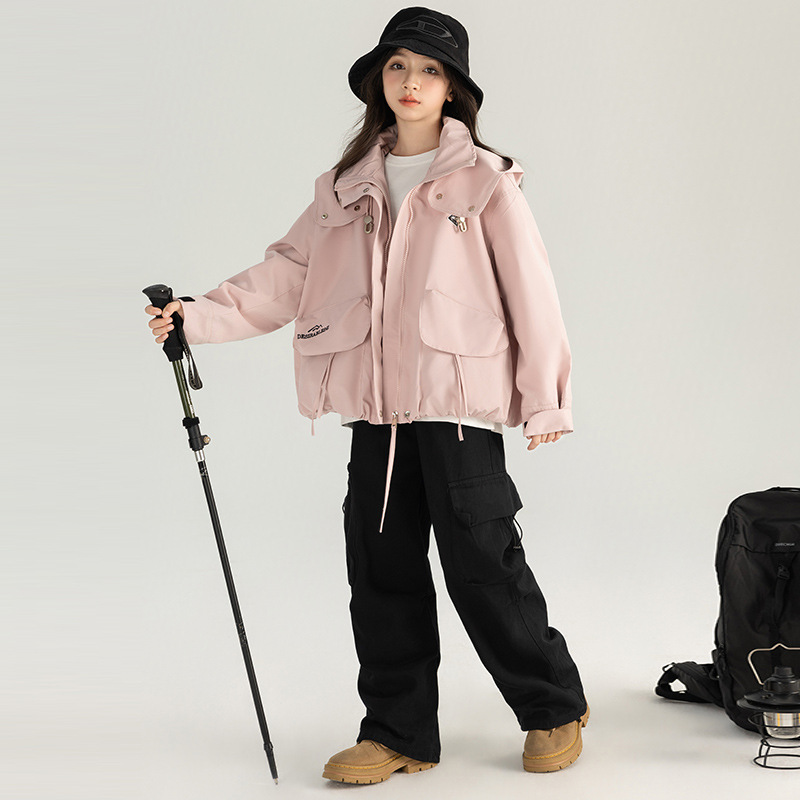 소녀 충전 옷 2024 봄과 가을 새로운 탑 큰 어린이 바람막이 가을 등산 옷 소녀 스포츠 재킷