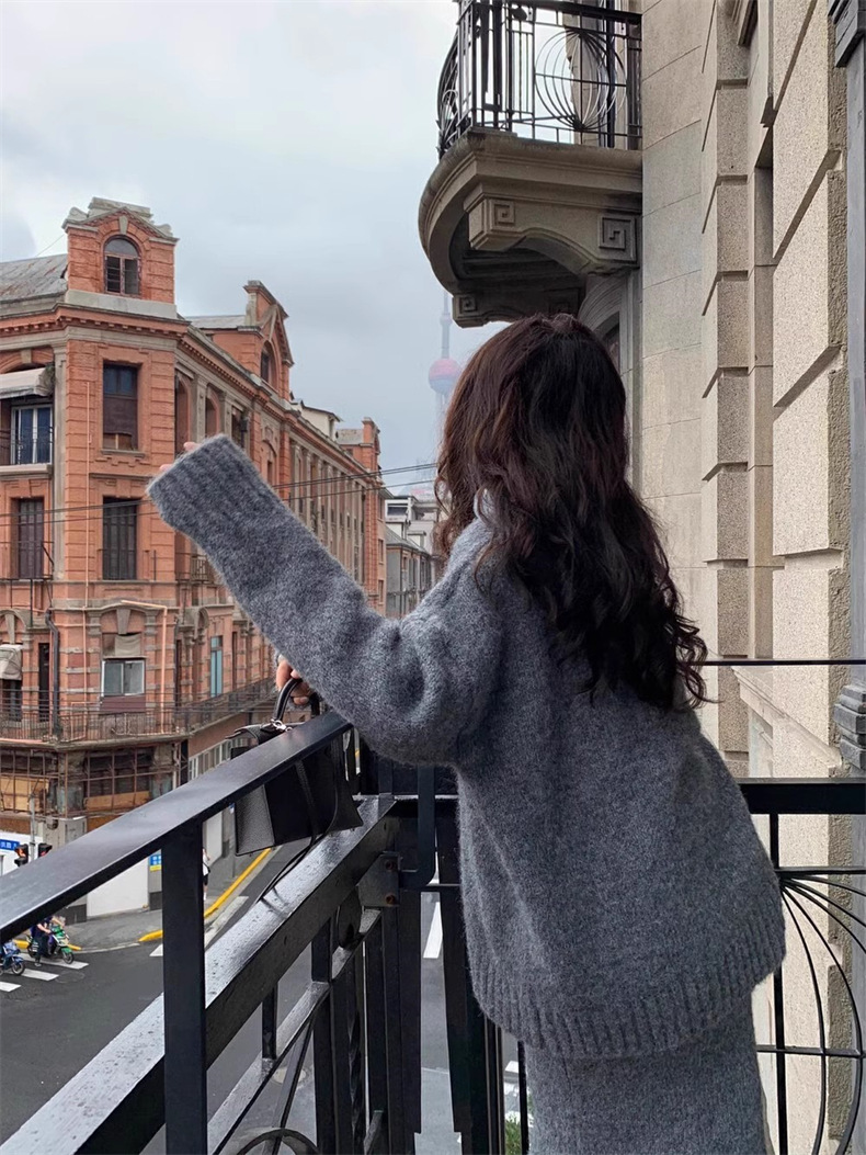 한국 스타일 게으른 스타일 스웨터 원피스 여성의 가을과 겨울 V 넥 니트 탑 피쉬 스커트 패션 투피스 세트스토어 가기
