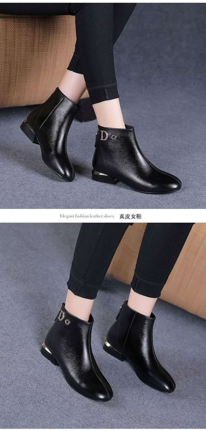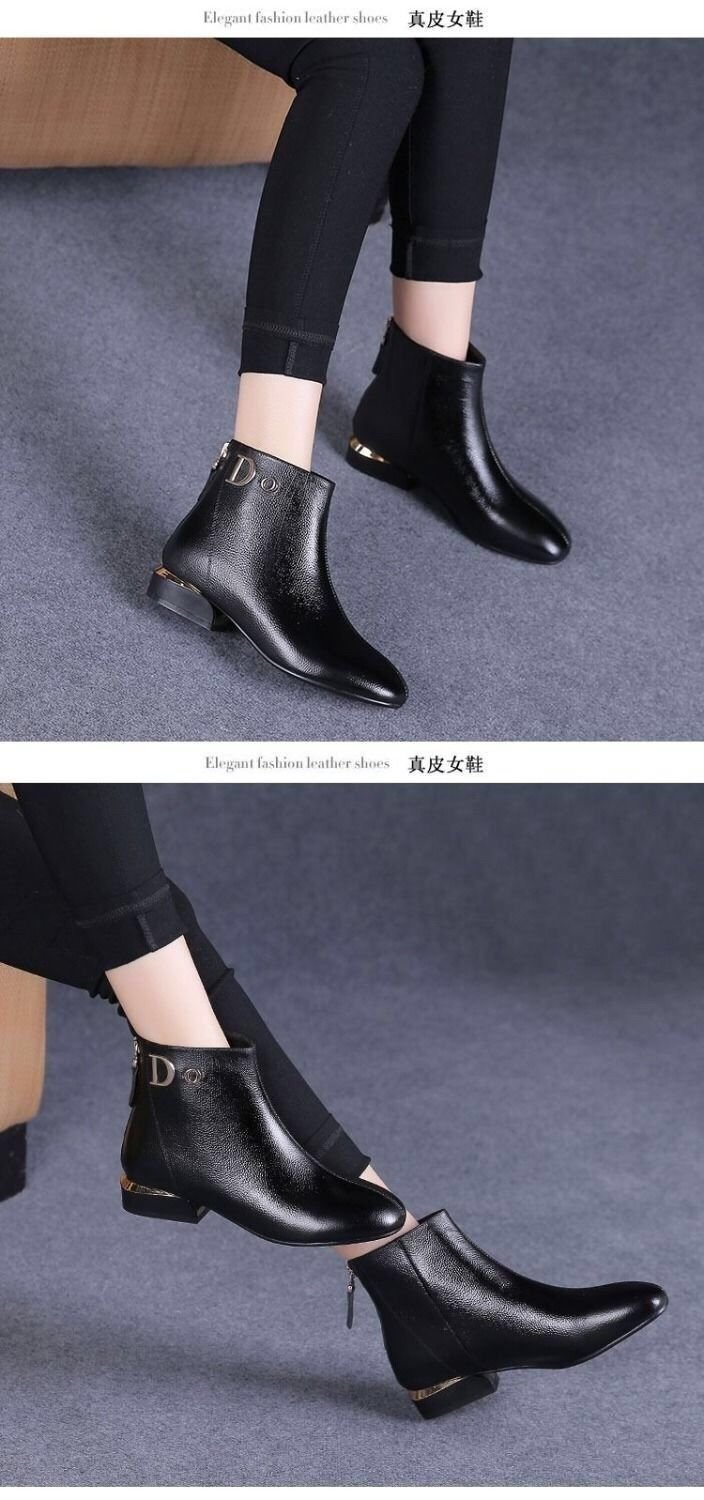 여성용 가죽 신발 2025년 신상 봄 가을 플랫 단화 도매 짧은 부츠 라운드 토 소프트 솔 여성 신발 가을 겨울 소프트 가죽 마틴 부츠스토어 가기