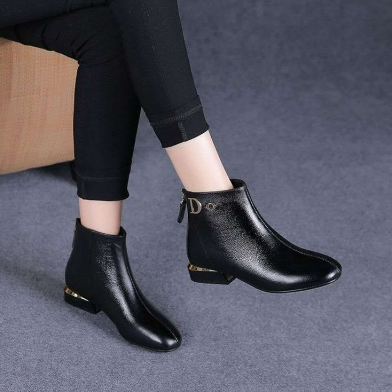 여성용 가죽 신발 2025년 신상 봄 가을 플랫 단화 도매 짧은 부츠 라운드 토 소프트 솔 여성 신발 가을 겨울 소프트 가죽 마틴 부츠