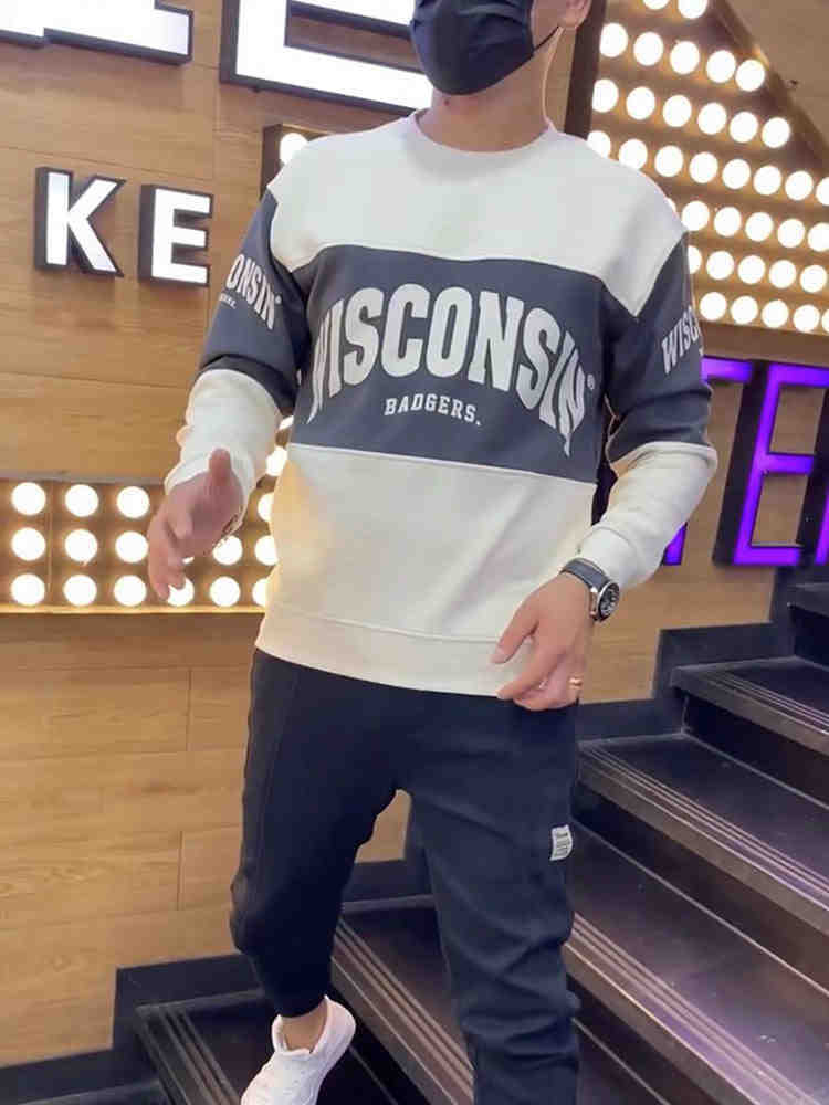 미국 복고풍 스티칭 깡패 스웨트 셔츠 남성 프라이드 스트리트 2024 봄 새로운 패션 슬림 핏 크루 넥 옷스토어 가기