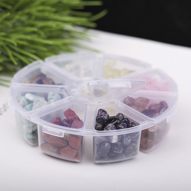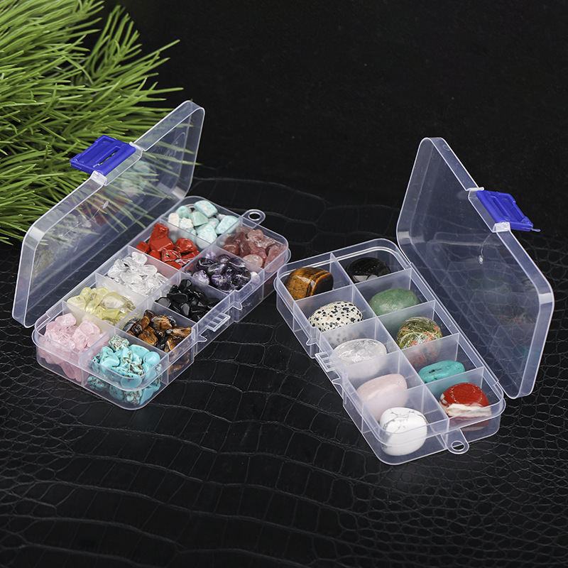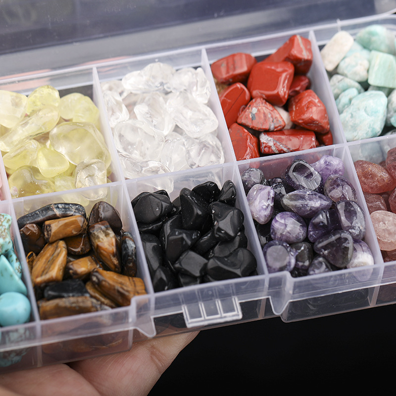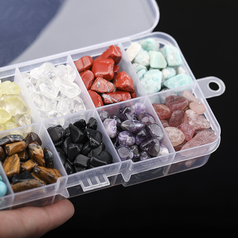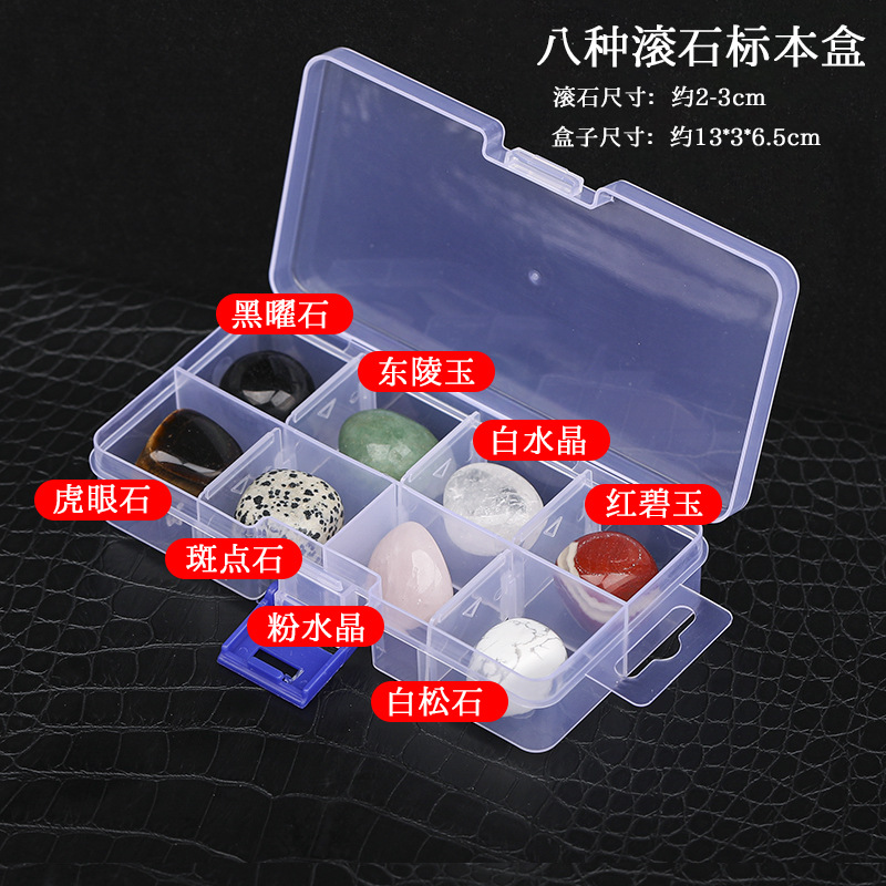 • 8가지 종류의 자갈이 플라스틱 상자에 들어있습니다.