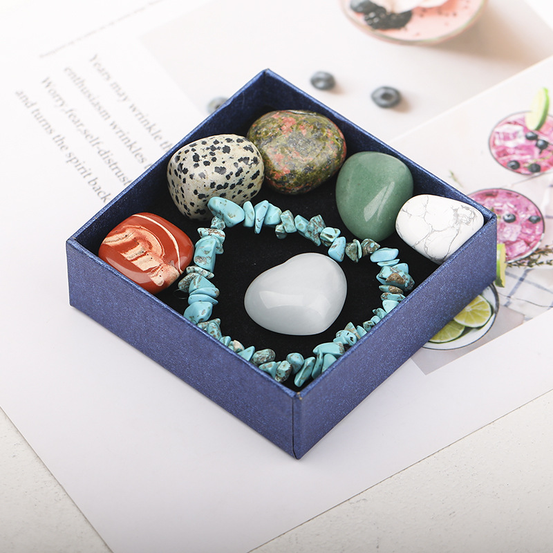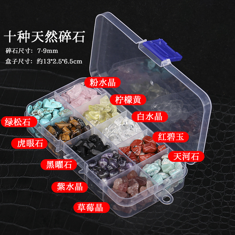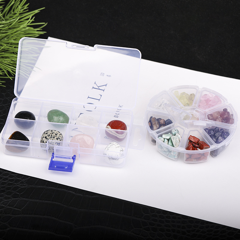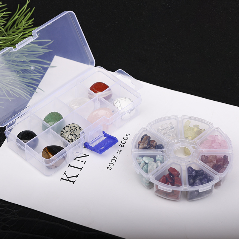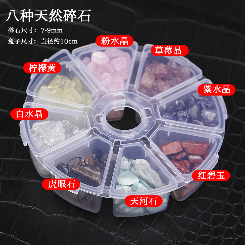 • 8가지 종류의 자갈이 플라스틱 상자에 들어있습니다.