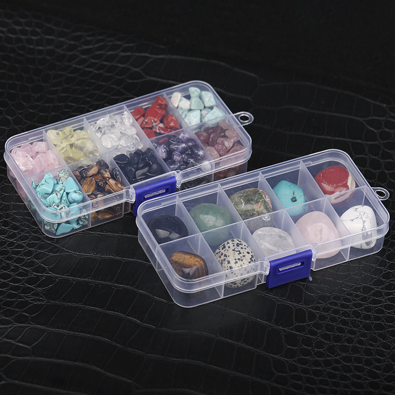 • 10개의 자갈이 플라스틱 상자에 들어있습니다.