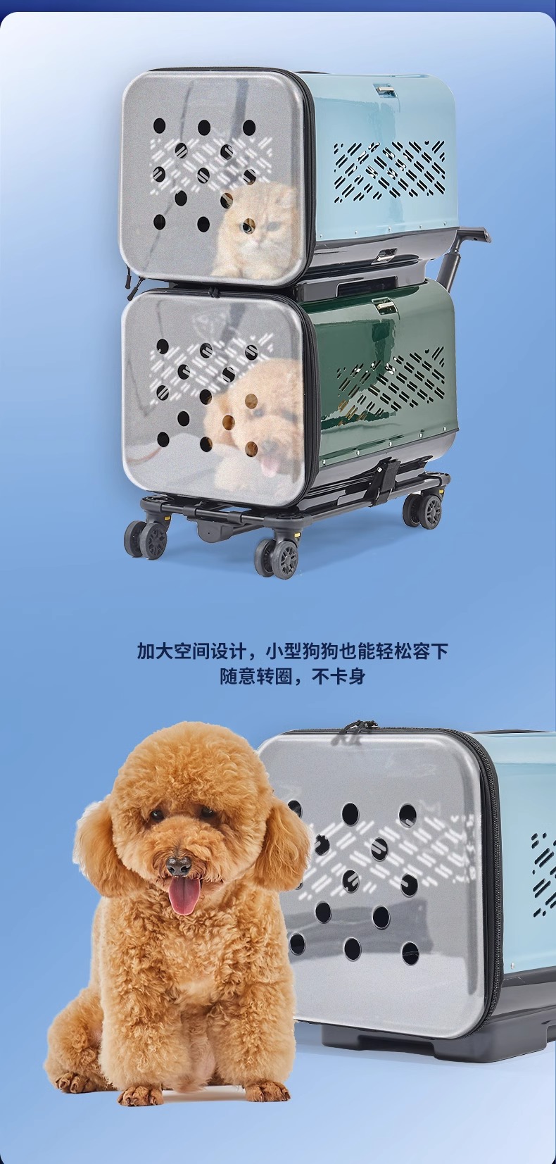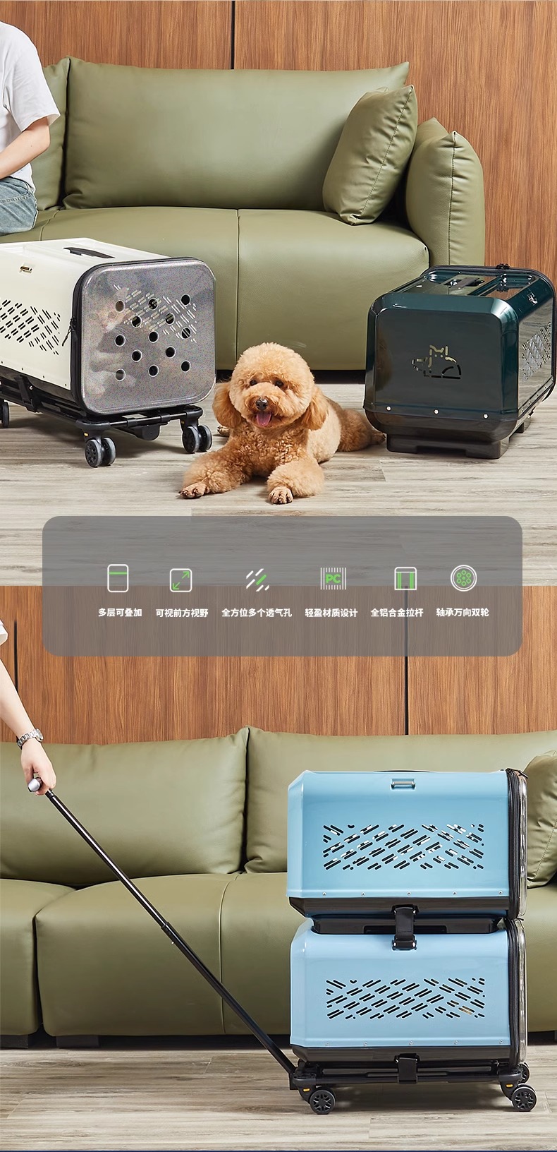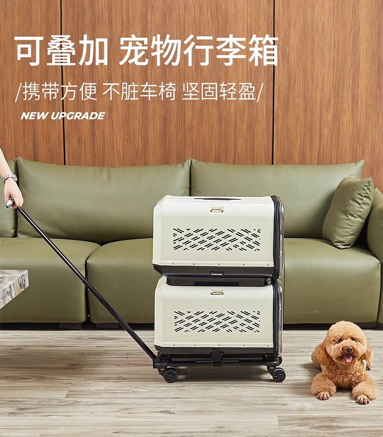 • 진한 녹색 이중층 애완동물 트롤리 케이스(애완동물 상자*2+트롤리)