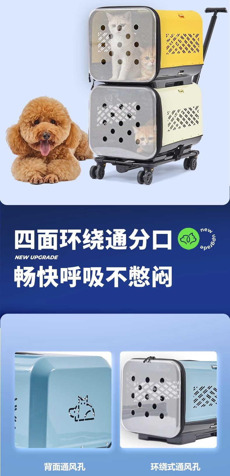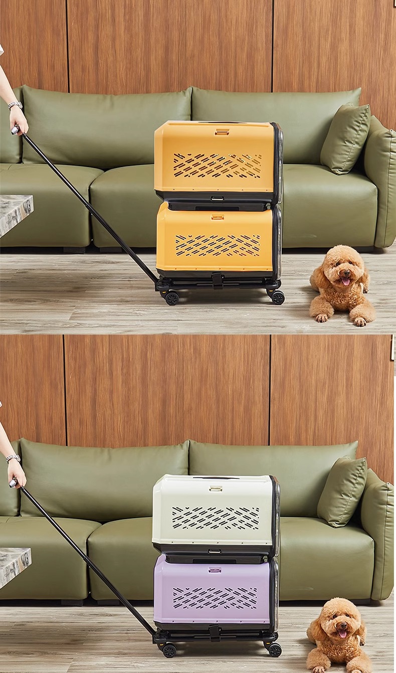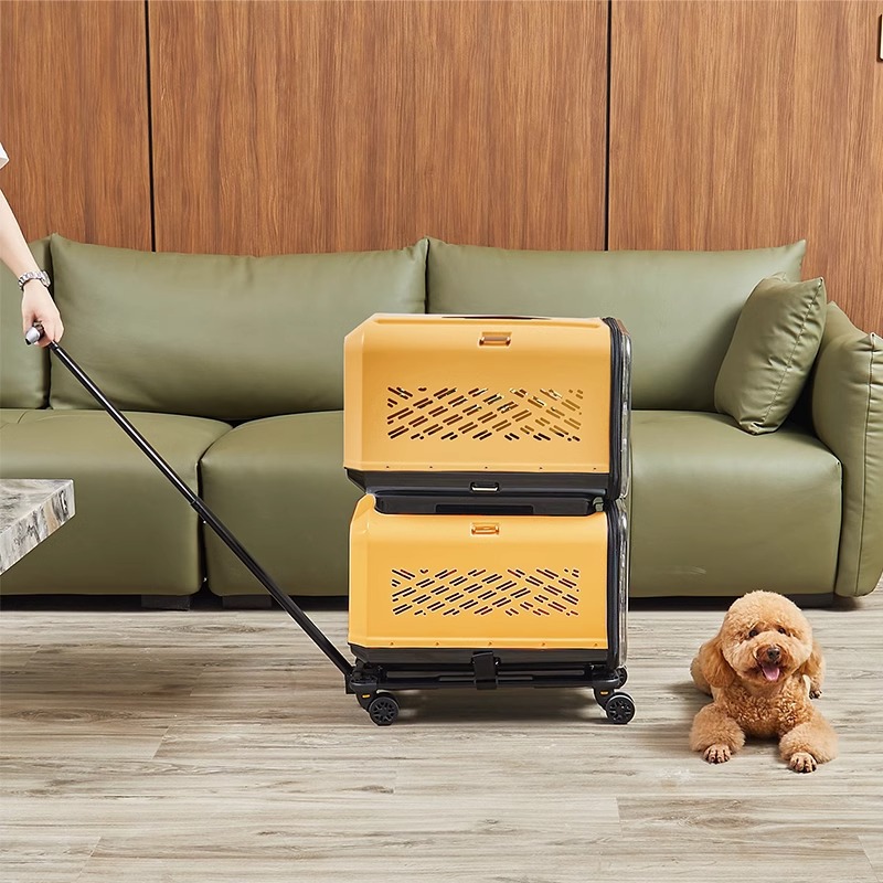 • 노란색 이중층 애완동물 트롤리 케이스(애완동물 상자*2+트롤리)