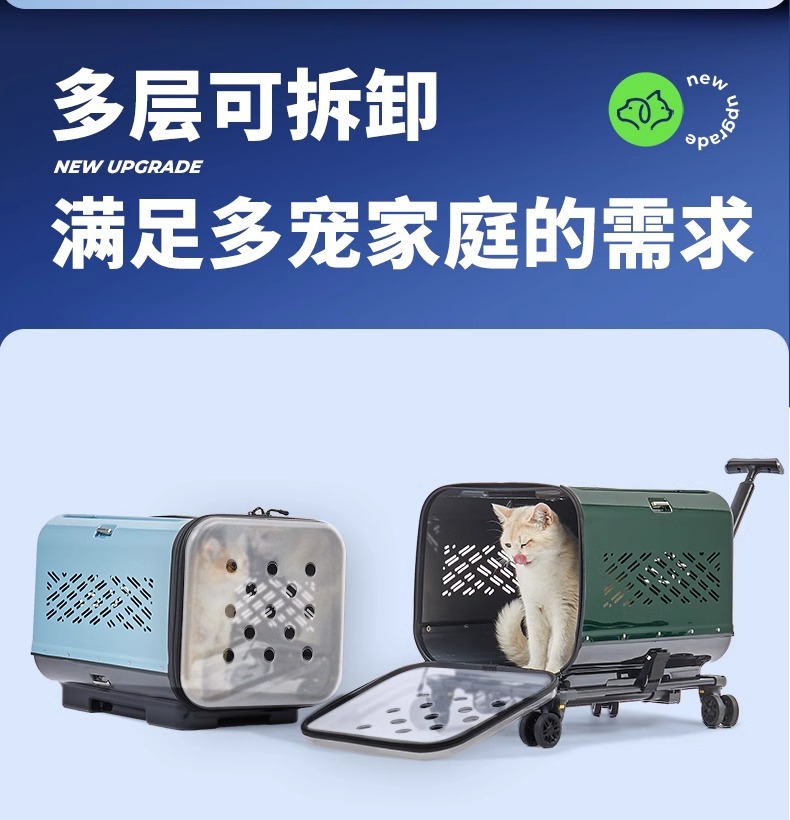 애완 동물 여행 다기능 트롤리 케이스 고양이 휴대용 통기성 수하물 대용량 더블 레이어 카트 휴대용 고양이 가방