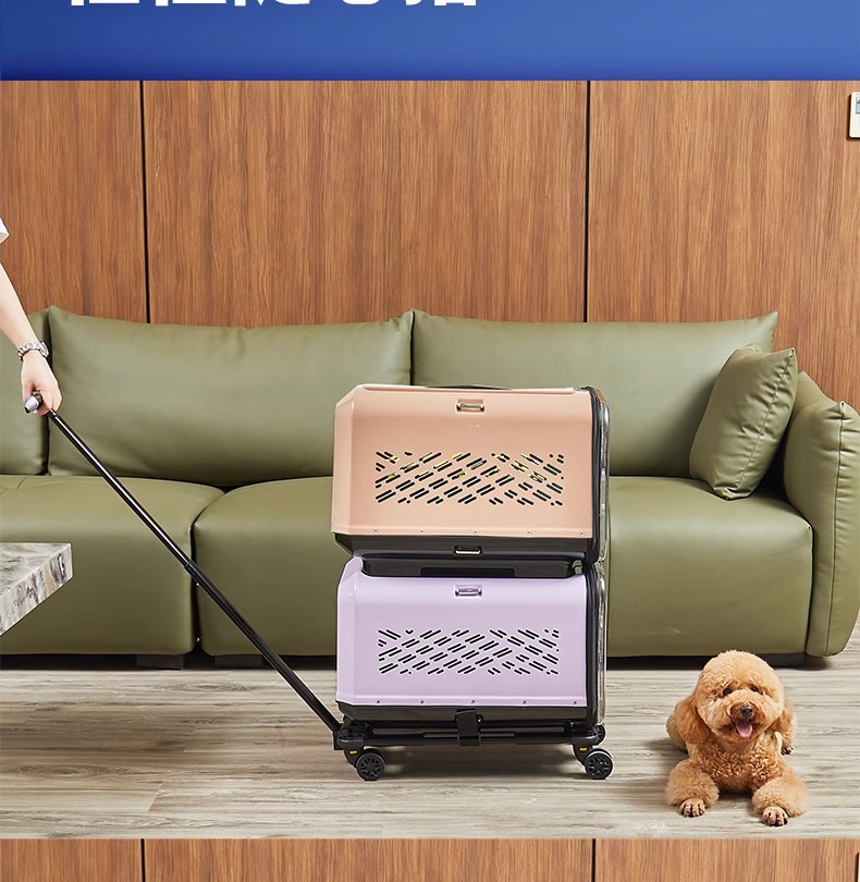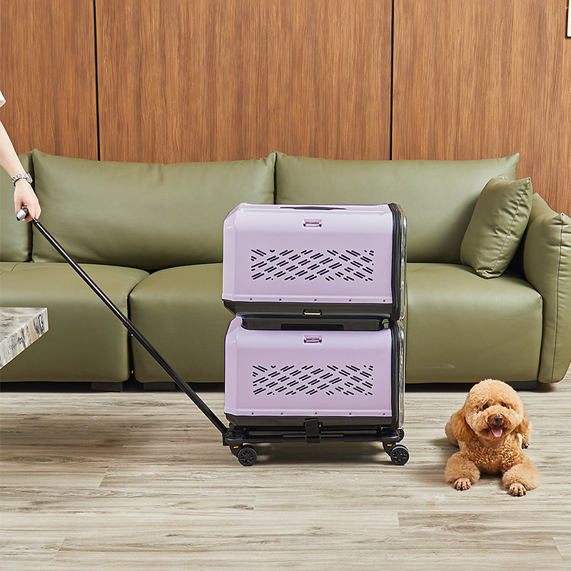 • 보라색 이중층 애완동물 트롤리 케이스(애완동물 상자*2+트롤리)