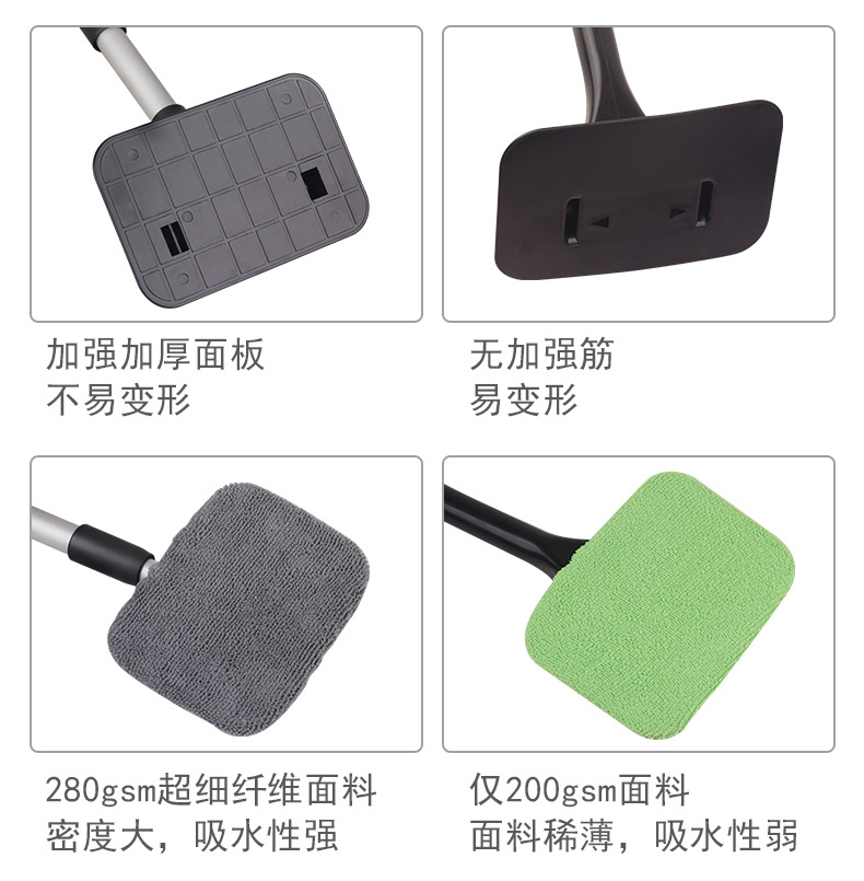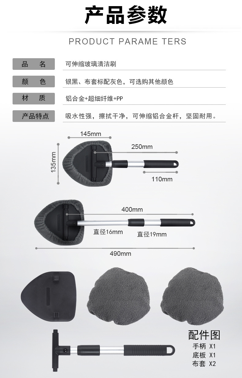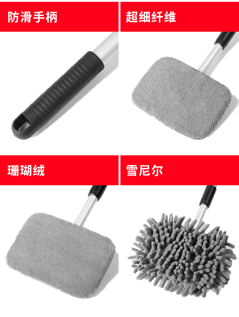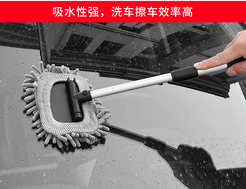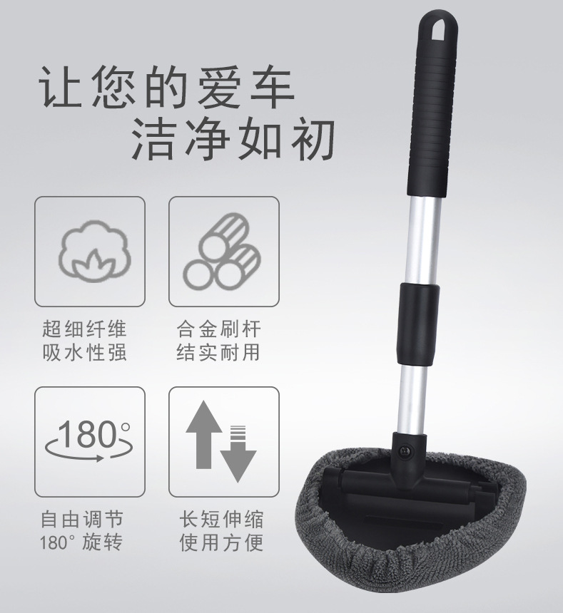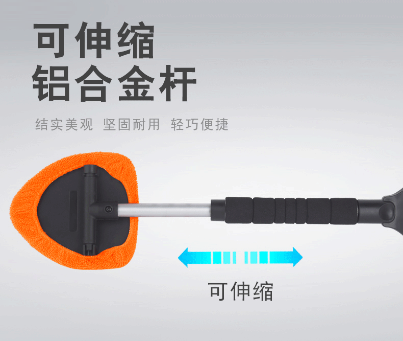 1、可伸缩铝合金杆,清洁范围大,可轻松擦洗车顶;