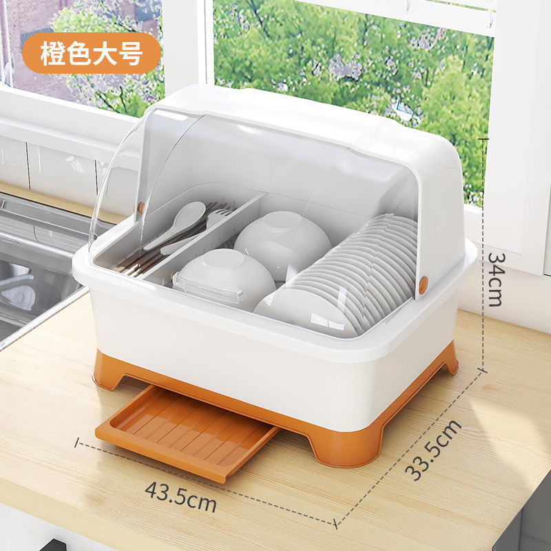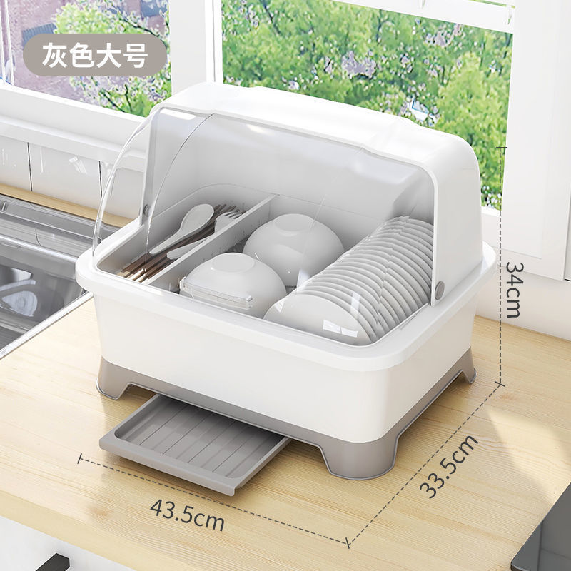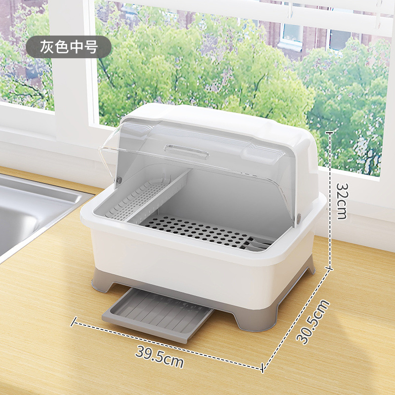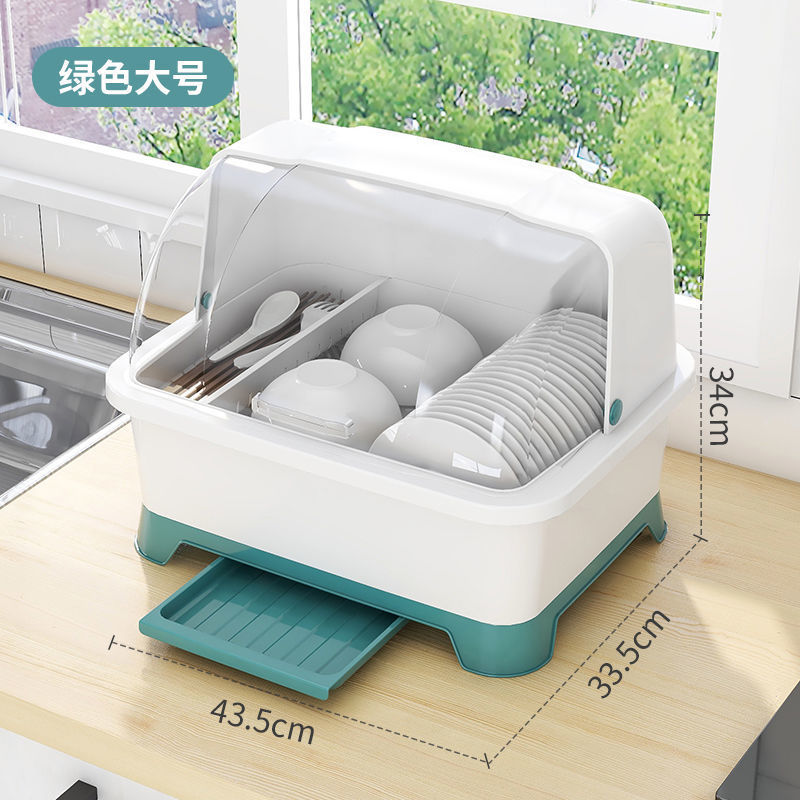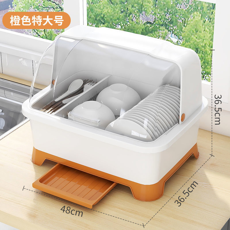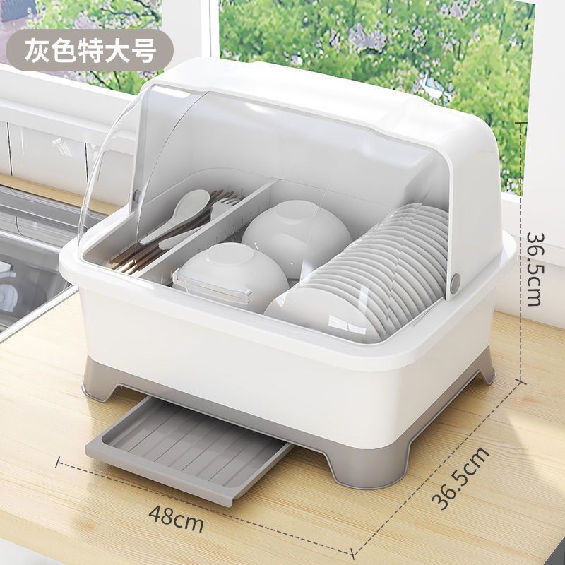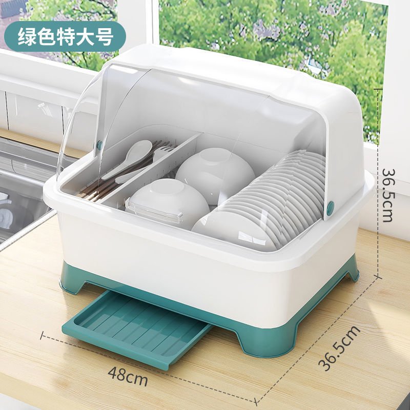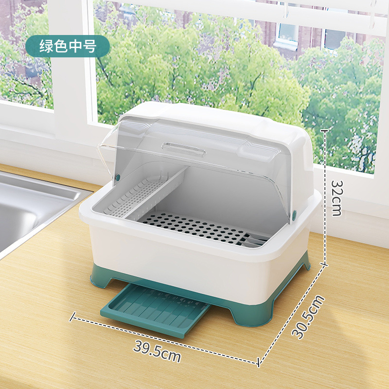 그릇 및 젓가락 보관 용 배수 보관 랙이있는 그릇 상자 용 뚜껑이있는 접시 보관 랙 가정용 주방 조리대 찬장
