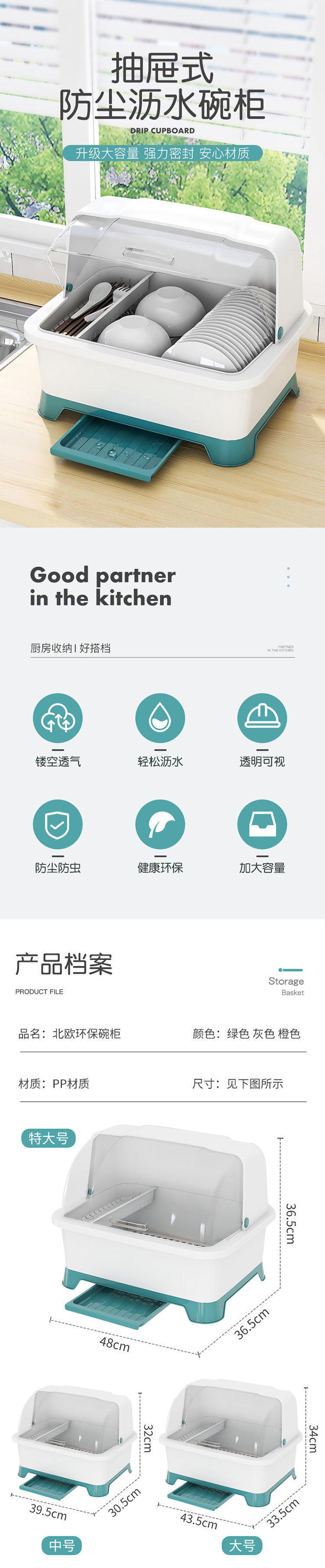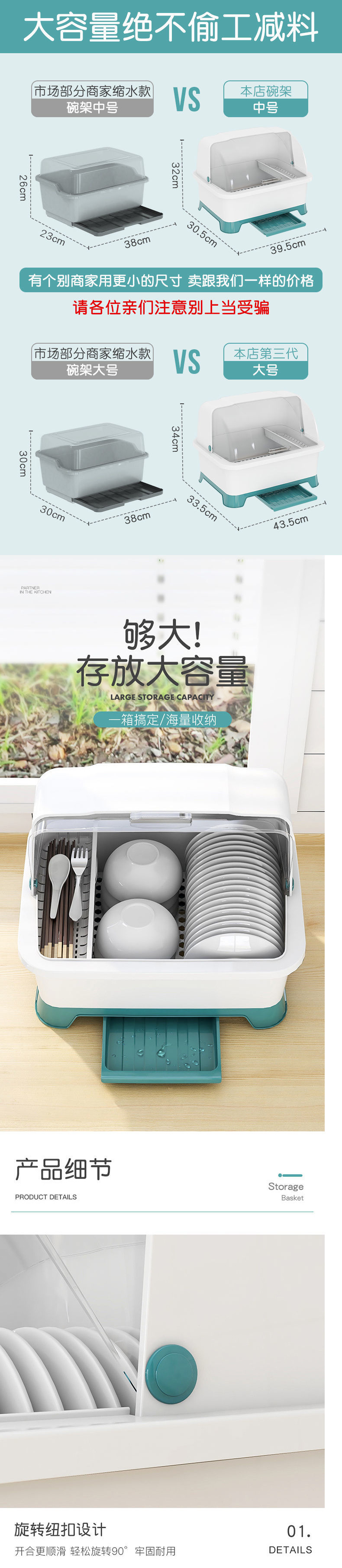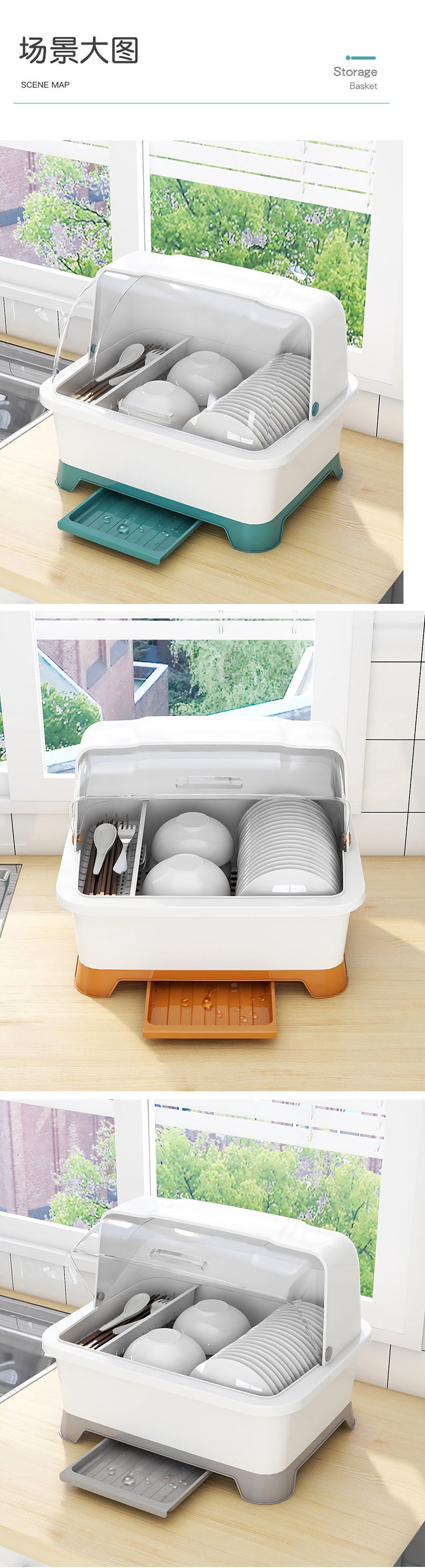 그릇 및 젓가락 보관 용 배수 보관 랙이있는 그릇 상자 용 뚜껑이있는 접시 보관 랙 가정용 주방 조리대 찬장스토어 가기