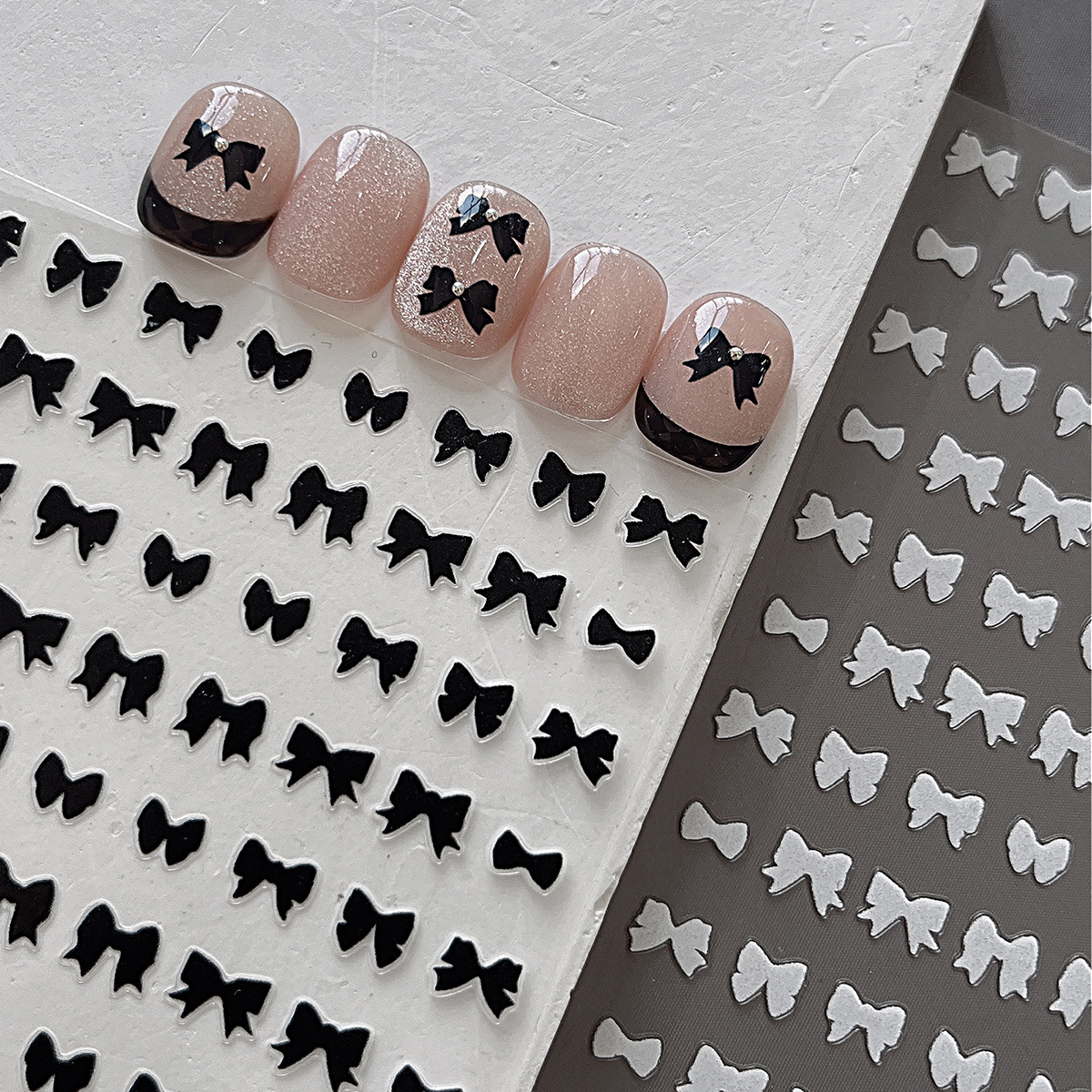 YITU 개미 그림 단색 양각 활 네일 아트 스티커 블랙 화이트 타이 네일 장식 작은 패치 YT499스토어 가기