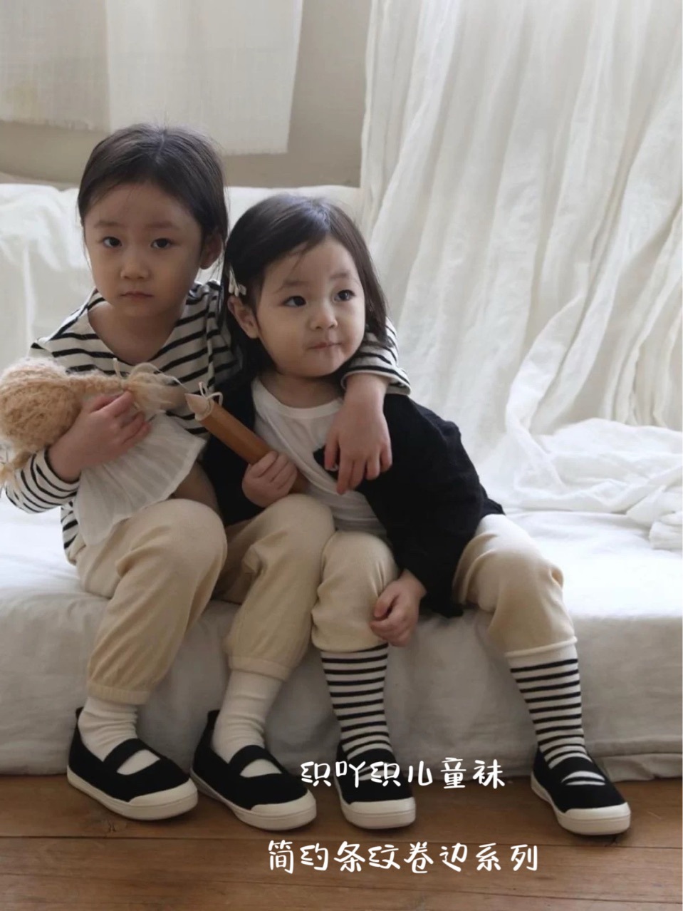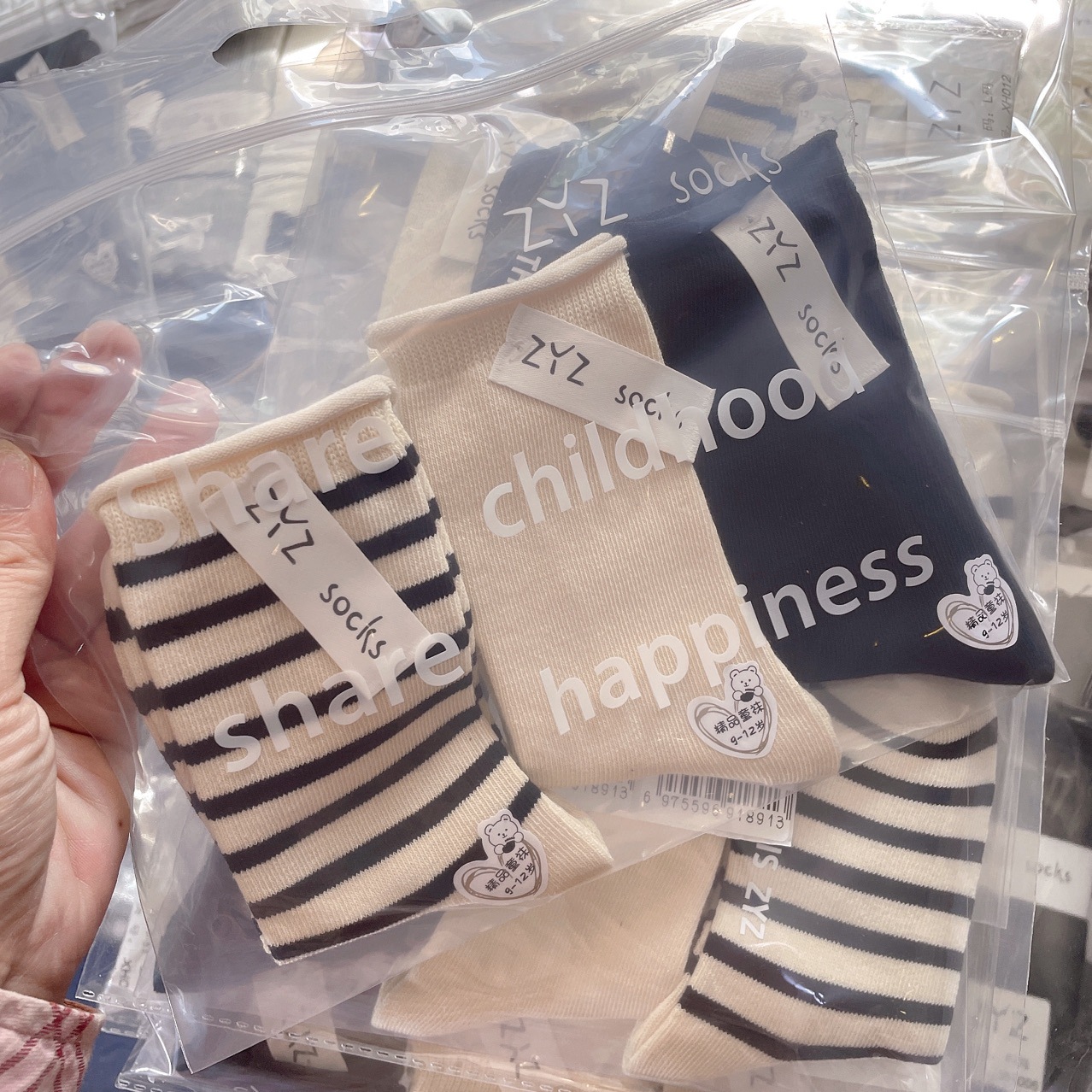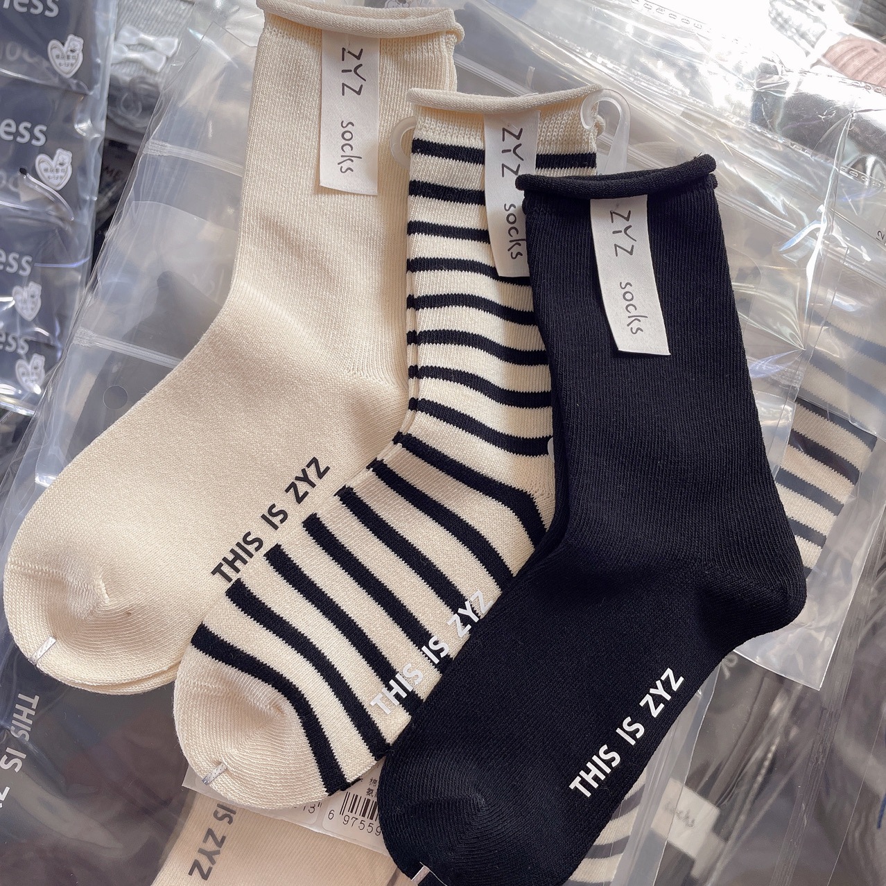 니트 부착 된 어린이 양말 원래 디자인 미니멀리스트 컬 스트라이프 유행 대학 스타일 중간 길이 양말 코튼 양말 유행 양말 유행 양말스토어 가기