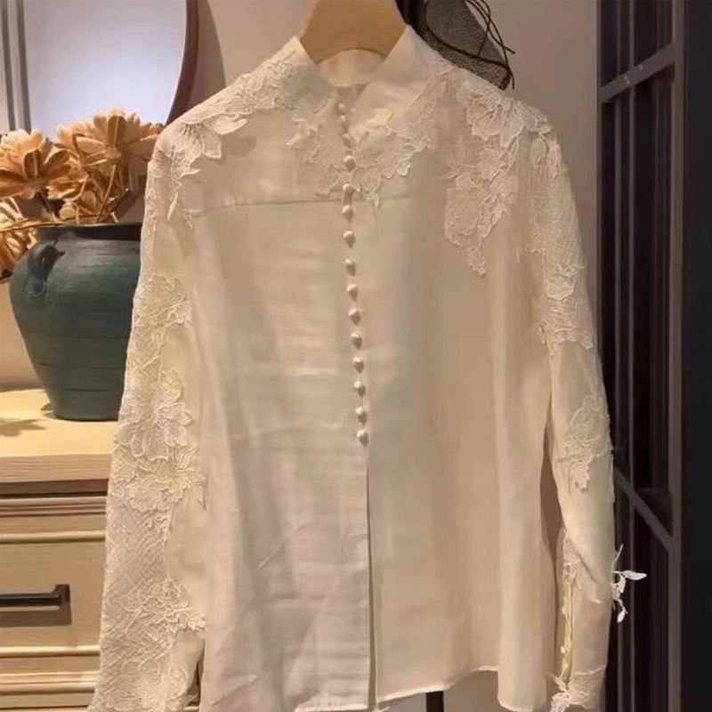 새로운 중국 스타일 2024 가을 새로운 새로운 중국 스타일 빛 성숙한 국가 스타일 틈새 디자인 센스 세련된 흰색 셔츠 여성의 새로운스토어 가기