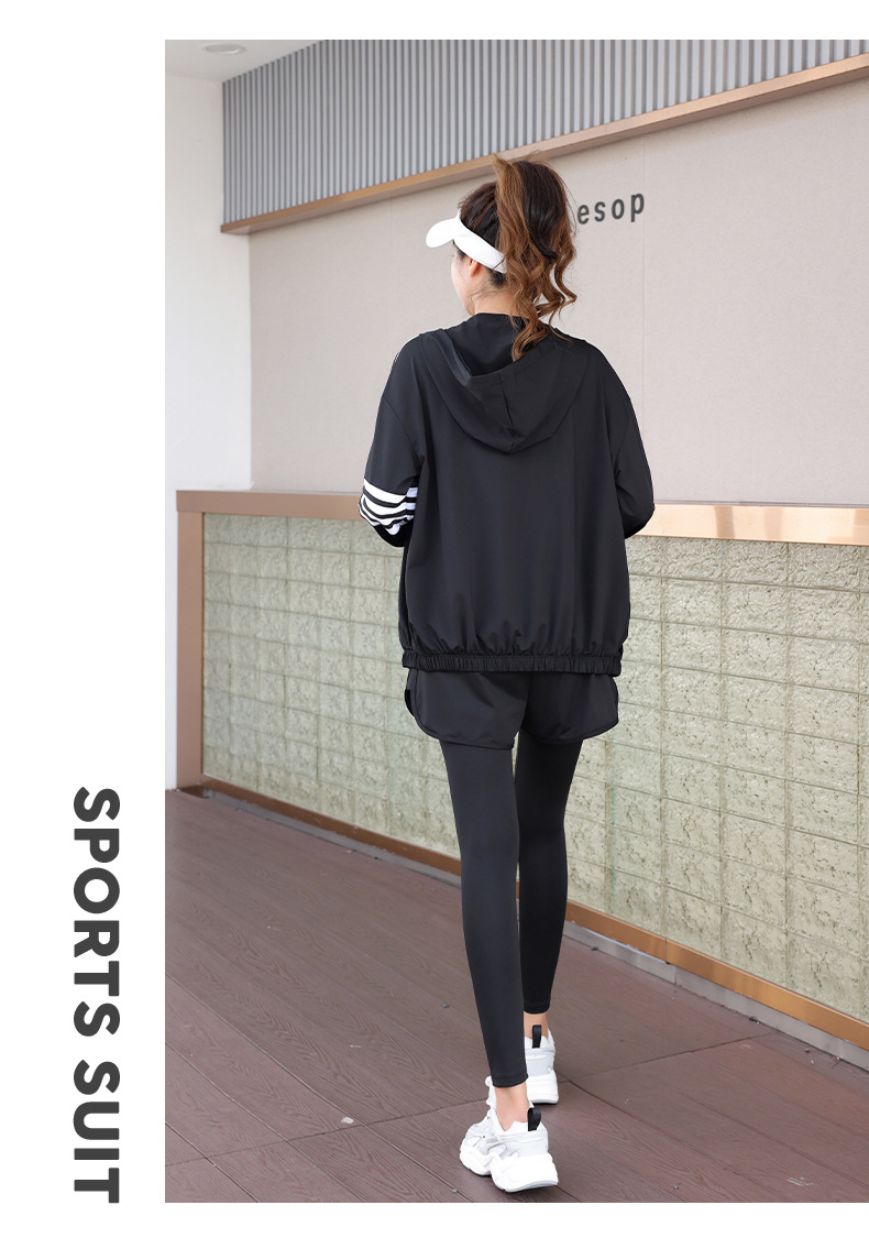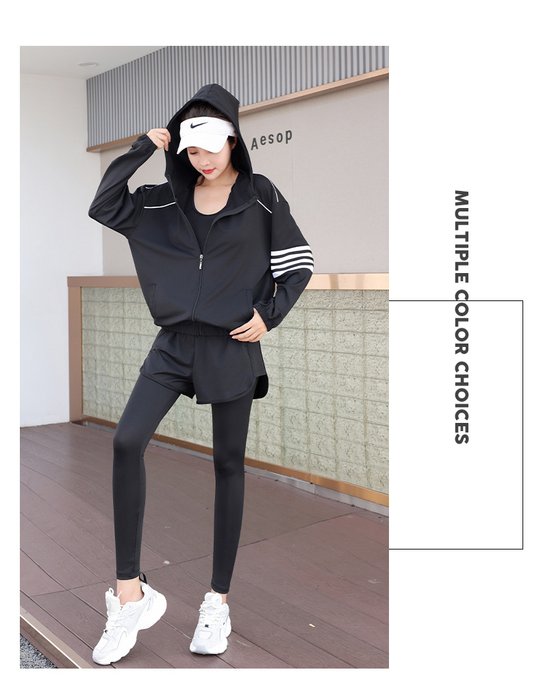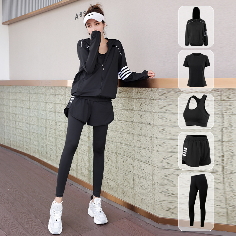 가을 새로운 요가 의류 여성 세트 느슨한 슬리밍 컬러 매칭 바지 4 피스 달리기 스포츠 피트니스 세트 여성스토어 가기