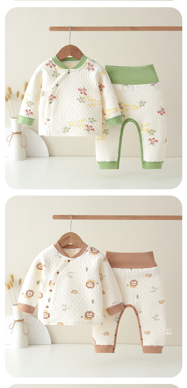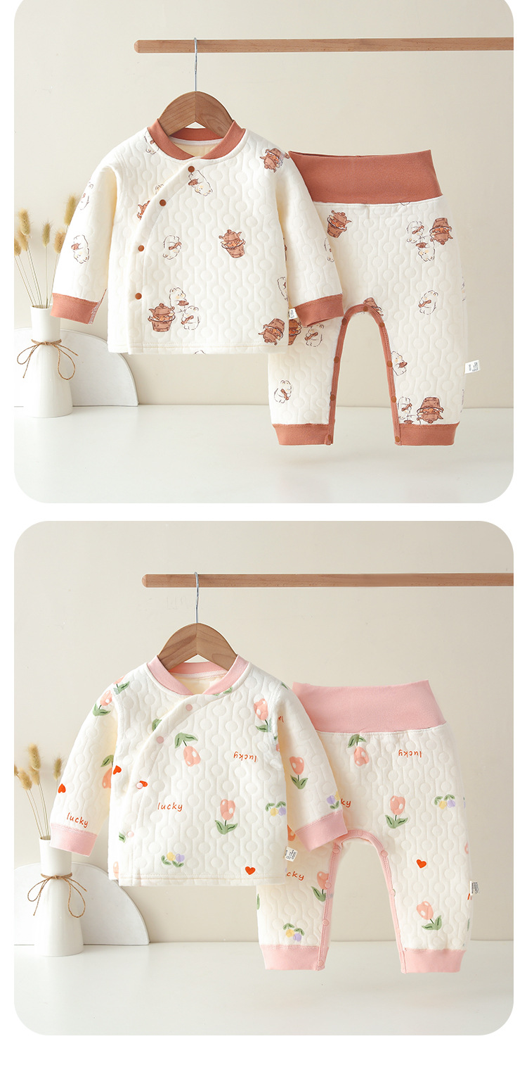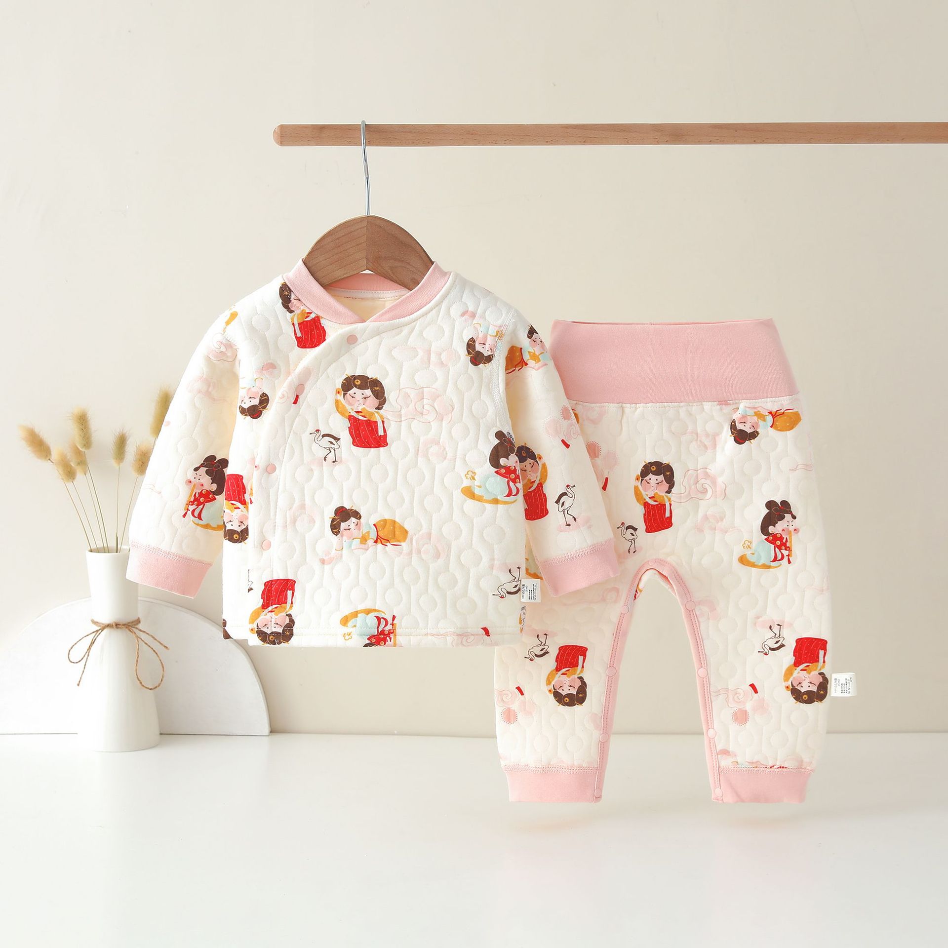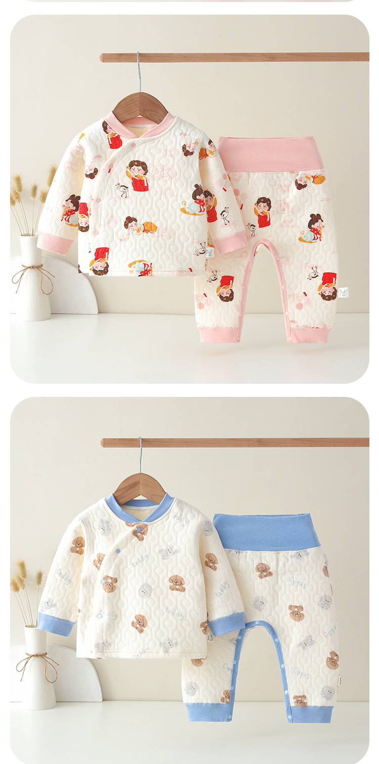 아기 따뜻한 옷 세트 높은 허리 배꼽 보호 면 아기 면화 가을 옷과 바지 따뜻한 신생아 분할 가을과 겨울