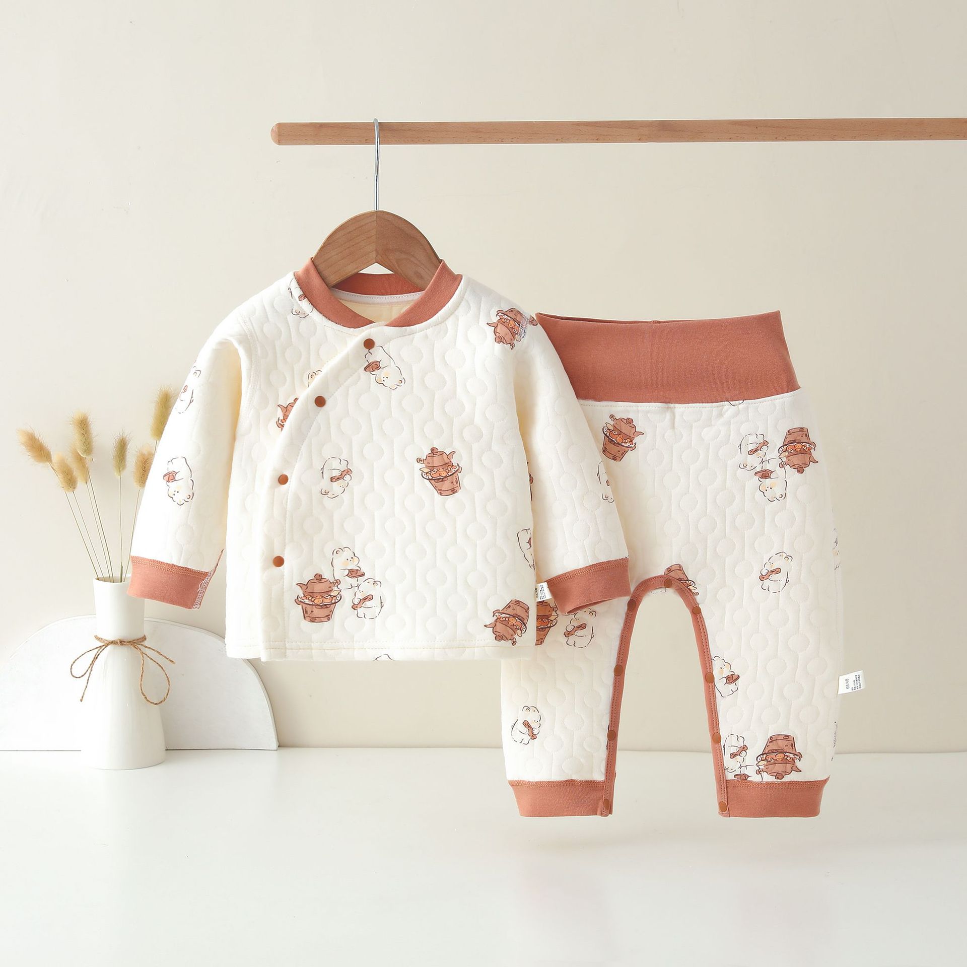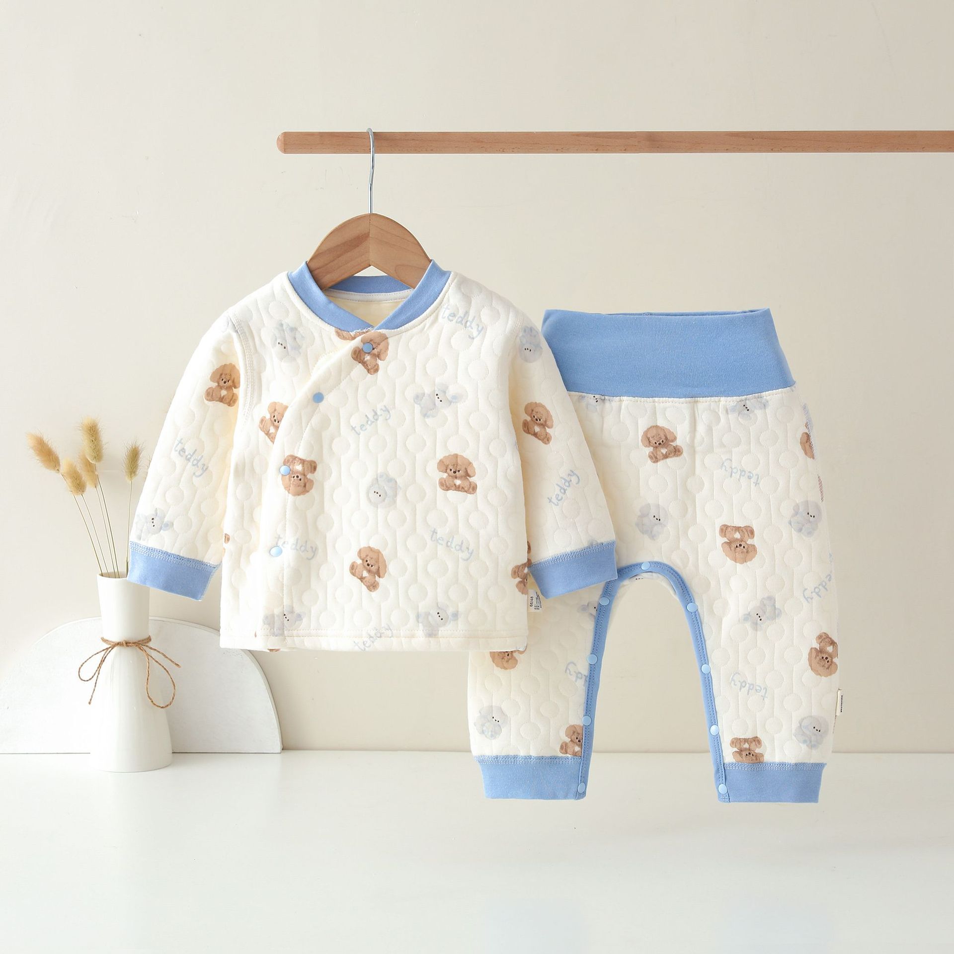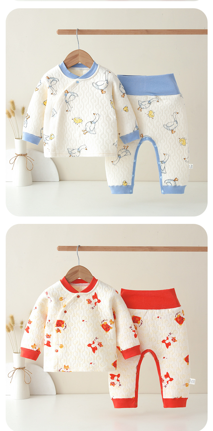 아기 따뜻한 옷 세트 높은 허리 배꼽 보호 면 아기 면화 가을 옷과 바지 따뜻한 신생아 분할 가을과 겨울