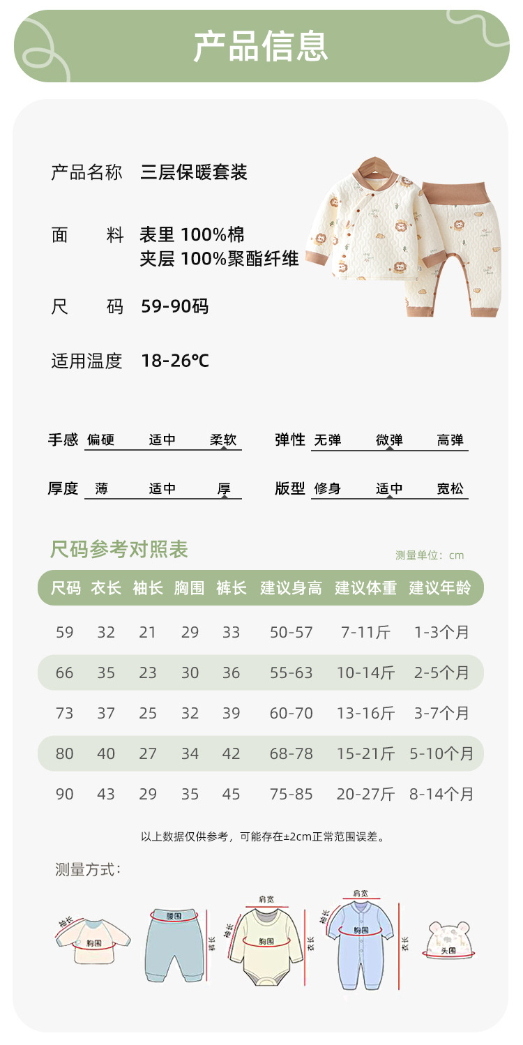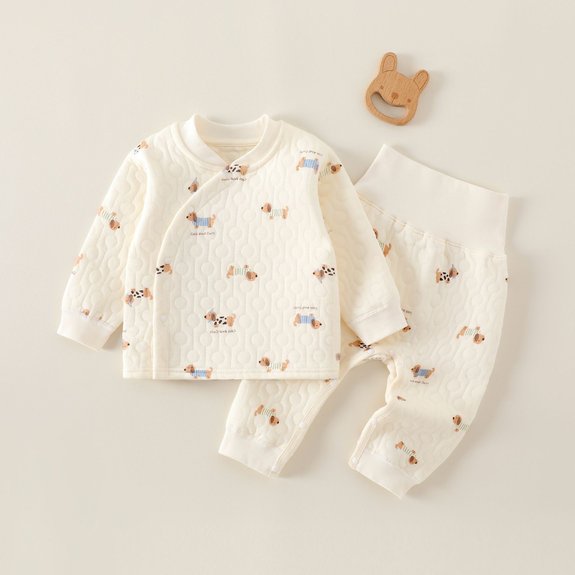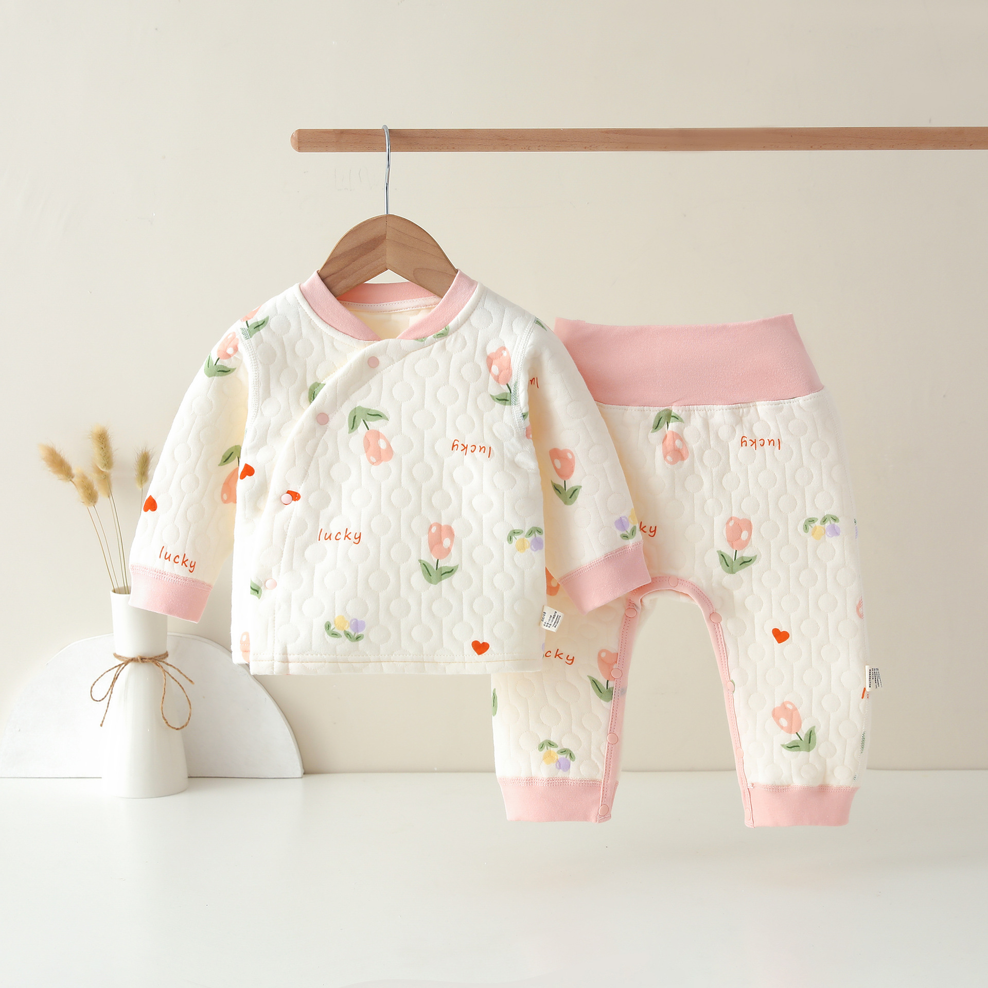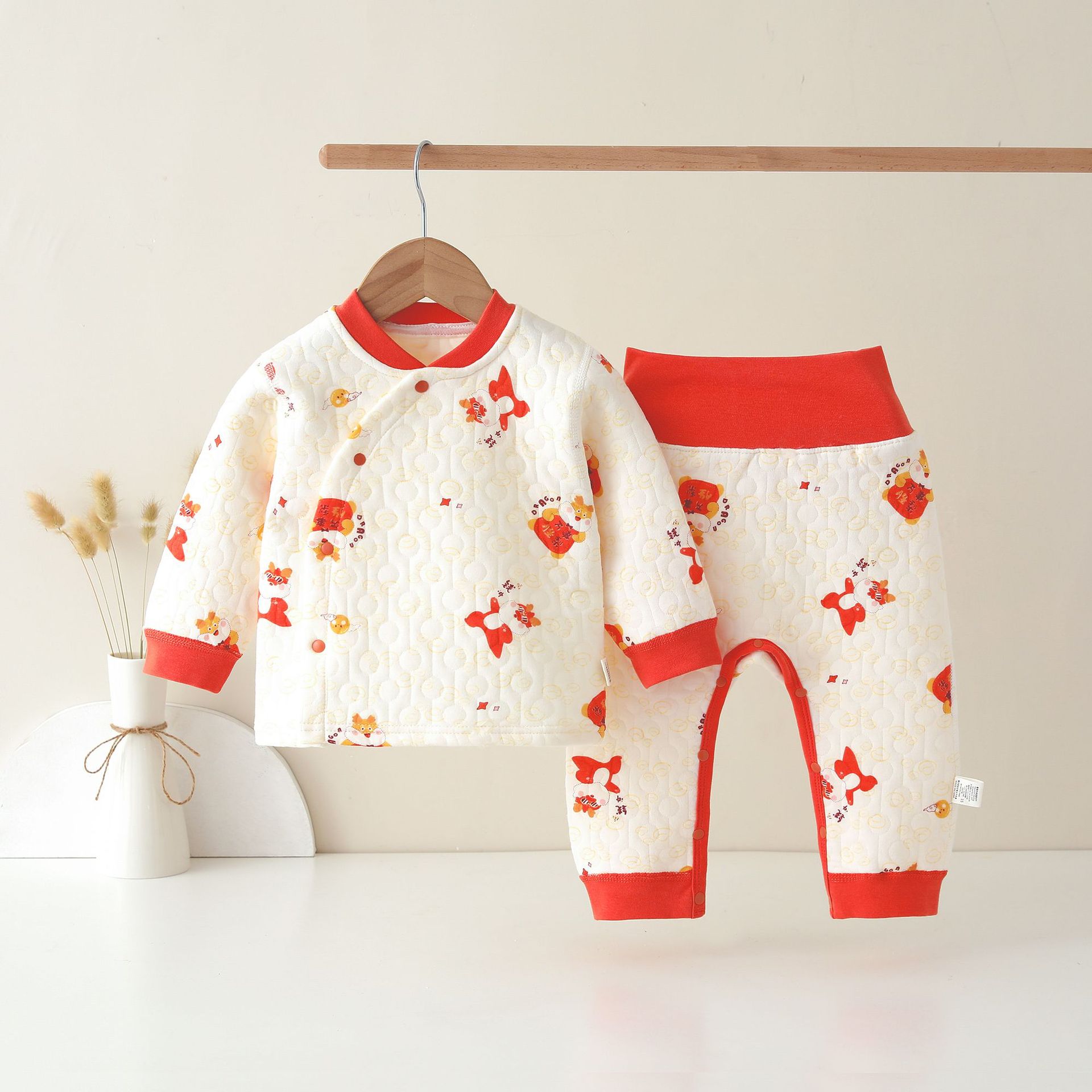 아기 따뜻한 옷 세트 높은 허리 배꼽 보호 면 아기 면화 가을 옷과 바지 따뜻한 신생아 분할 가을과 겨울