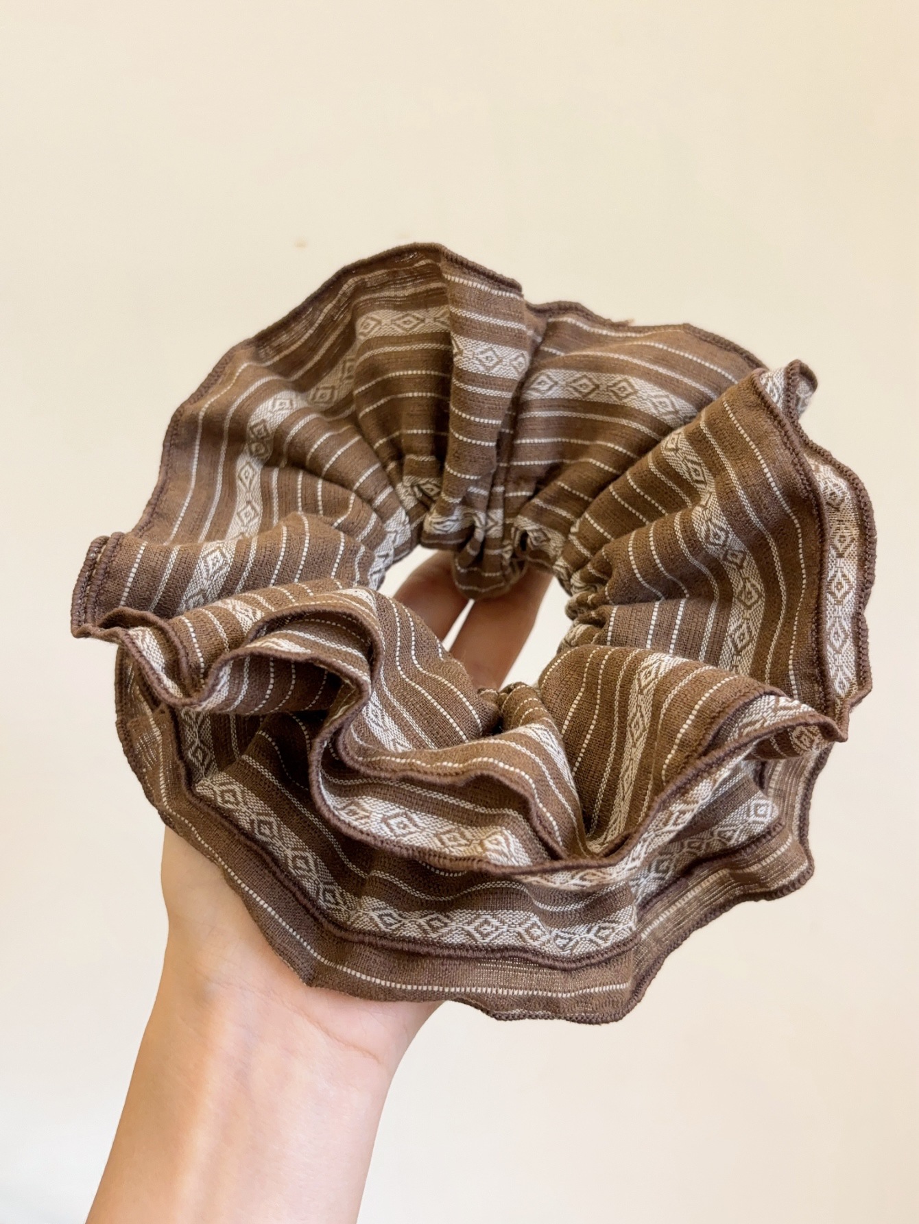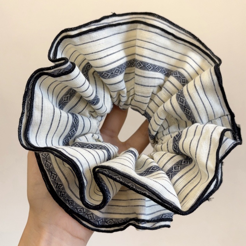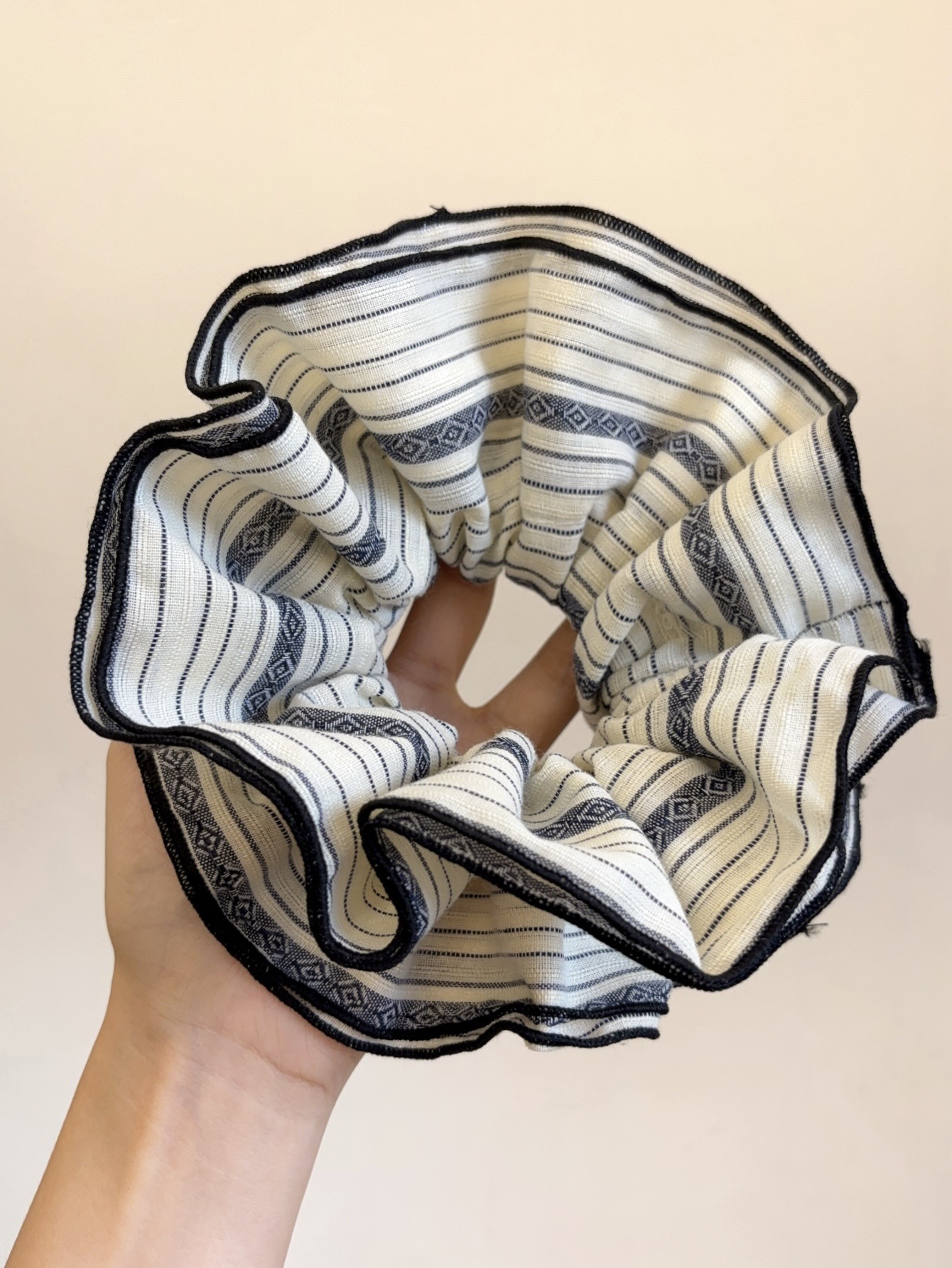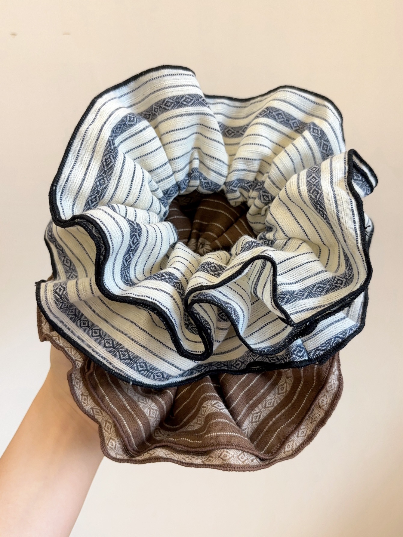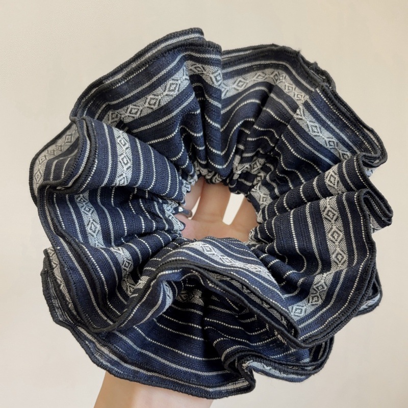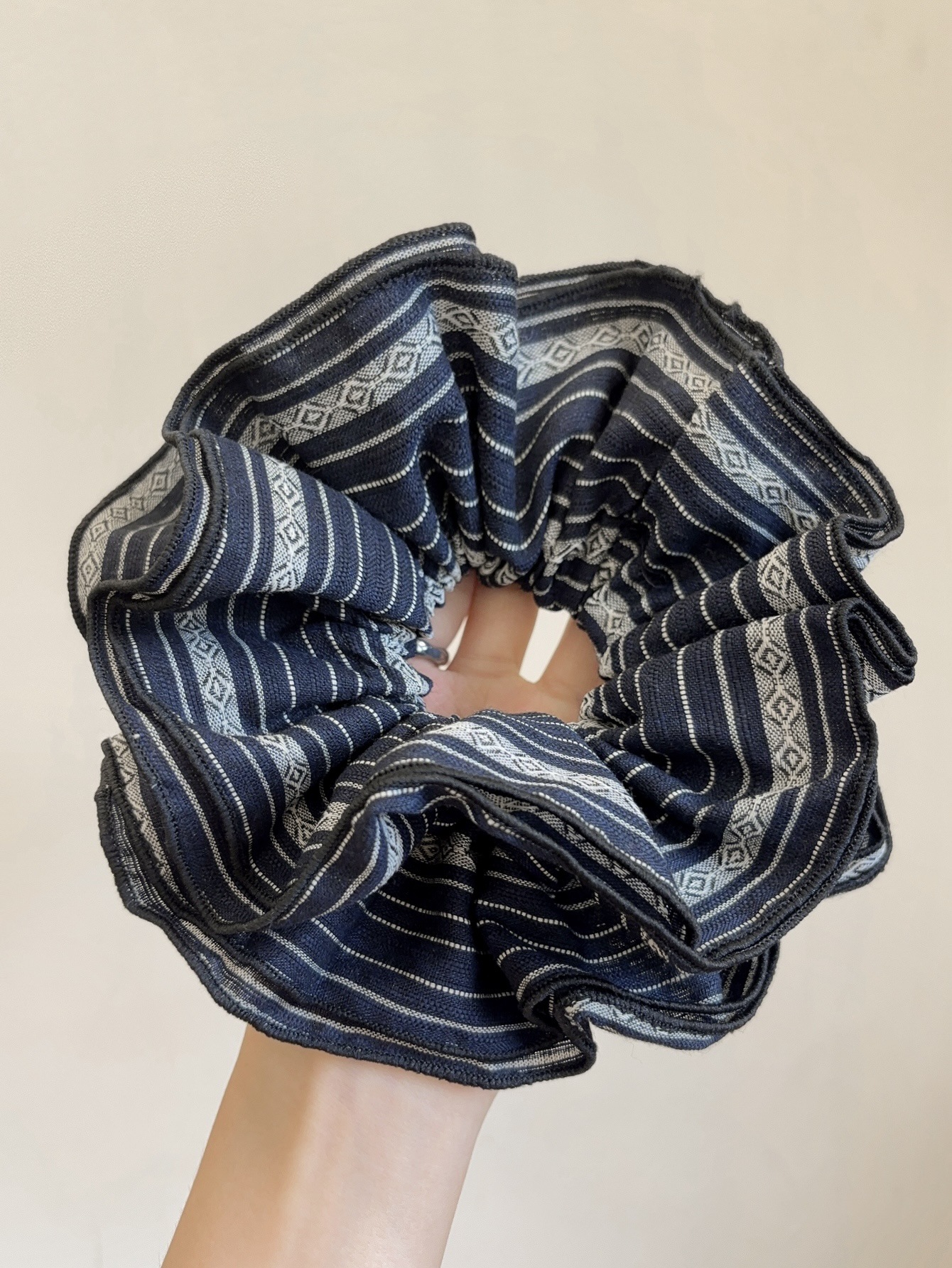 • 파란색과 검정색 패턴의 4겹 머리끈