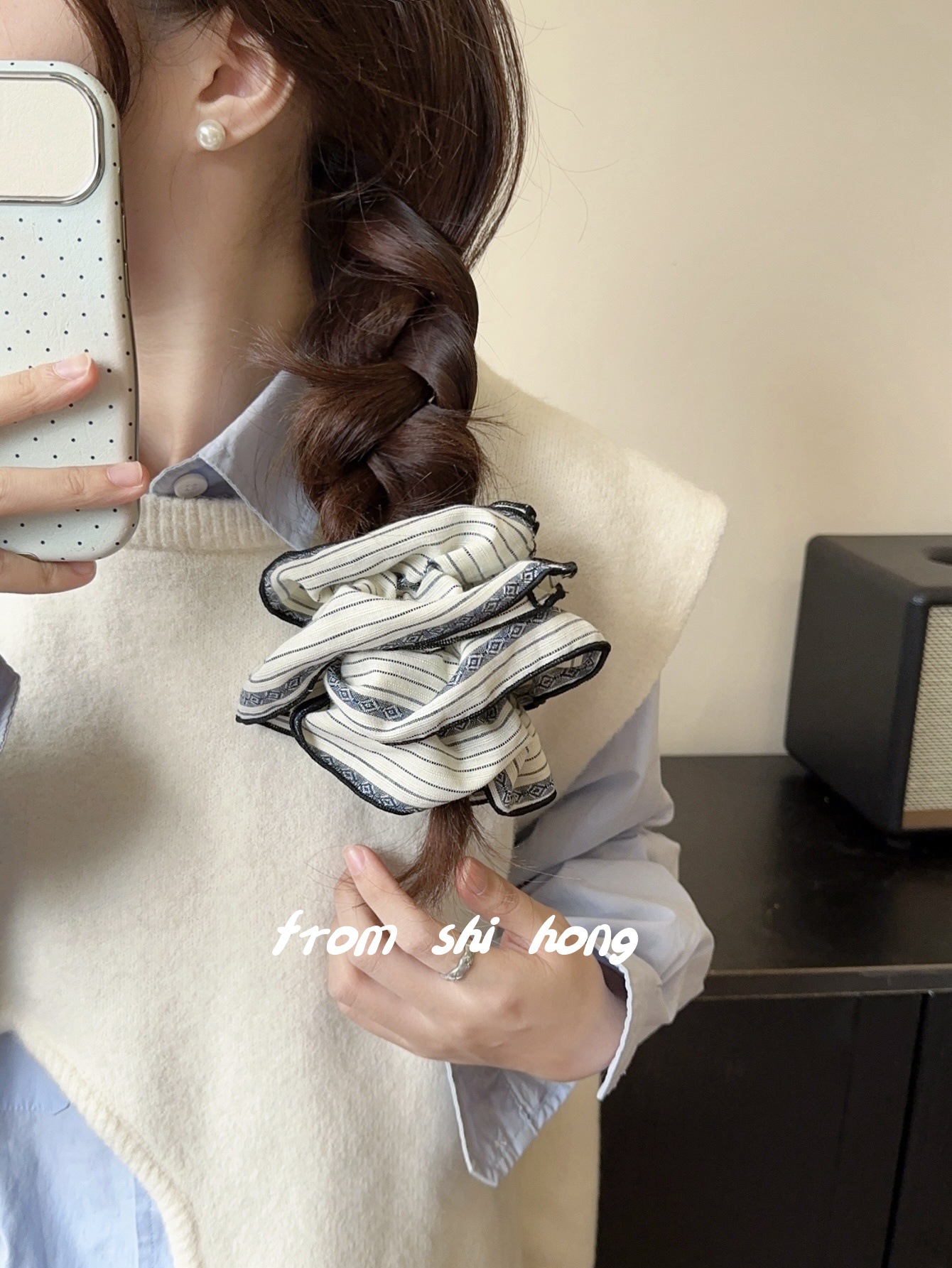 프랑스 레트로 ~ 다크 브라운 줄무늬 대장 헤어 링 여성 하이 엔드 게으른 스타일 페이온 헤드 라인 헤어 액세서리