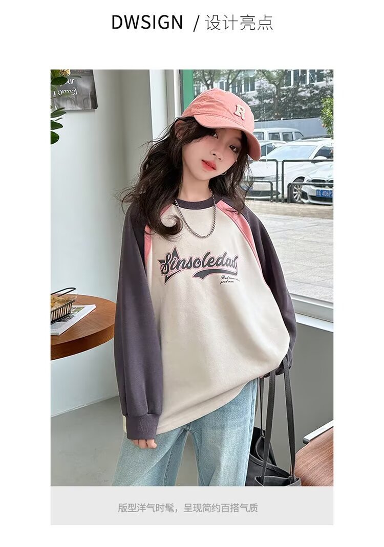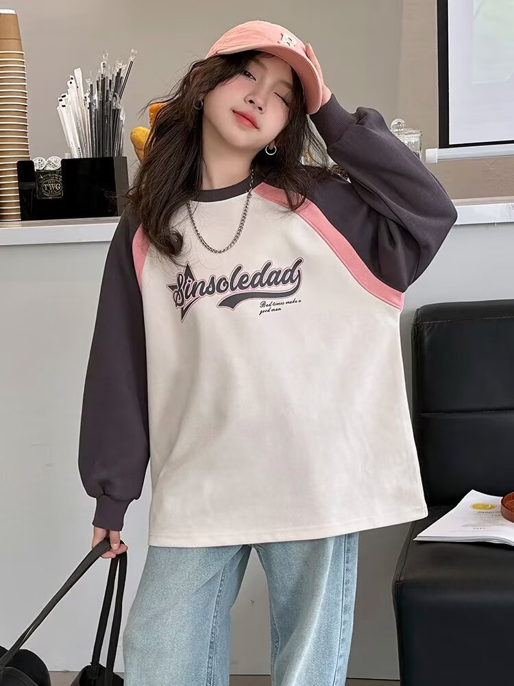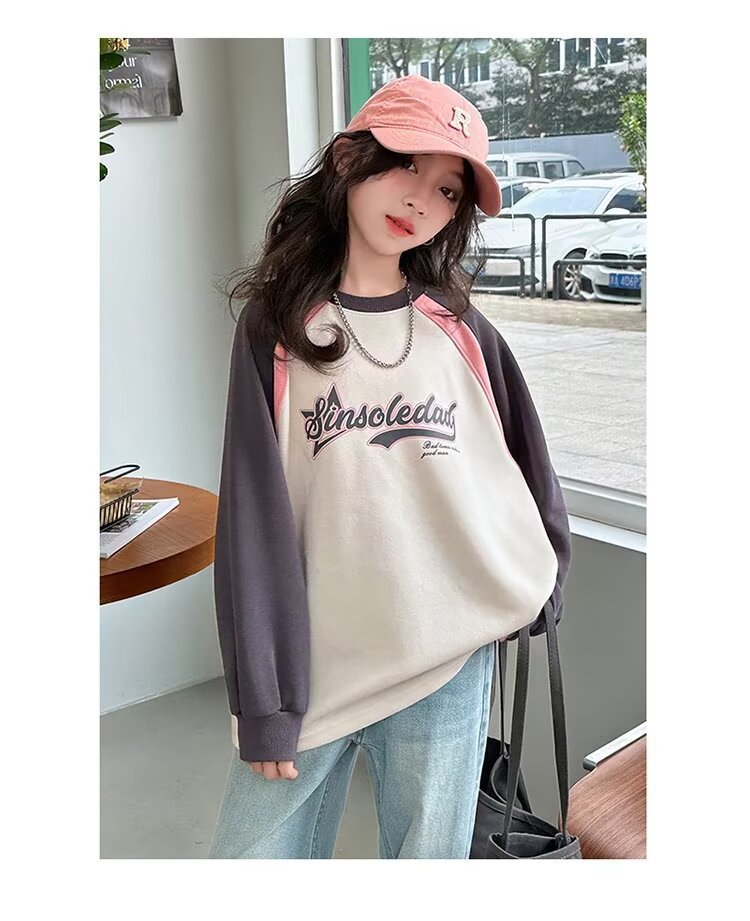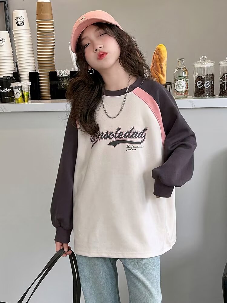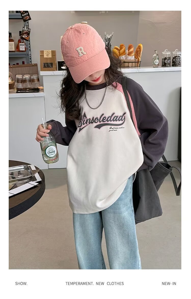 여아 스웨트 셔츠 2025 봄 가을 새로운 가을 의류, 패셔너블하고 스트리트 스타일, 루즈한 중대형 아동용 라운드 넥 바닥 셔츠 상의스토어 가기