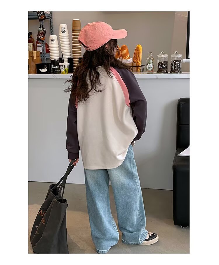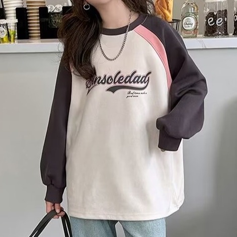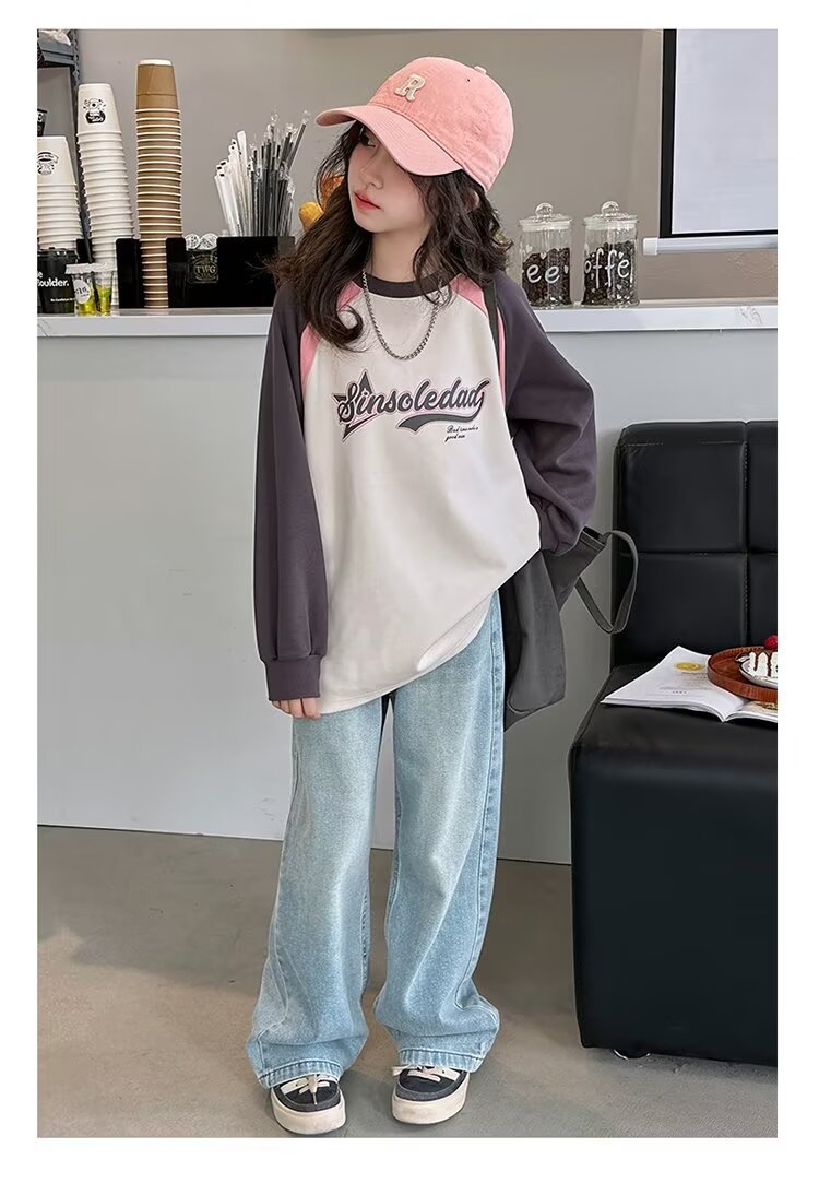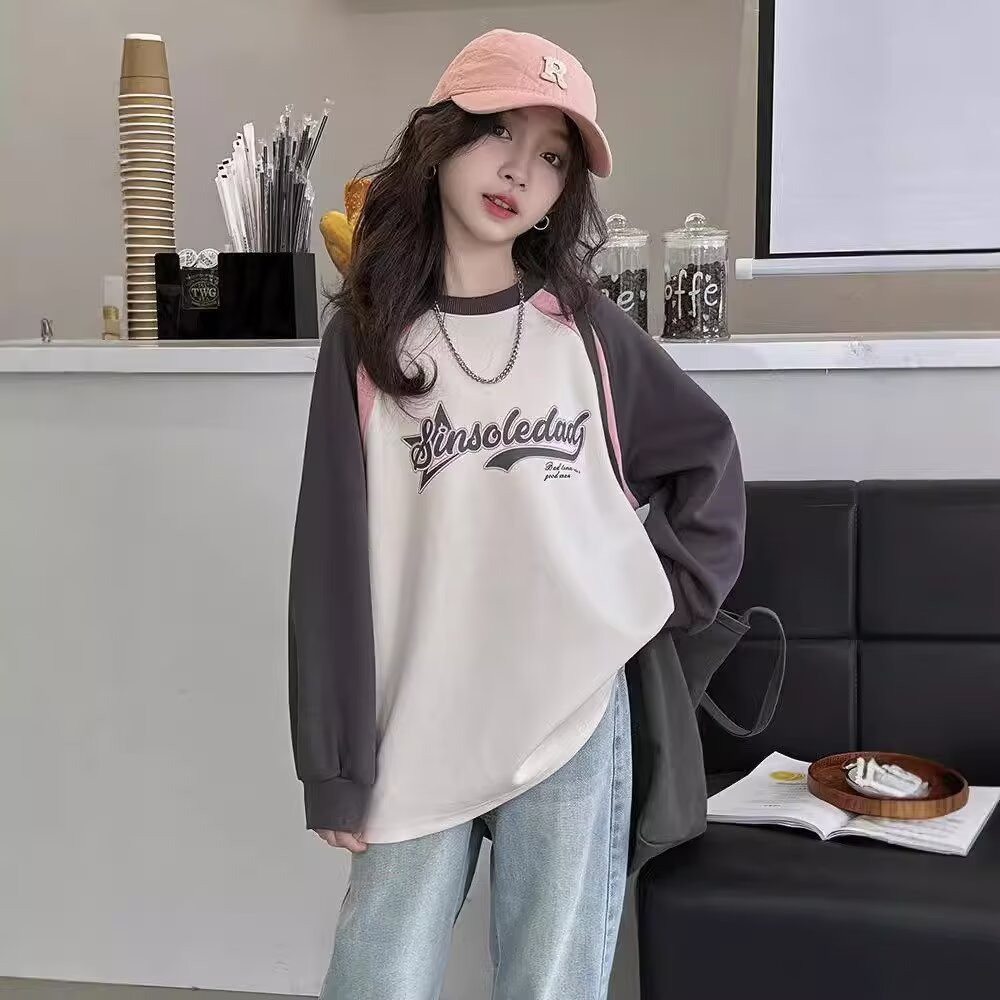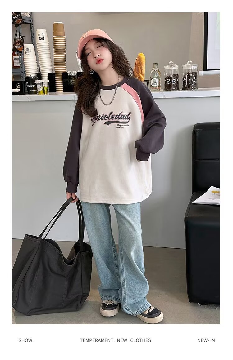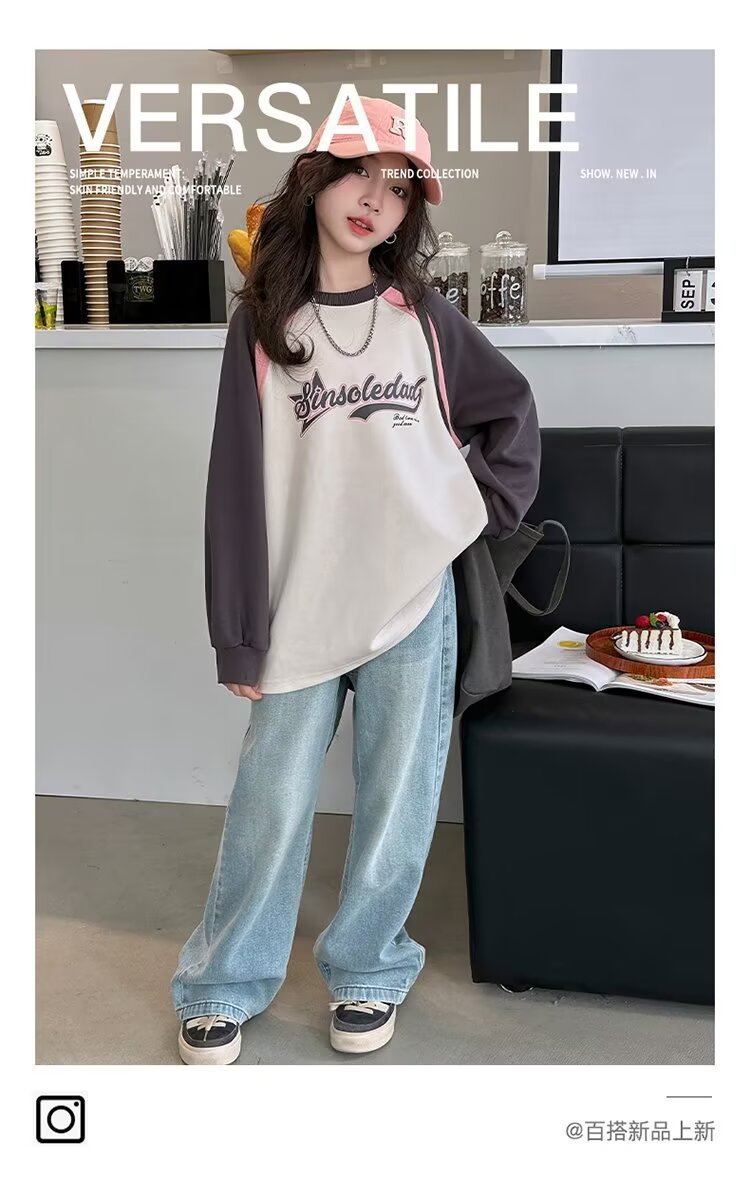 여아 스웨트 셔츠 2025 봄 가을 새로운 가을 의류, 패셔너블하고 스트리트 스타일, 루즈한 중대형 아동용 라운드 넥 바닥 셔츠 상의스토어 가기