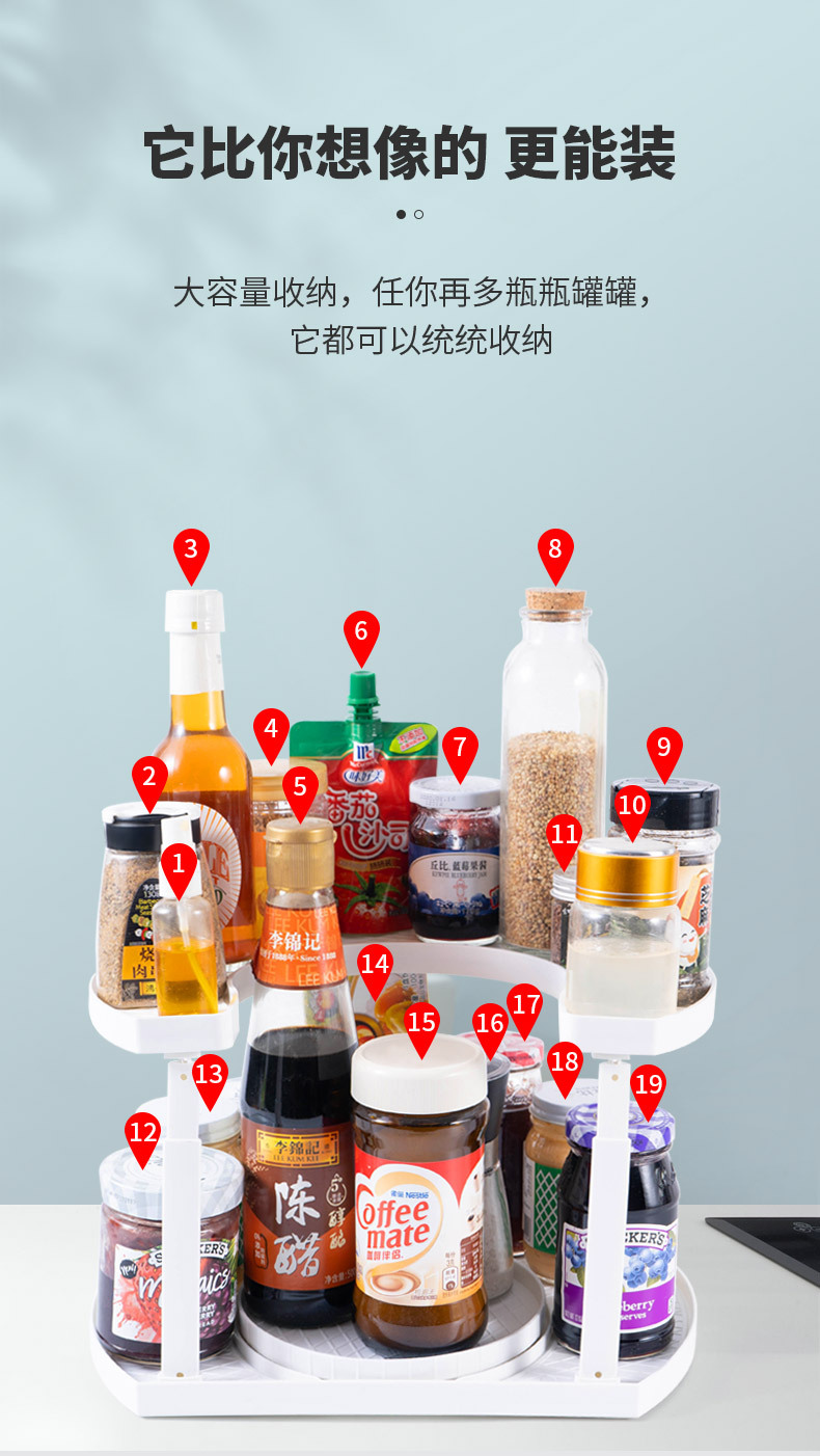 주방 수납 선반 양념통 회전식 도매용품 다기능 수납 무타공