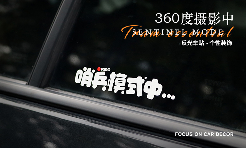 테슬라 새로운 에너지 고양이 센티넬 모드 모니터링 경고 스티커 안티 스크래치 터치 도자기 360 도 기록에 적합스토어 가기