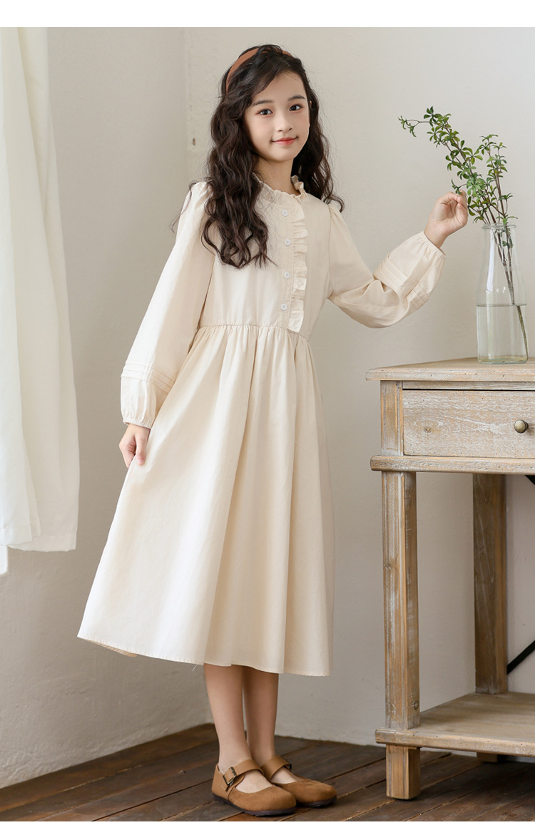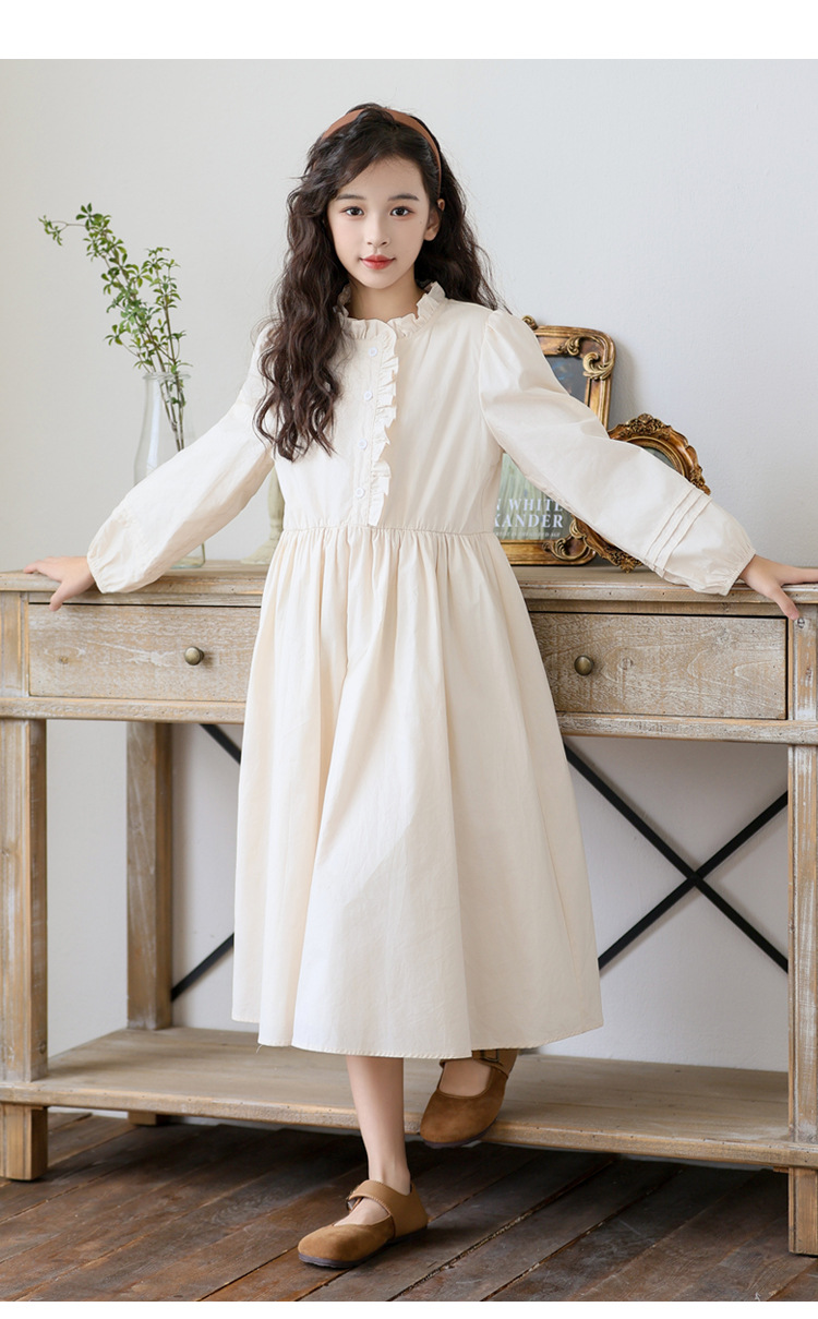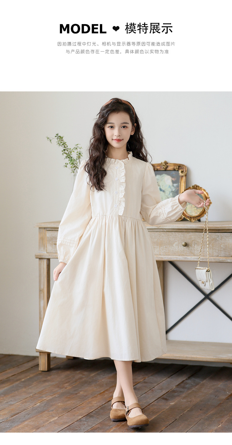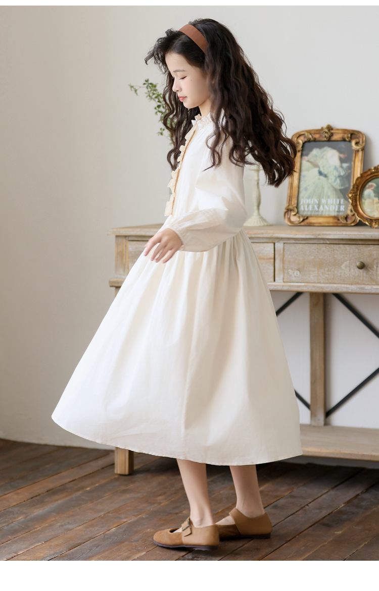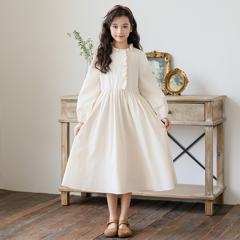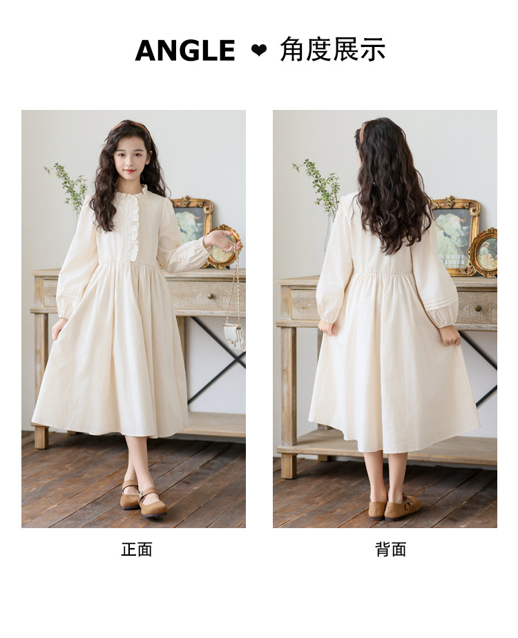 소녀 원피스 가을 긴 소매 레이스 코튼 긴 스커트 2024 새로운 어린이 봄과 가을 서양식 스커트